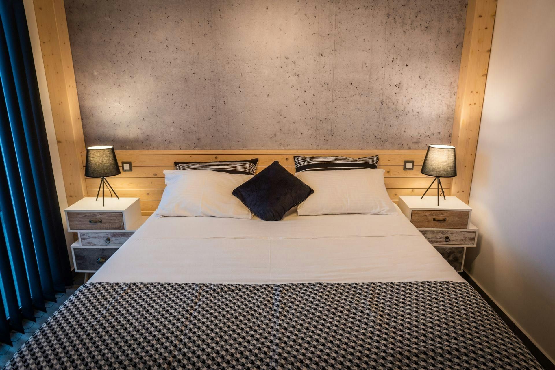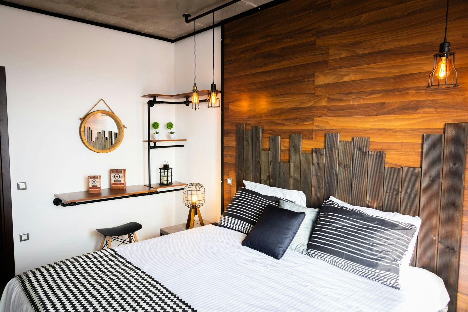 Themed with the same industrial concept as the previous ones has a similar layout and accommodates 6 guests comfortably in three separate bedrooms.