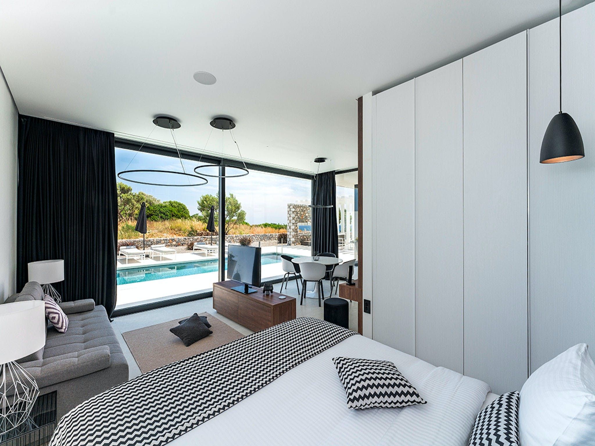 A new addition to the vibrant city of Rhodes is Unforgettable Retreat, a charming one-bedroom villa that offers the ideal getaway for couples or small families. The villa features a spacious room with a king-size bed and a retractable sofa that can be transformed into a comfortable double bed if needed. The fully equipped kitchen and uniquely designed bathroom with floor-to-ceiling glass panels create a truly unique and immersive experience. The villa also boasts a dining and living area with a large satellite TV, Netflix, and a PlayStation console. What truly sets this villa apart is the large glass panels that provide uninterrupted views of the private swimming pool and jacuzzi area, perfect for relaxation. With its automated Crestron system, Unforgettable Retreat offers impeccable comfort and convenience. Guests can enjoy common amenities such as private pools, heated jacuzzis, iPads, portable Bluetooth speakers, satellite TVs with Netflix, and PlayStation consoles with pre-installed games. Experience an unforgettable stay at Unforgettable Retreat.