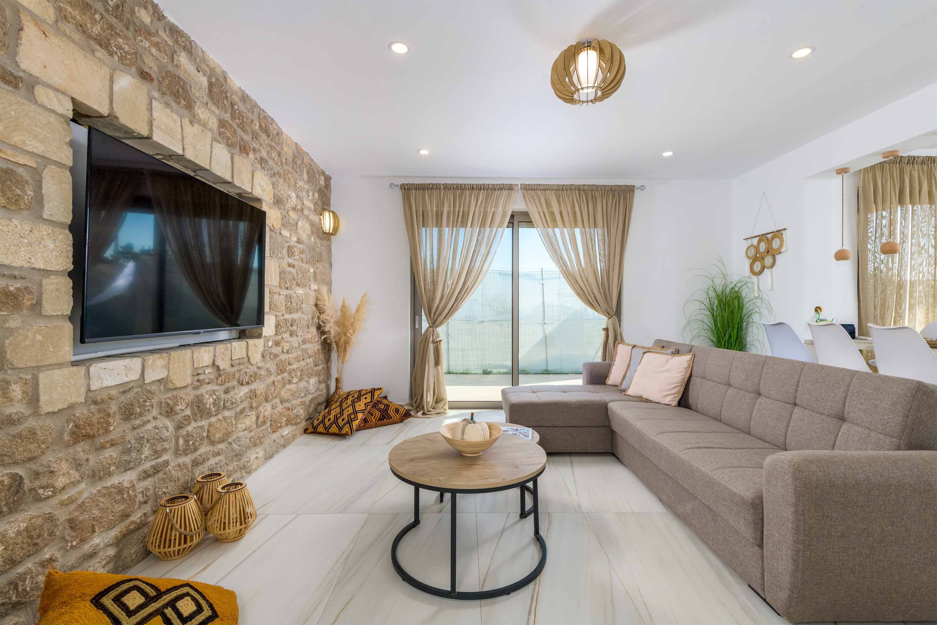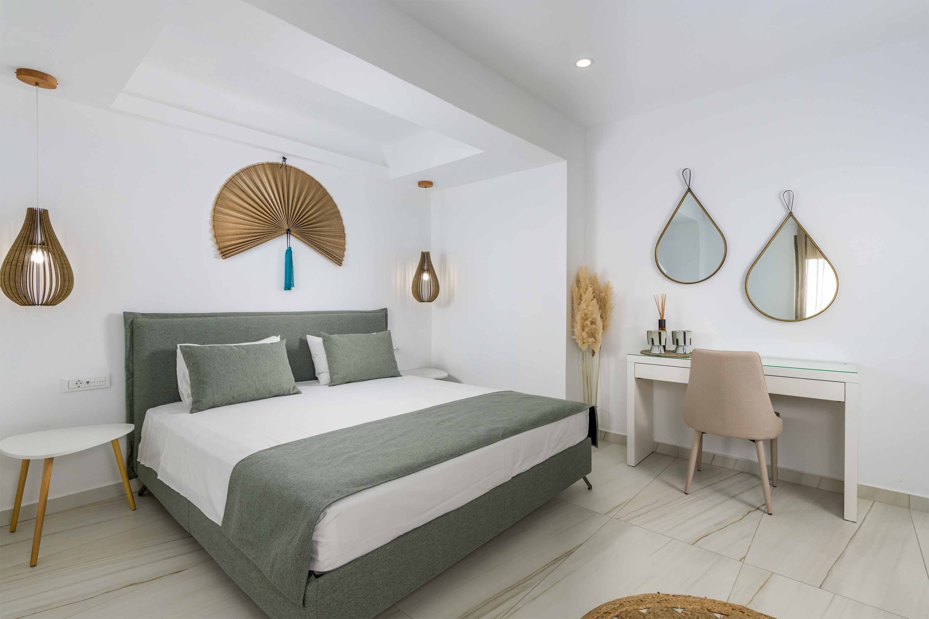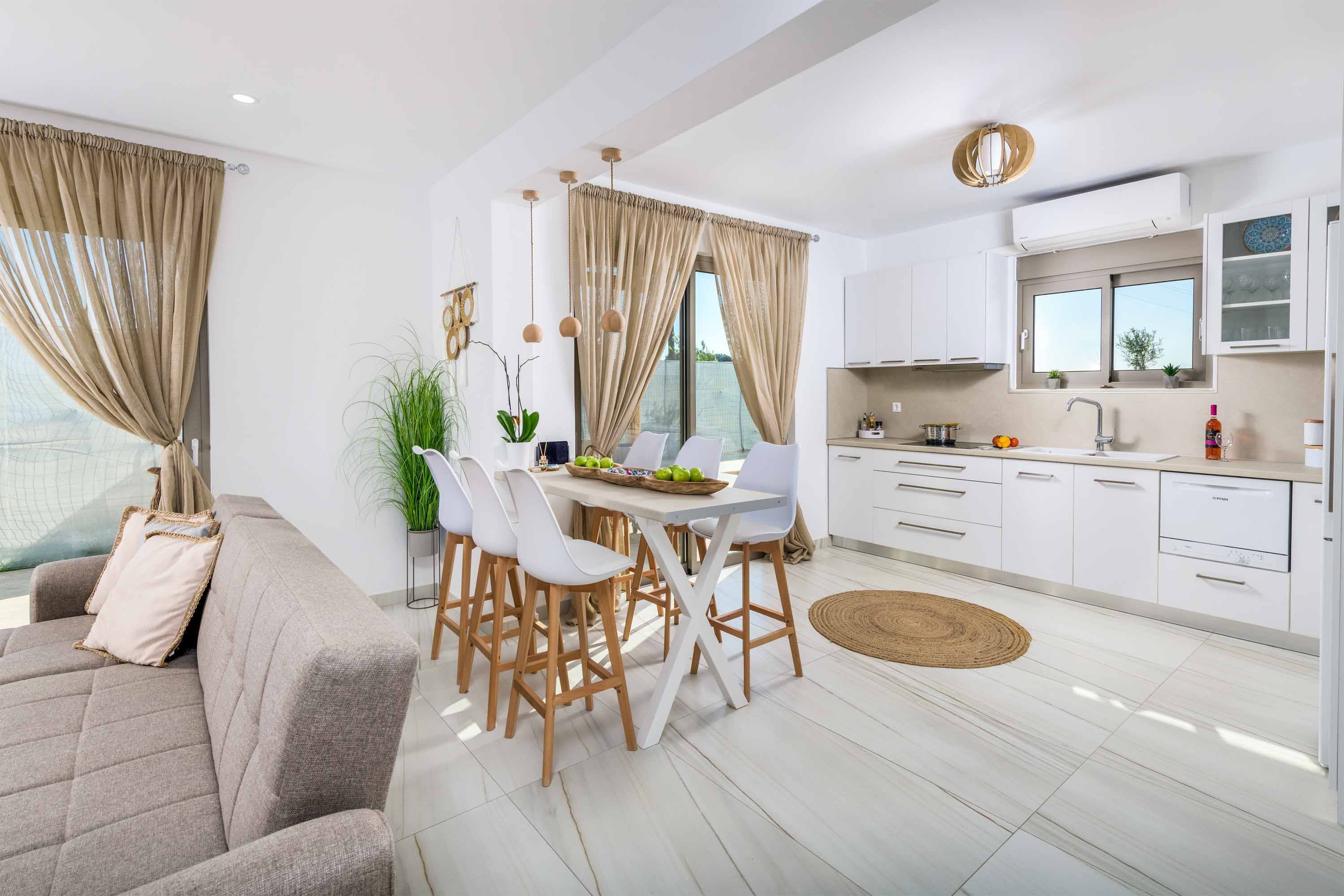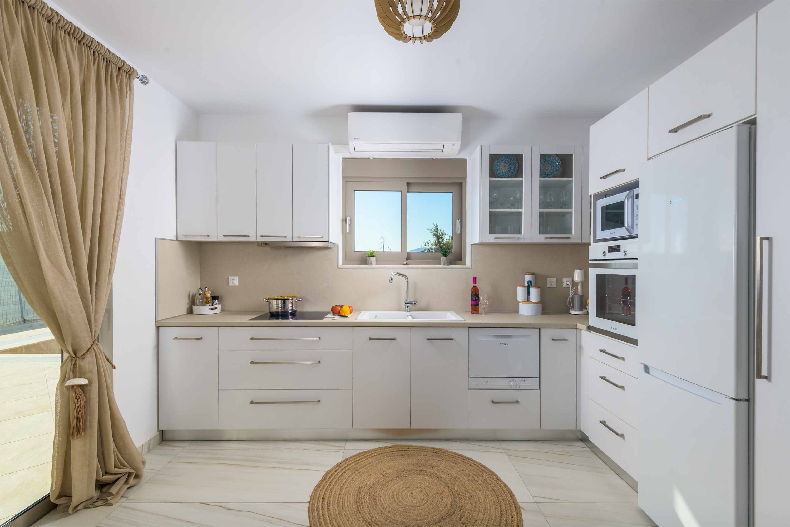 Nestled on a hillside above the beautiful coastline that runs between Lardos and Gennadi, this stylish villa offers spectacular ocean and countryside views. Surrounded by traditional villages and pretty beaches, you can have an authentic Rhodes experience – we highly recommend making the very short drive to the golden sands of Kiotari. There’s a study here if you’re staying for a while and need to work remotely, which also contains a single sofa bed which would be ideal for a child. The garden is the heart of this home, featuring a private pool, portable barbecue and sun loungers for relaxing in the sun.