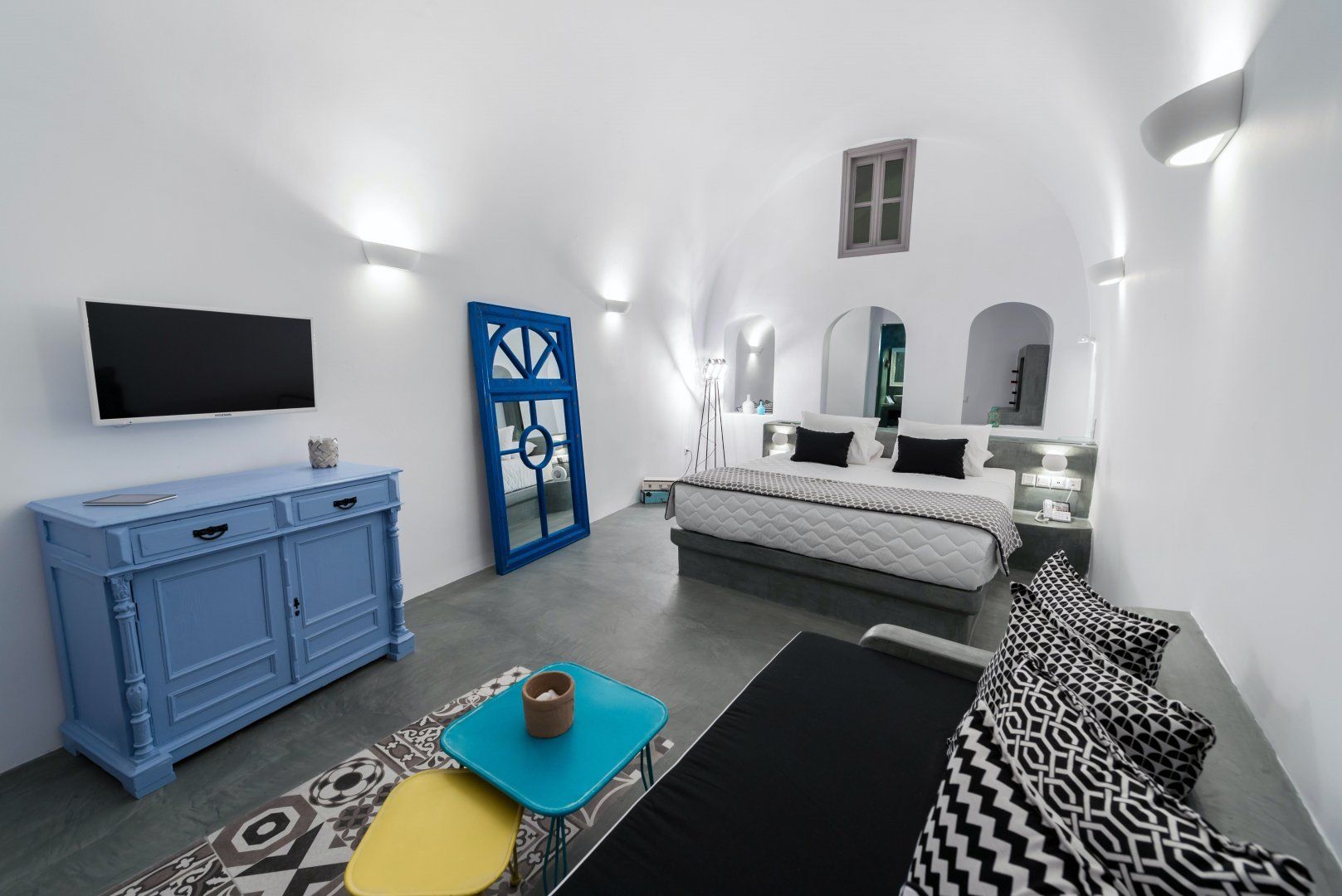 Situated in the heart of Fira – this suite not only has a wonderful location but take a look at those sea vistas too. There’s a Jacuzzi perfect for a glass of Champagne and an alfresco dining area. One thing to note – this home has no kitchen, only a coffee machine, but breakfast is included and Fira's central square is a few metres away so you’ll find plenty of restaurants, cafes and bars on your doorstep. Other attractions such as the Archaeological Museum and Santozeum are close by too.
