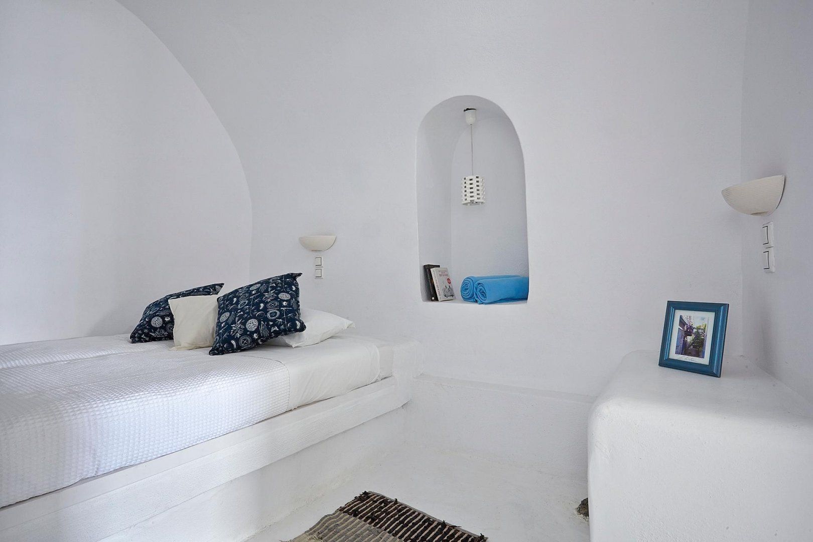 On the island of Santorini, overlooking breathtaking views of crystalline blue ocean and neighbouring islands, sits this beautiful three-bedroom classical cave house villa of the most brilliant white. Boasting fresh, welcoming interiors, soul-stirring poolside views and the most elegant of alfresco dining opportunities.