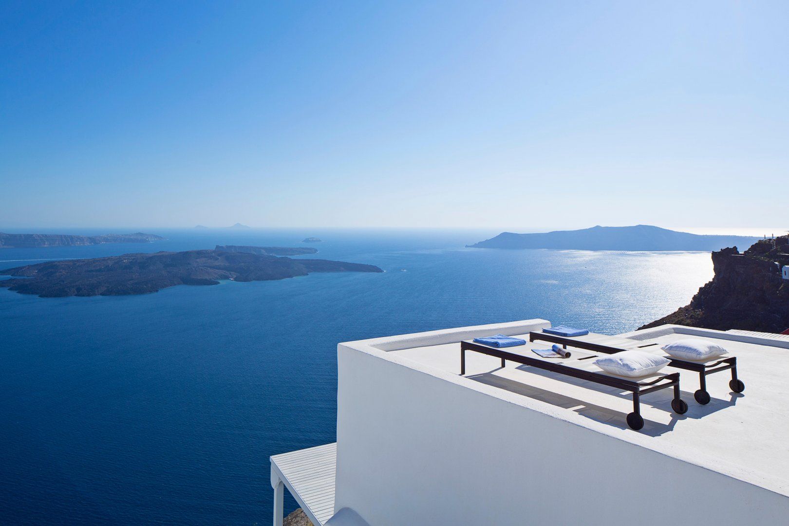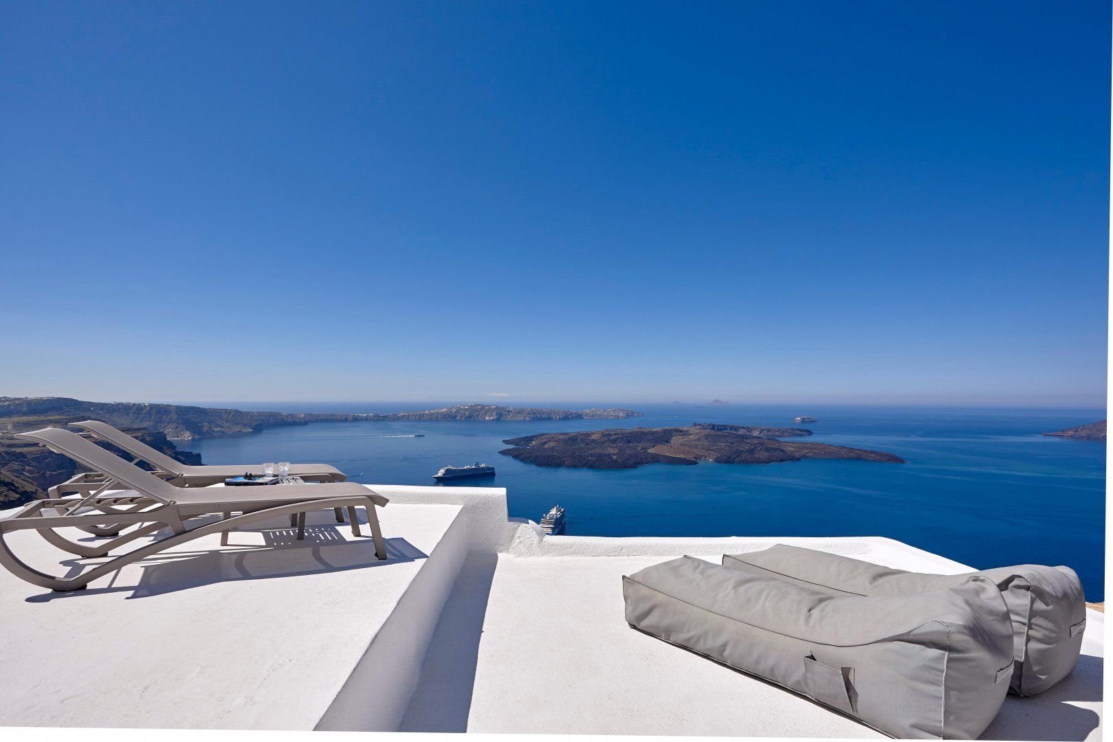 Prepare to spend your time soaking in the Grecian rays on plush sun loungers on sun-baked verandas, before cooling off in the cool, iridescent sparkle of the villa pool. Venturing out could not be easier, with the island's capital of Fira being only a five-minute drive from home. From here, enjoy the fascinating intricacies of life and culture in Santorini, excellent shopping opportunities, and delicious local delicacies. We highly recommend trying Domatokeftethes.
