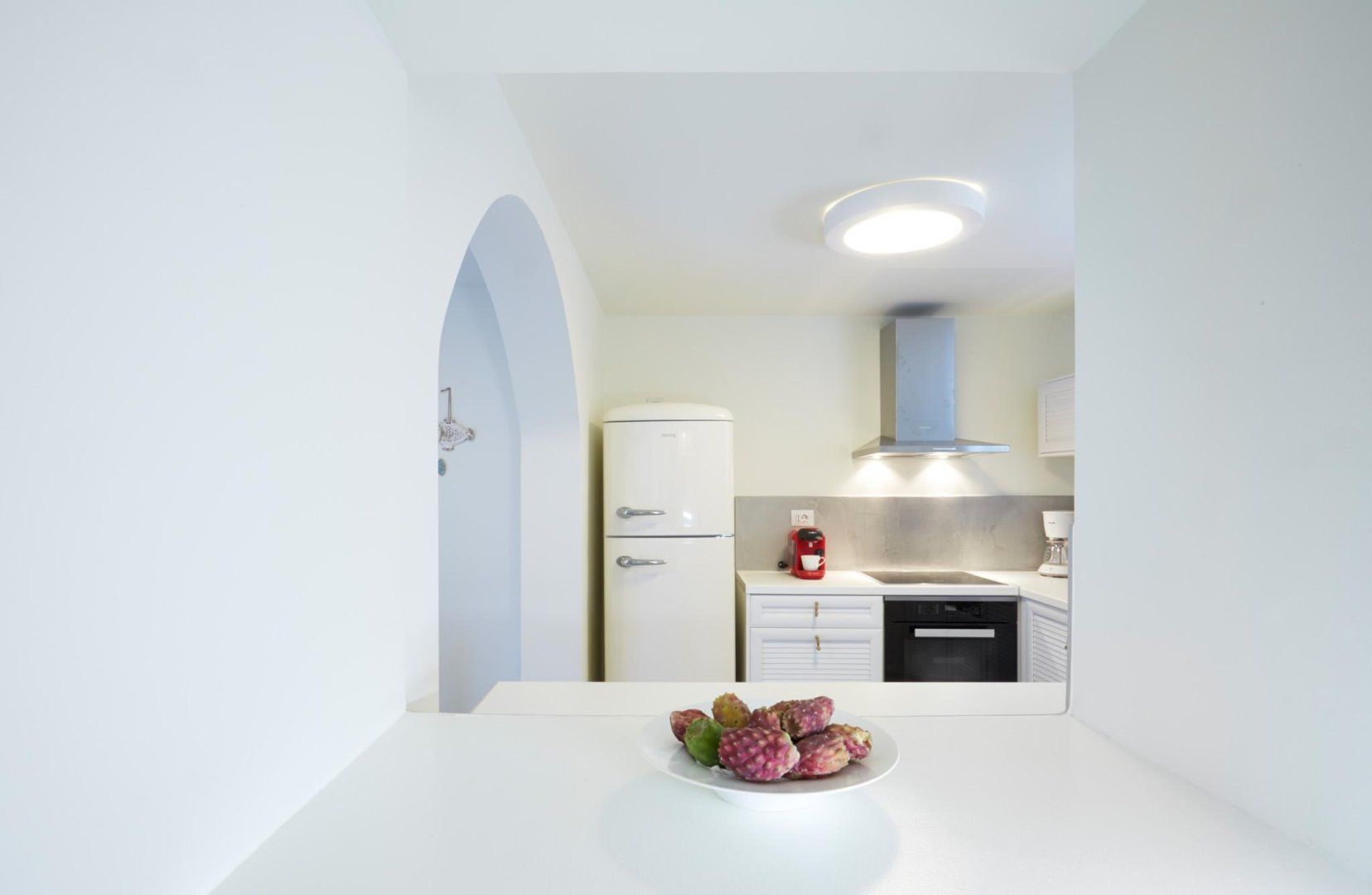 Home truths: *At full capacity, two guests will sleep on the sofa bed *A high chair can be provided on request *Airport transfer and daily cleaning is included *This home is right off the street, so it can get a little noisy *There's public parking close to the villa – you may want to rent a car if you plan to explore the island