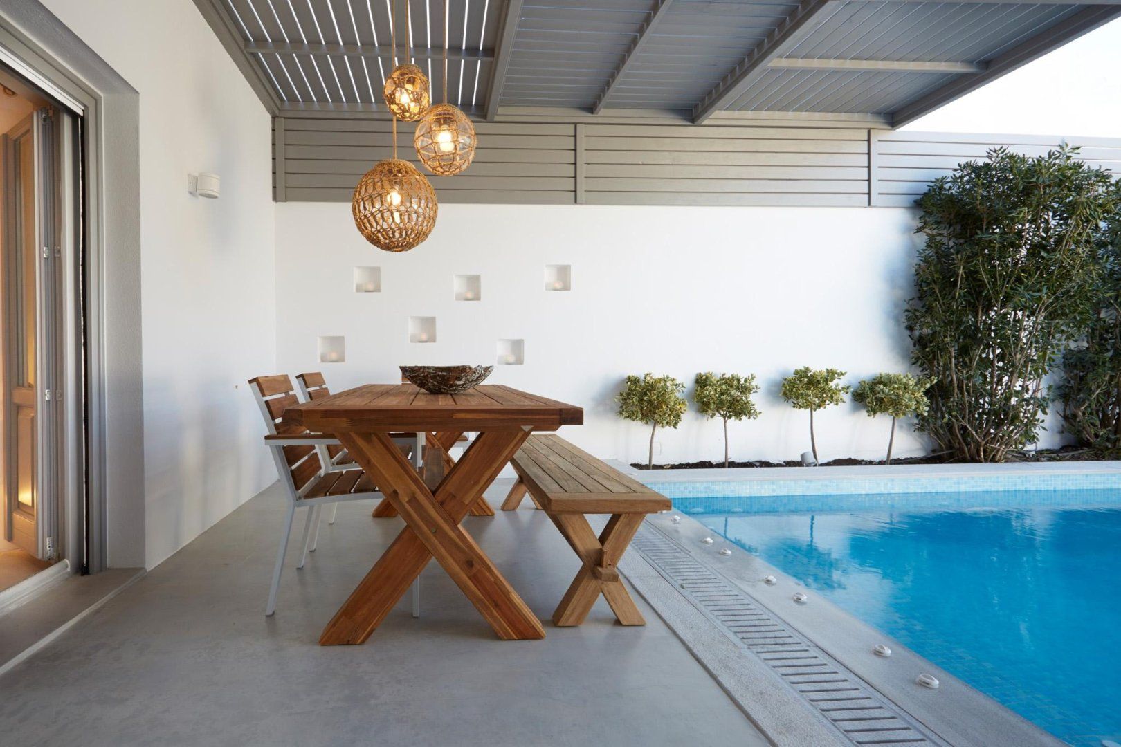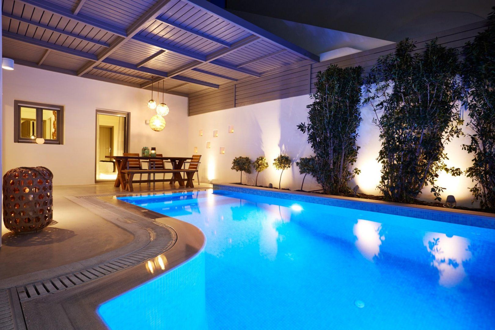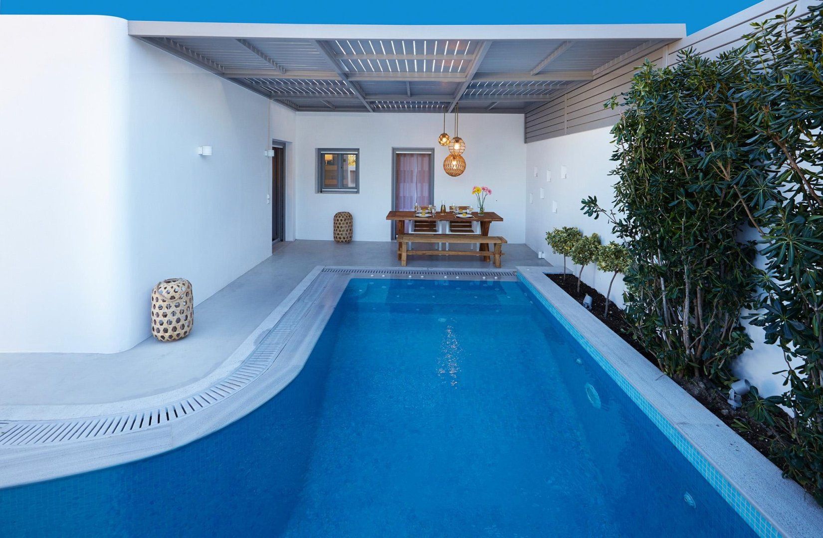 This villa is the epitome of Cycladic architecture – white stone façade, crisp and minimal interiors and small courtyards where you make the most of the sunshine. Sleek and soothing, this home is a haven from the heat, whether you're snoozing in the stylish bedrooms or playing on the PS3 in the light-filled living area. On summer afternoons, splash in the heated pool (complete with whirlpool settings) or lounge by the water with a chilled beverage and a good book. When you grow peckish, nibble on the fresh fruit left for you in the welcome hamper, or whip up something more substantial in the kitchen – it has everything you'll need for cooking. Come evening, watch the sun go down from your poolside perch, a glass of your host's homemade wine in hand.