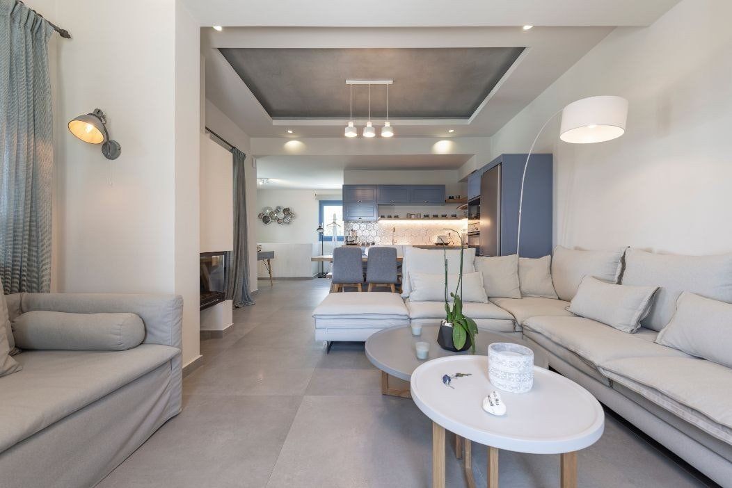 Located just outside the charming village of Megalochori, this is a wonderful place to experience the magic of island living. And as soon as you step inside, you’ll want to pause and savour its calming presence. Providing ample space for relaxing and spending quality time together, this is the kind of home that celebrates the joy of outdoor/indoor living. So whether you’re savouring the views from the terrace, sipping golden-hour drinks on a sun lounger or cooking up a treat on the stone barbecue, there’s everything you could need for a spectacular retreat.