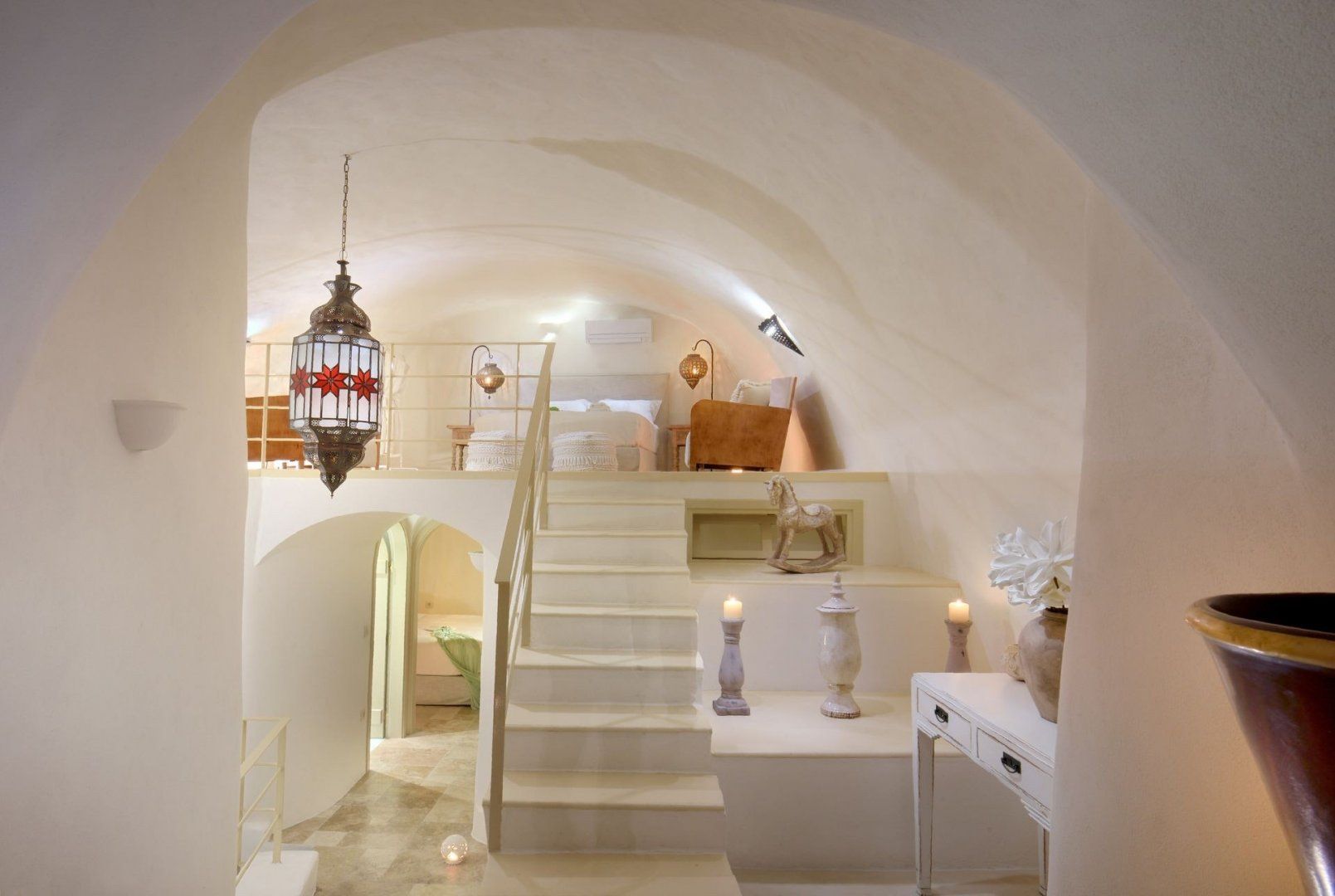 The view is the real showstopper at this Santorini retreat. Set in the heart of Oia, you can stroll the winding white-washed streets, sample local cuisine, and browse charming boutiques right from your doorstep. Inside, you’ll find a bright living area, a homely kitchen, and an indoor Jacuzzi pool that feels as calming as a spa. We especially love the domed ceilings and the sparkling Aegean Sea views framed by the windows. But the pièce de résistance is the outdoor space – with a dining spot, sun loungers for lazy afternoons, and a second Jacuzzi perfect for unforgettable sunset dips.