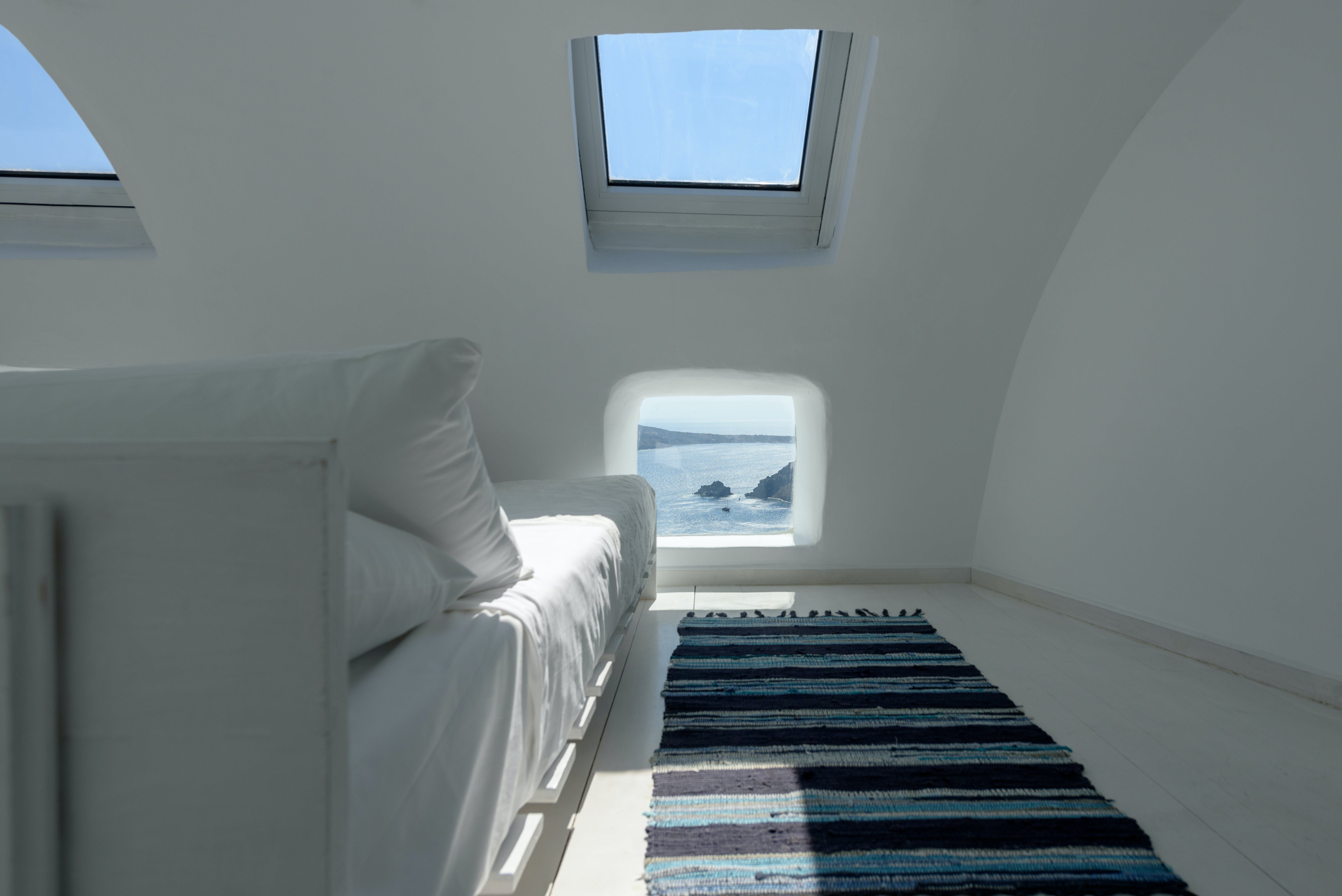 Boasting unfettered views of the Aegean Sea, this Cycladic-style house is ideal for anyone who’s looking for a restful stay on Santorini’s northwest coast. The home has a loft apartment, with its own living room, kitchenette, bedroom and bathroom – ideal for teenagers or those who like their privacy. Outside, the courtyard has a dining table for sunset suppers and a plunge pool for keeping cool when it’s warm. Should you fancy stretching your legs, Oia is just over a kilometre away.