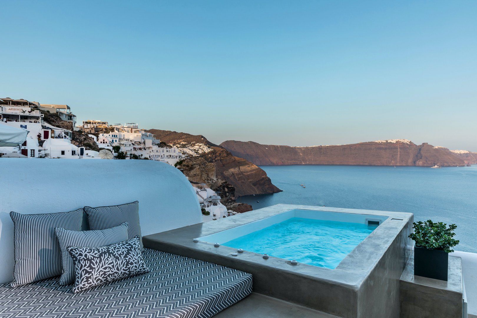 This apartment is located in the picturesque village of Oia, the most famous village in Santorini. With its traditional narrow streets, blue-domed churches and sun-drenched verandas, Oia offers a serene and beautiful setting for a relaxing retreat. This home is on the small side, but it’s perfect for a romantic break or a solo trip. The private terrace and hot tub overlook the sparkling Aegean Sea, and you really couldn’t ask for a better view. While parking is possible at the entrance of the village, a car isn’t essential as the area is best explored on foot, with Katharos Beach just a 19-minute walk away.