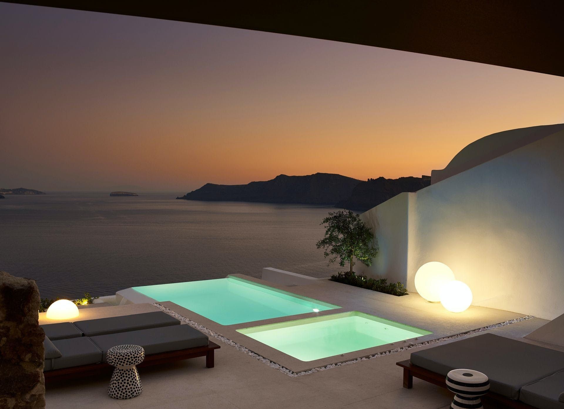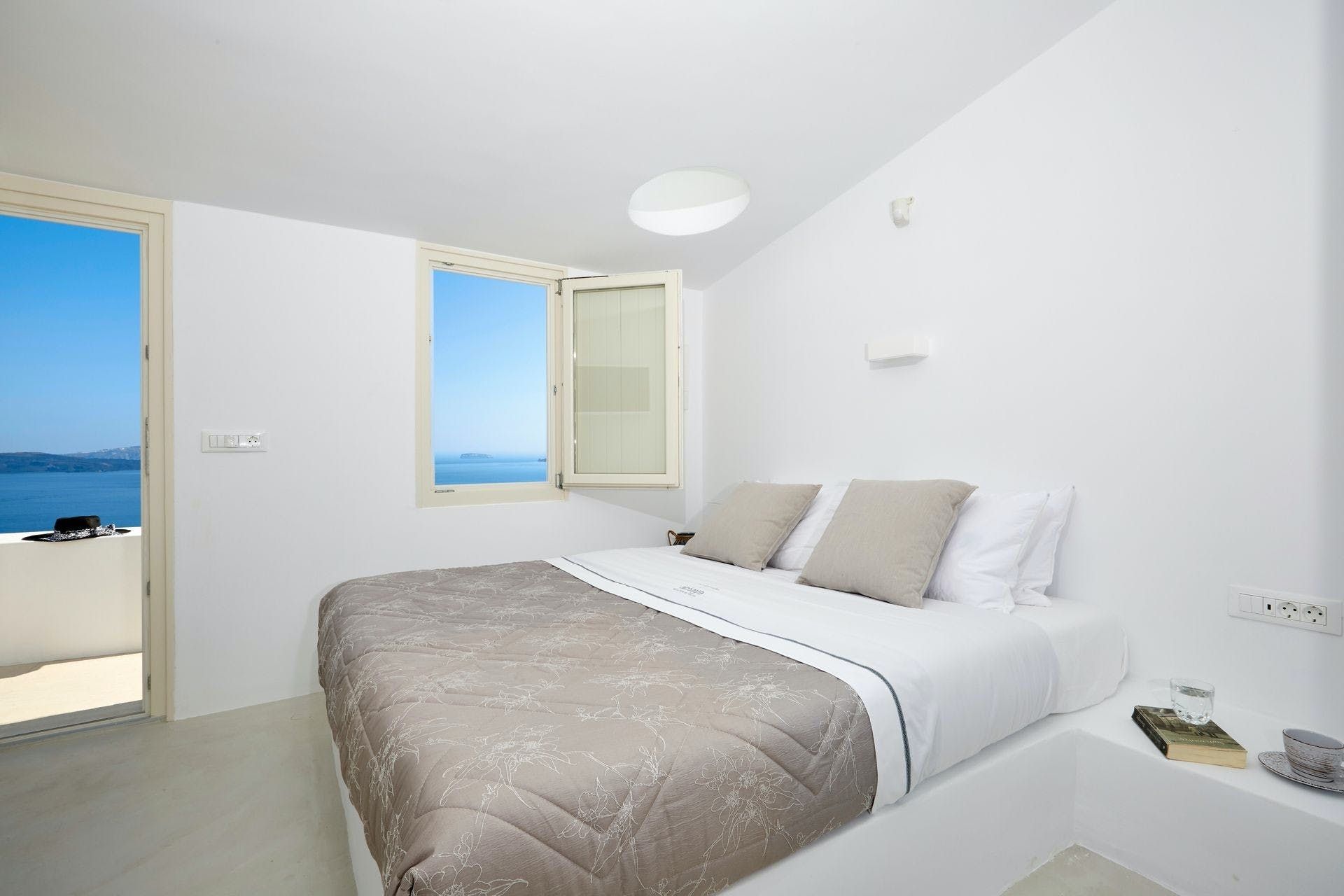 Set on a gently sloping hillside, Villa Serenity boasts a spacious outdoor area of 300m2, where you can soak in the mesmerizing vistas of the Caldera, the Aegean Sea, and the volcanic island. Relax and unwind in the outdoor hot tub or take a refreshing dip in your private pool.