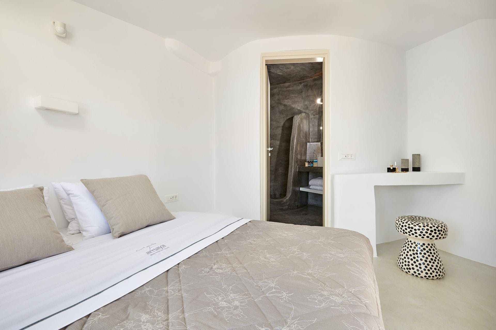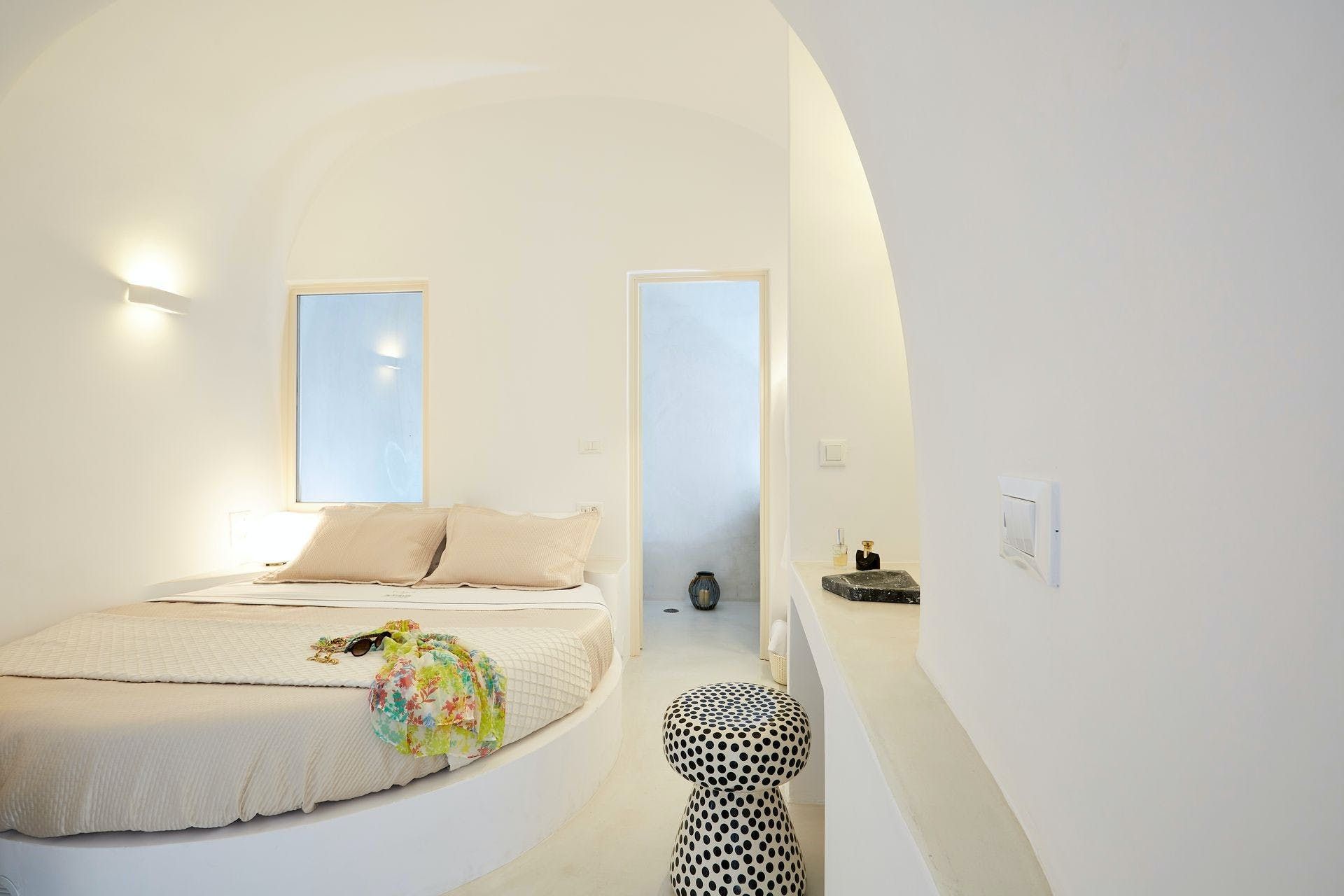 Perched on Oia's renowned cliffs, Villa Serenity captures the essence of simplicity and sophistication. The Amaya Windmill Villa and Amaya Traditional Cave Villa, both part of this residential complex, exude a minimalist charm while offering the modern comforts and functionality of a contemporary home.