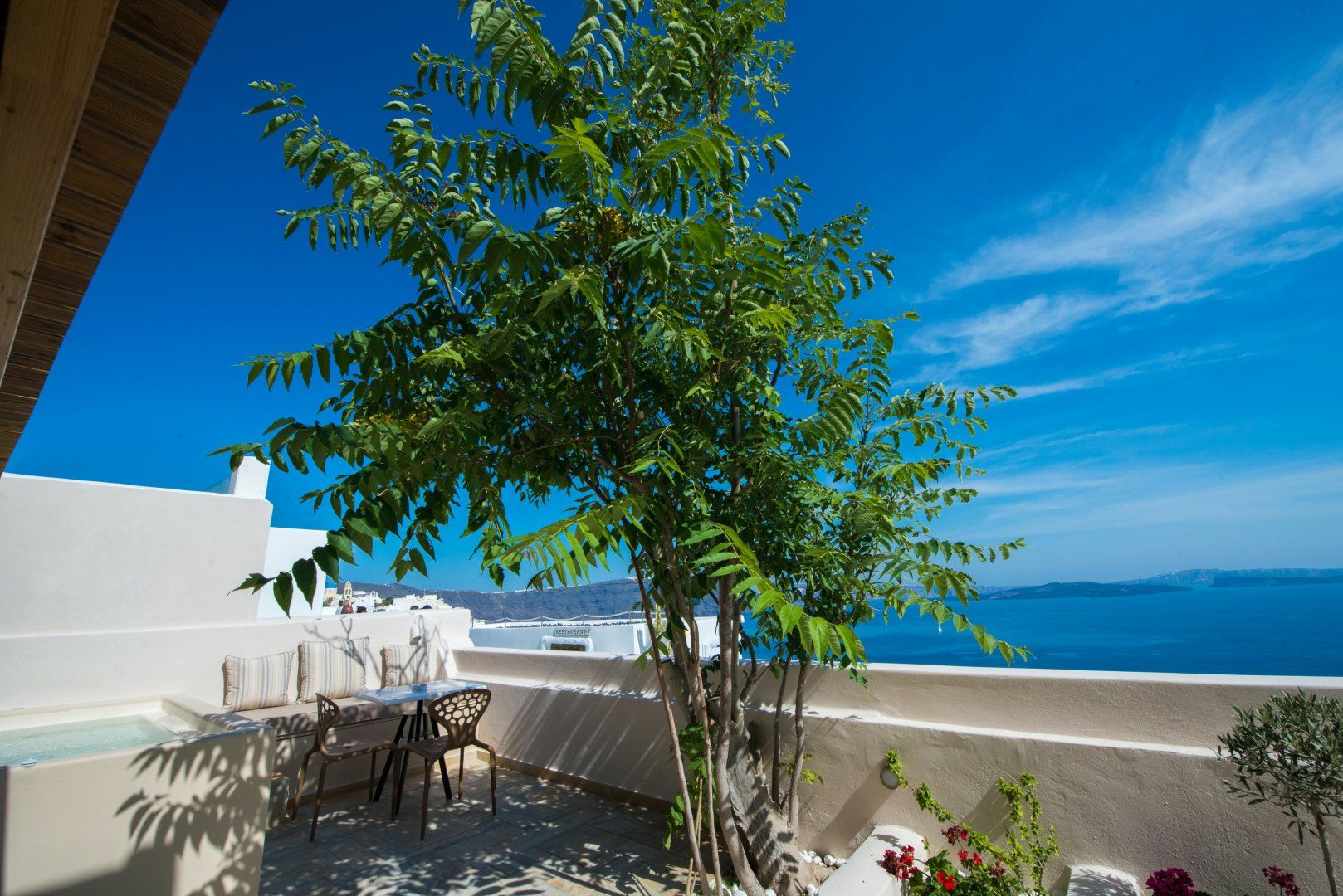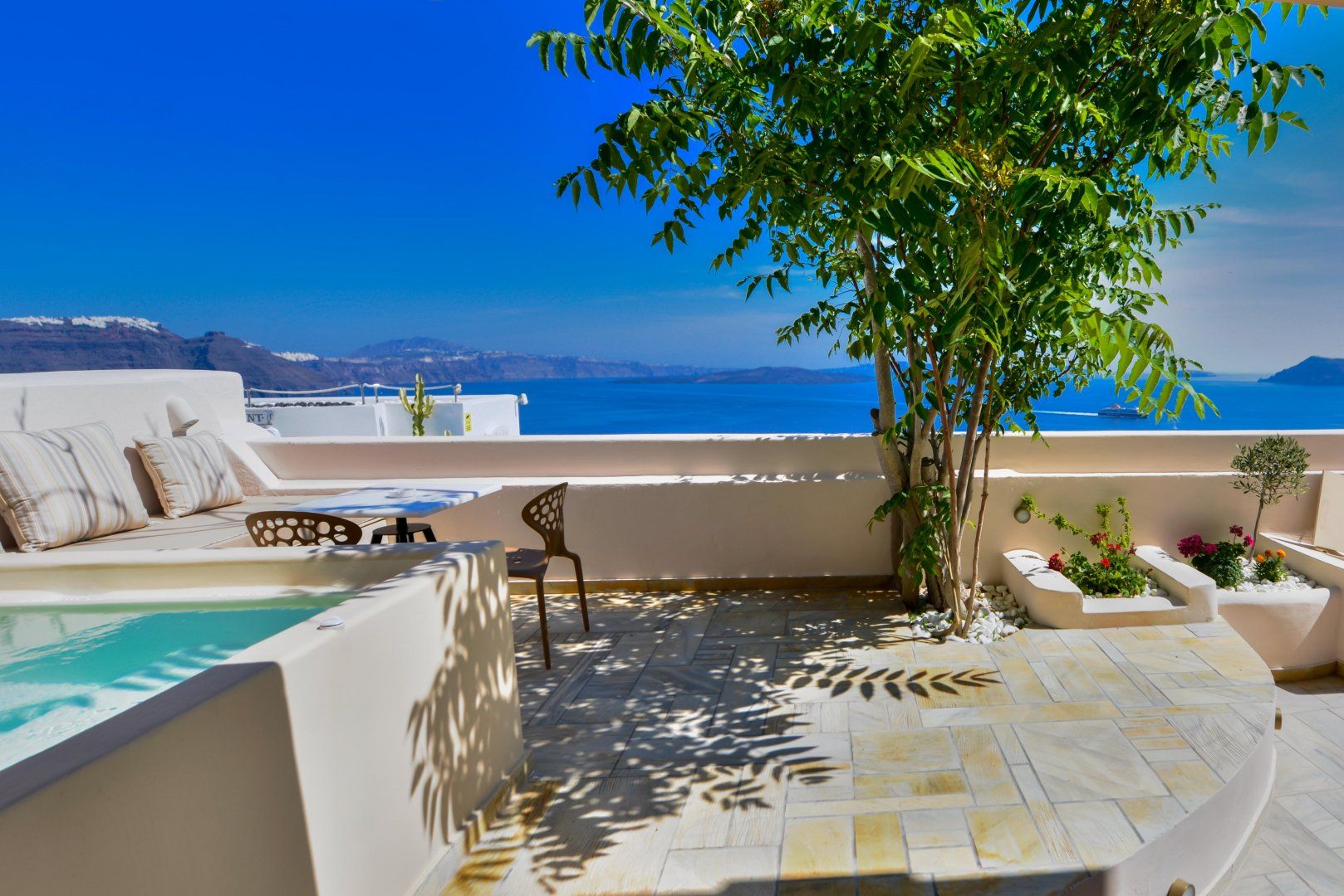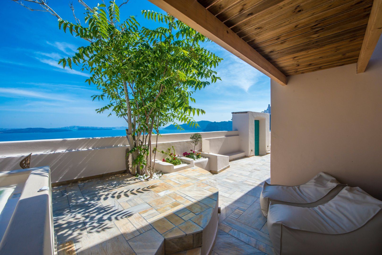 From the traditional tiles to the turquoise blue shutters, this home has plenty of charm. The soothing interior is the perfect place to find some respite from the heat – throw open the windows and let the breeze float through the house. The outdoor space is just as perfect – take a luxurious soak in the hot tub as you watch the sun sink below the horizon, before enjoying a glass of wine under the stars.