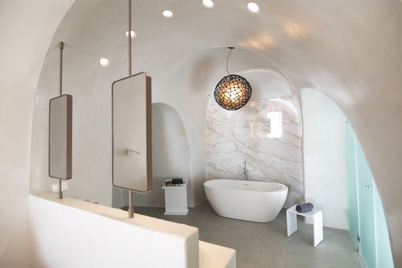 Everything you need is right here, but if you do want to explore, Oia and its delights are on your doorstep. Have a stroll around and admire the whitewashed houses carved into the rugged clifftops, or for a spot of culture, head to the Naval Maritime Museum, housed in a 19th-century mansion. Here, you’ll find exhibits such as ornate figureheads and models of old ships. Of course, there are plenty of boutiques, cafes and restaurants to discover too.