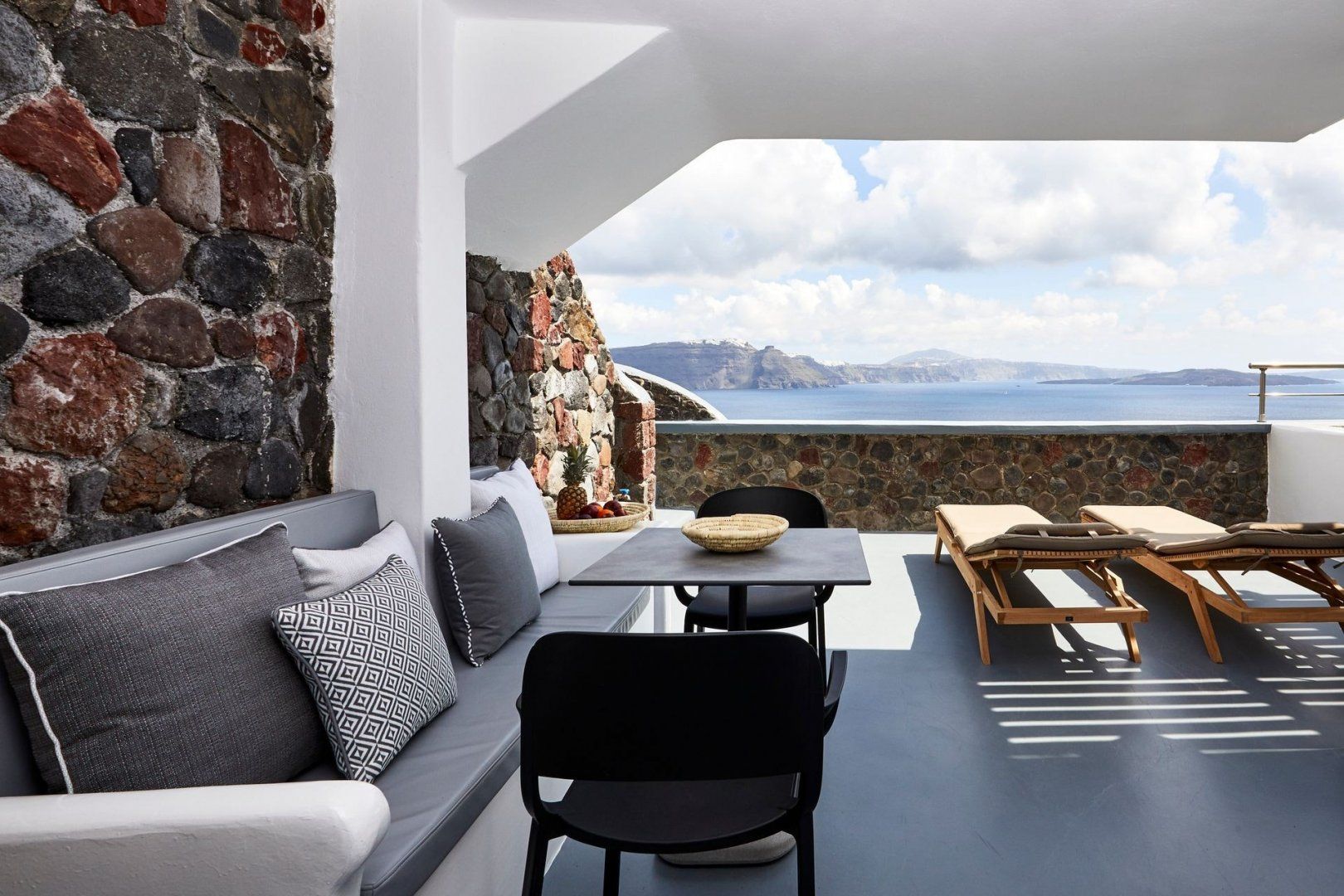 This villa carved from the volcanic rock of historic Oia provides guests with a range of luxurious amenities set within a wholly unique design. The home focuses around the stunning terrace that includes an outdoor lounge and hot tub with panoramic views of the caldera, and the cocooned interior’s minimalist yet modern design provides a cosy sense of comfort. While the kitchenette might only allow for the preparation of smaller meals, the central location provides easy access to all the village’s finest restaurants and bars, as well as nearby beaches and historic sites.