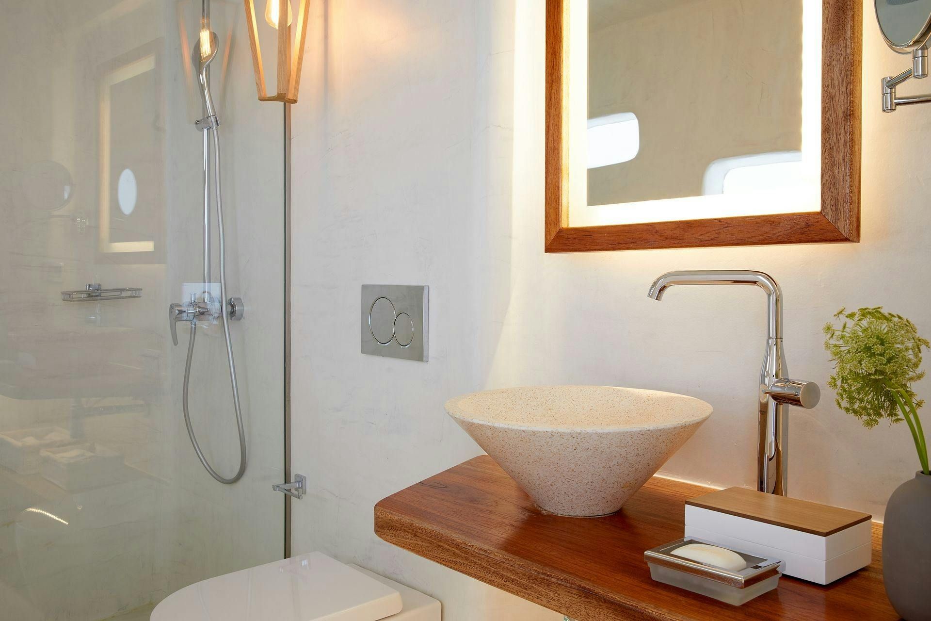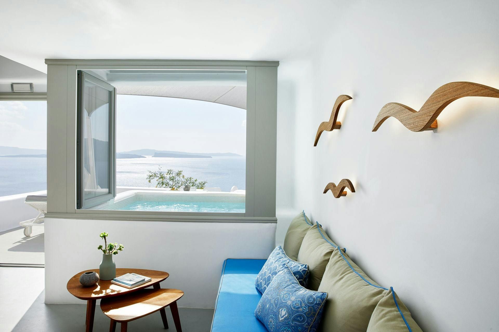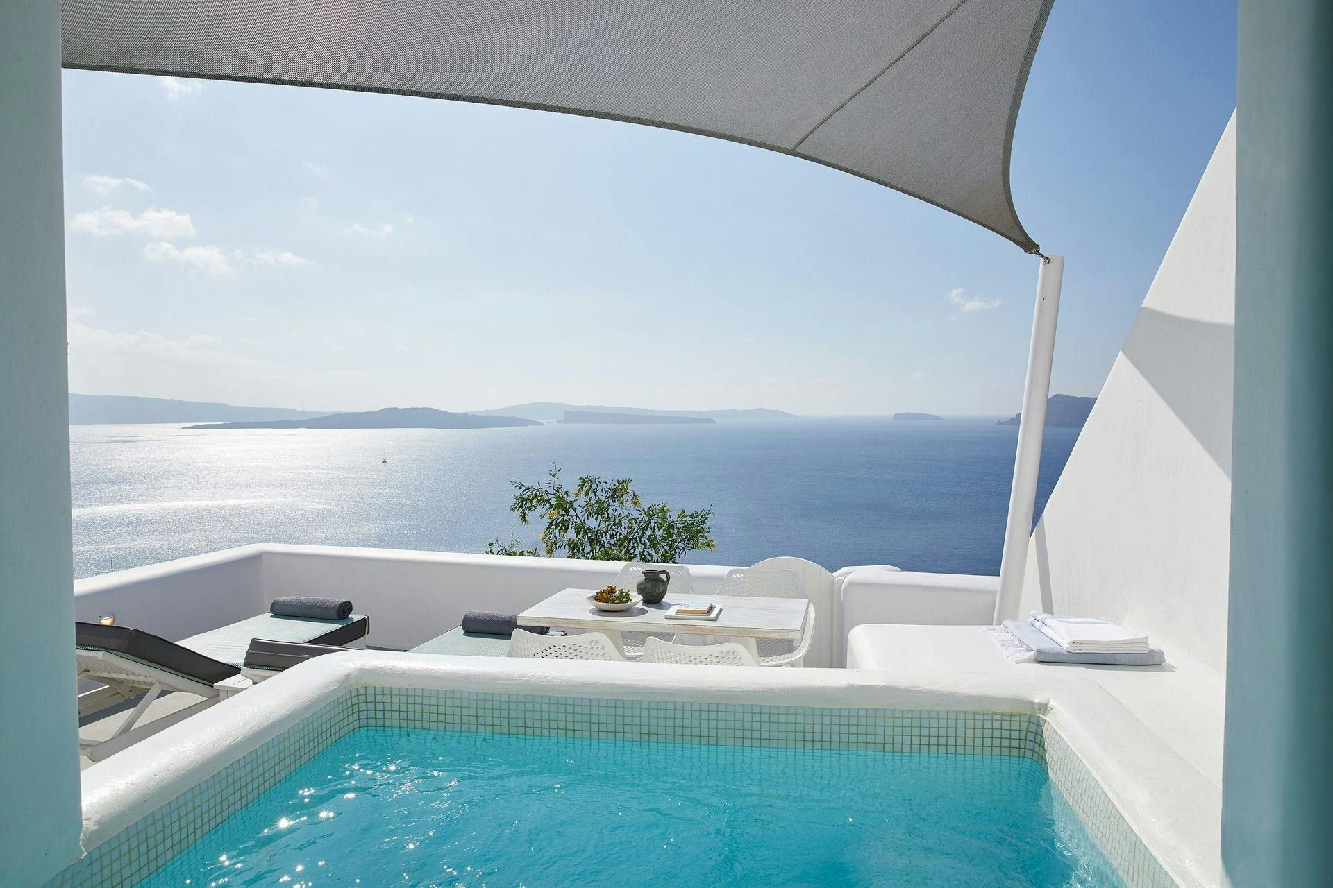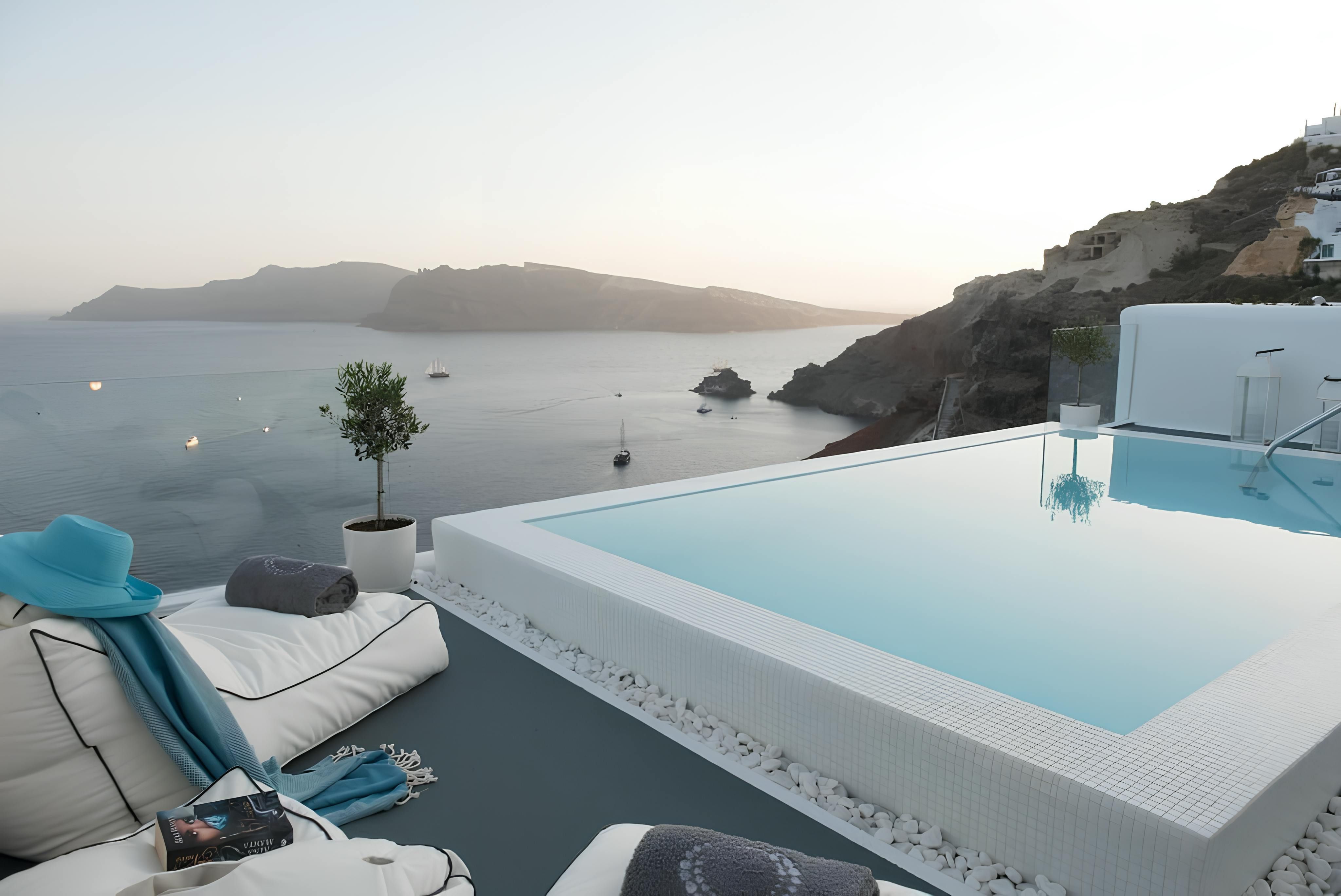 The Monastiri Oia Retreat is a newly designed and inviting holiday rental offering a calm and captivating atmosphere. This spacious Deluxe Suite features a comfortable loft with large windows that offer breathtaking views of the Caldera and the Aegean Sea, providing guests with a truly immersive experience. The suite also offers two well-appointed bathrooms with rain showers and water closets for ultimate relaxation. Guests can indulge in the luxury of a private Jacuzzi hot tub on one patio, while the other boasts a stunning private infinity pool. Upon arrival, guests will be welcomed with a bottle of champagne and fresh fruit. Additional amenities include air conditioning, high-quality bath amenities, plush bathrobes and slippers, daily maid service, coffee facilities, direct dial telephone, flat-screen TV, complimentary toiletries, individually controlled air conditioning, an indoor Jacuzzi bathtub, a well-stocked mini bar, outdoor furniture on private balconies, an outdoor private hot tub, and complimentary Wi-Fi internet access throughout the property. Unwind and rejuvenate at this Monastiri Oia Retreat.