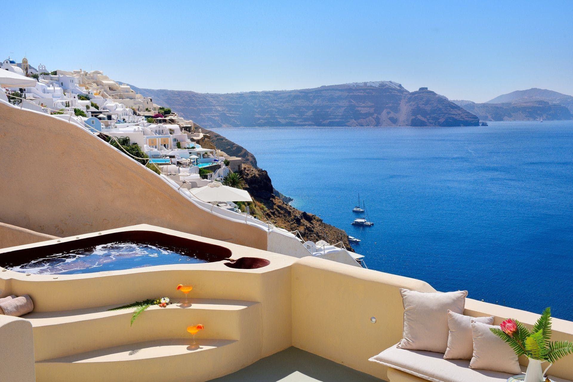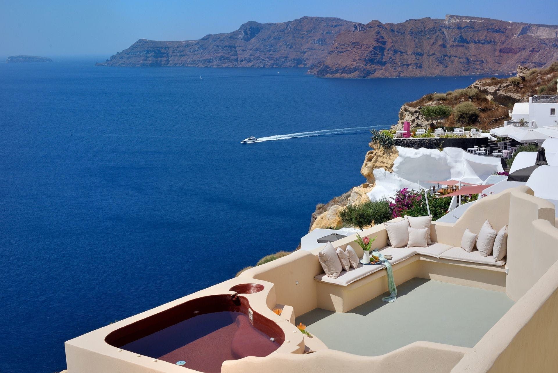 Occupying an enviable spot on Santorini’s northwestern tip, this apartment guarantees an unforgettable family holiday. The home features a private terrace with a covered area for dining, a hot tub and sweeping views of the Caldera and Aegean Sea. Inside, the place is compact yet comfortable – though there isn’t much space for socialising when the sofa bed is in use. If you’d like to stretch your legs, Oia’s charming taverns and restaurants are on your doorstep, and Ammoudi Bay is within walking distance.