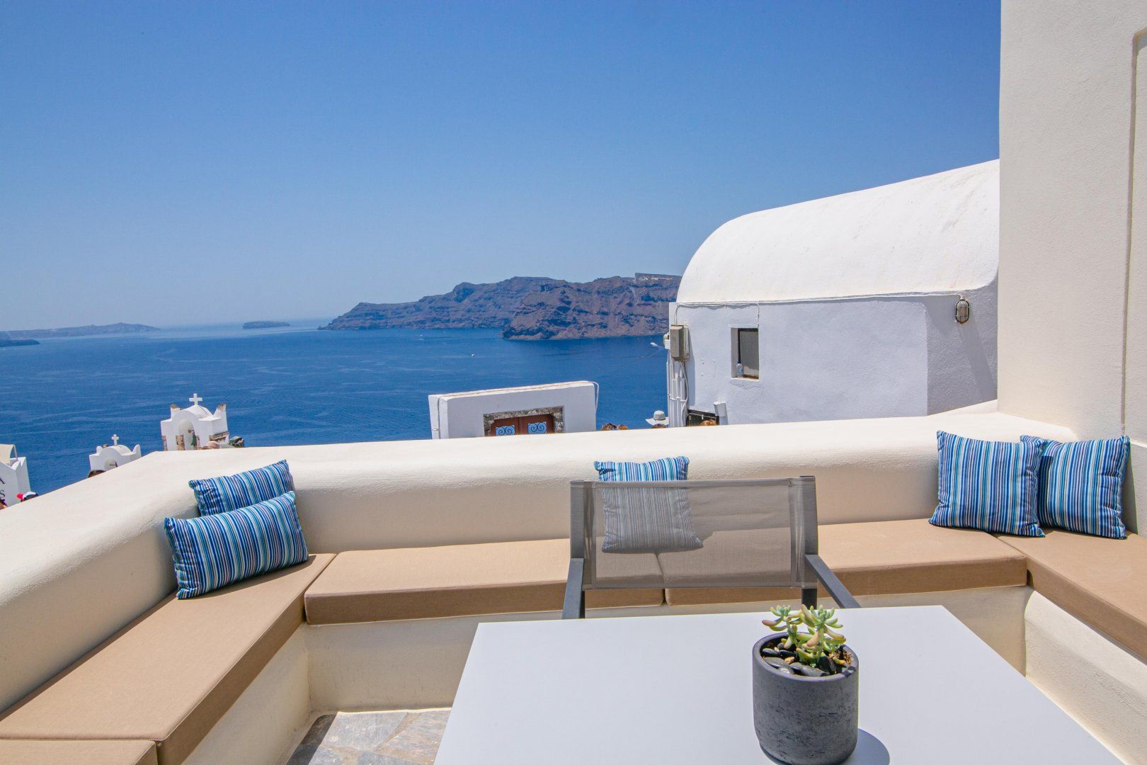 Lovers of luxury can rejoice, as this home features some wonderfully opulent touches, such as robes and slippers, plus an indoor spa pool – a very rare find for a home that sleeps just four guests. The terrace here provides a breathtaking panoramic view overlooking the caldera, as well as the gorgeous white buildings of the village.