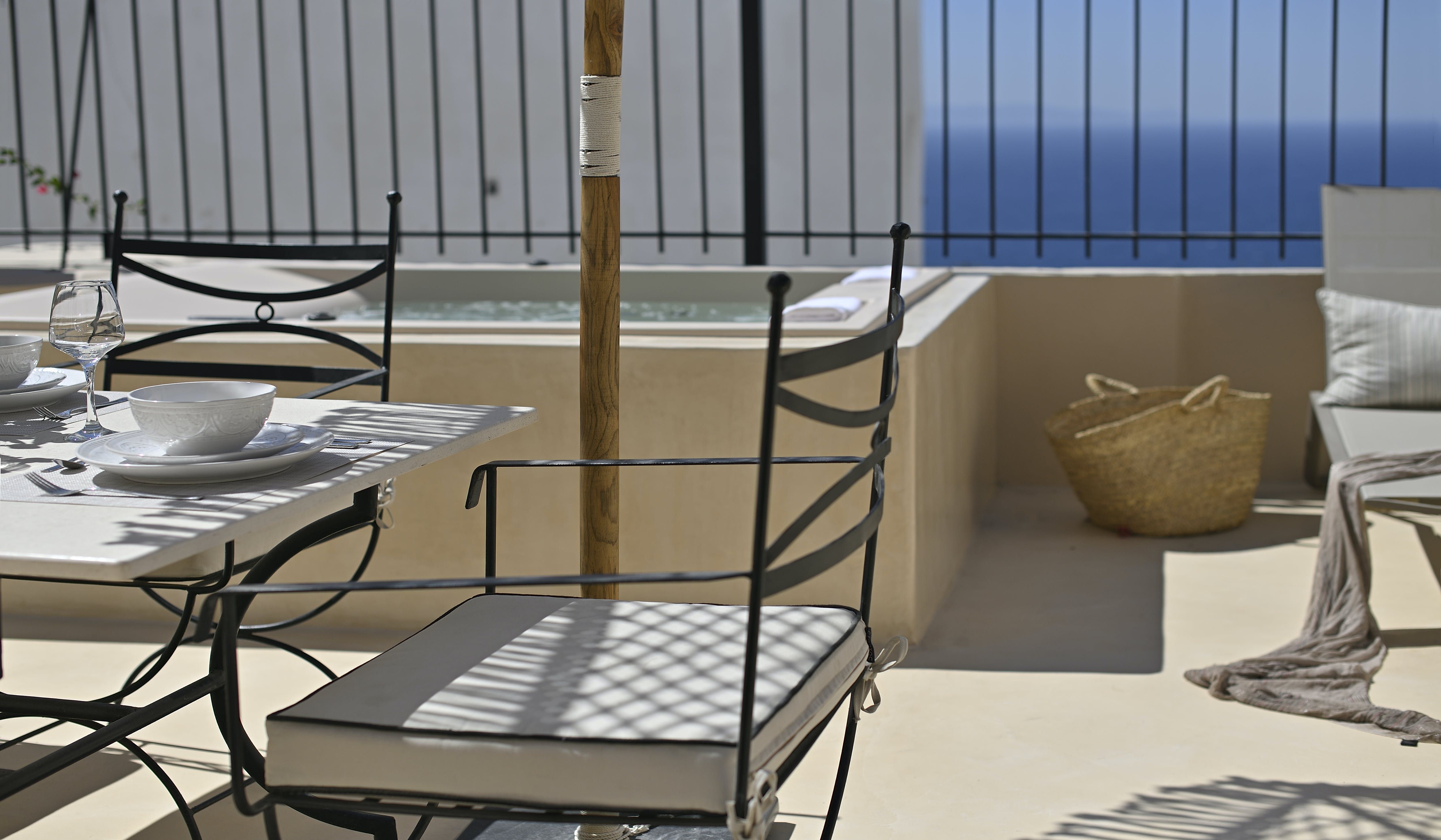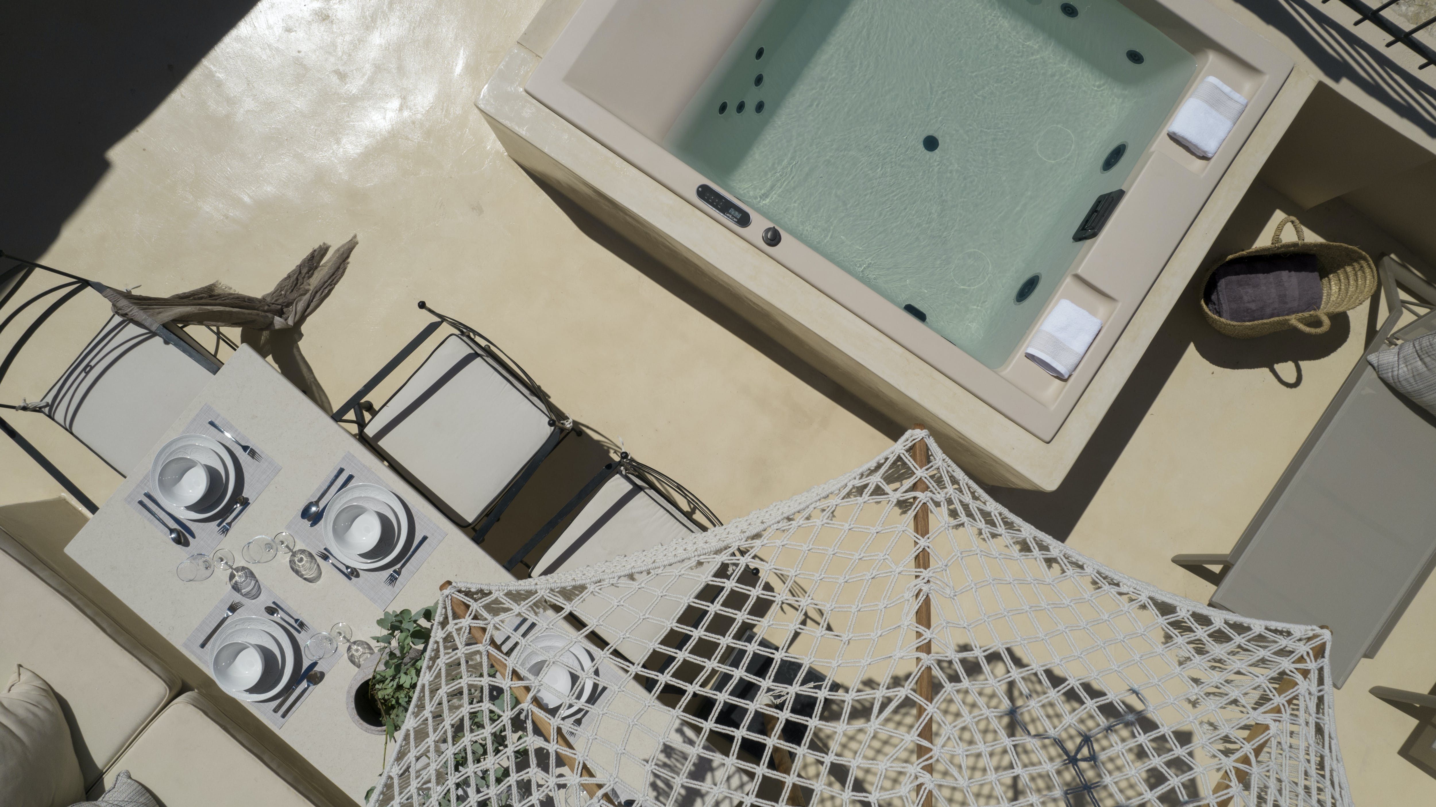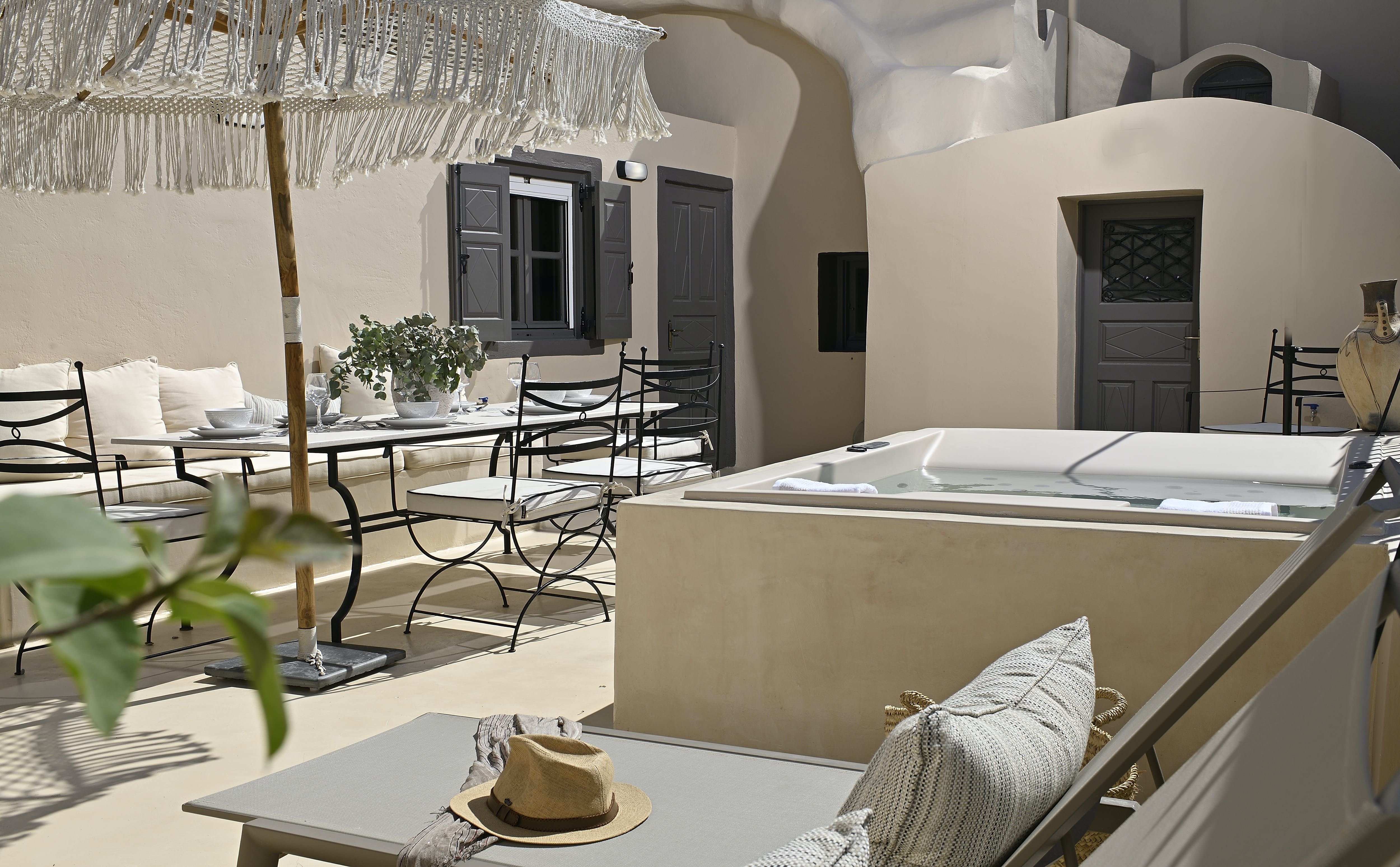 An idyllic escape wrapped in timeless elegance, this beautifully restored traditional Santorinian house is a treasure chest of tranquillity in ever-enchanting Oia. This sanctuary, with its inviting private layout, comfortably accommodates eight travellers. Featuring three bedrooms and bathrooms, and an exquisitely appointed traditional kitchen, prepare to steep yourself in the warmth of Grecian hospitality. Unwind amidst the flow of Aegean waves in the outdoor jacuzzi perched on the terrace. Soak in breathtaking sea views from the courtyard, harmonising modern comfort with Oia's captivating ancient charm. This quaint abode stands a stone's throw away from Oia’s vibrant centre, enveloped by an array of inviting shops and eateries. As the sun slips behind the horizon, revel in a remnant of Santorini’s rich maritime history recalled through vintage cutlery and decorative elements reminiscent of yesteryears’ captains, underlining the prosperity echoed in every corner of this stunning holiday enclave.
