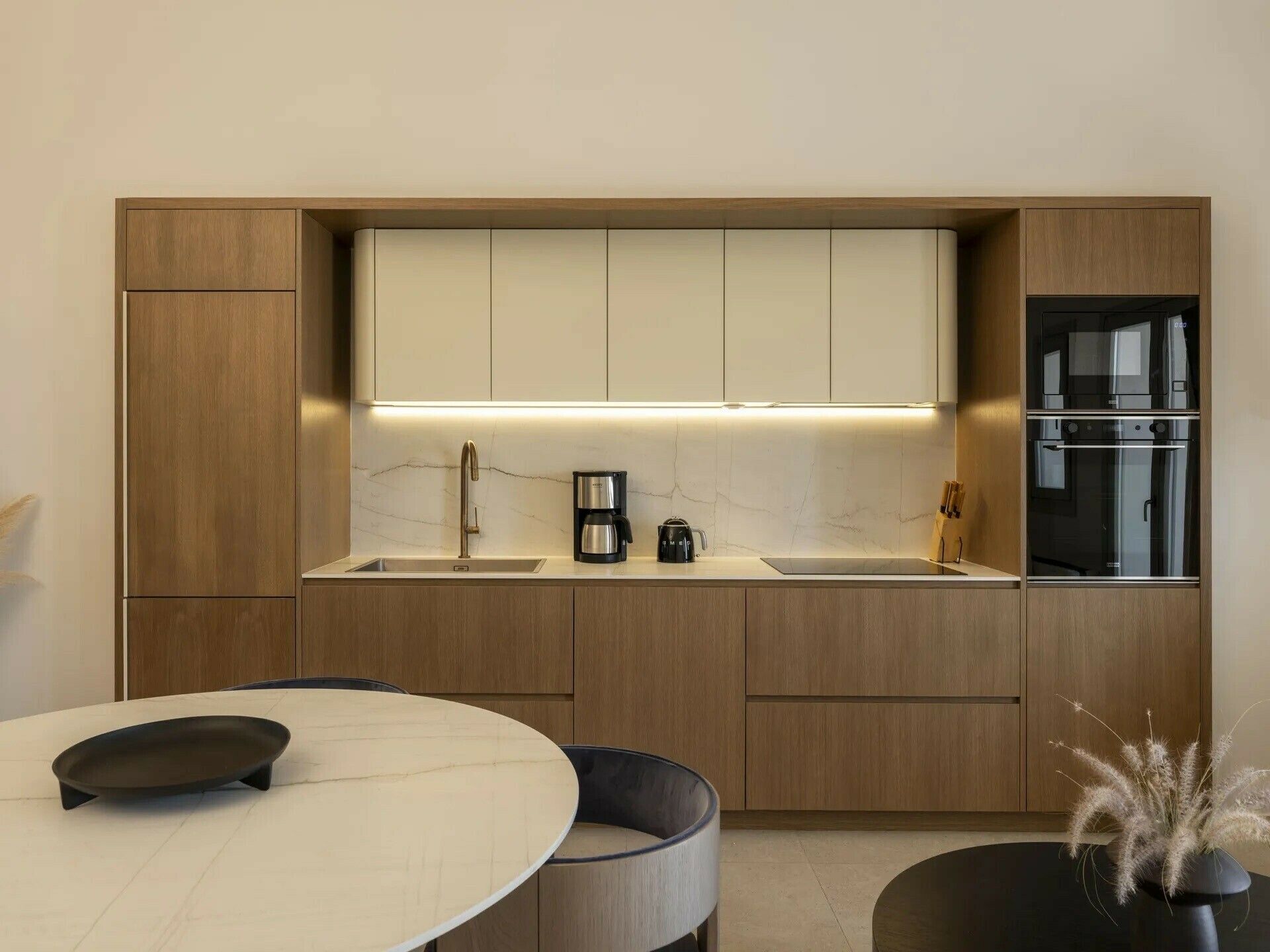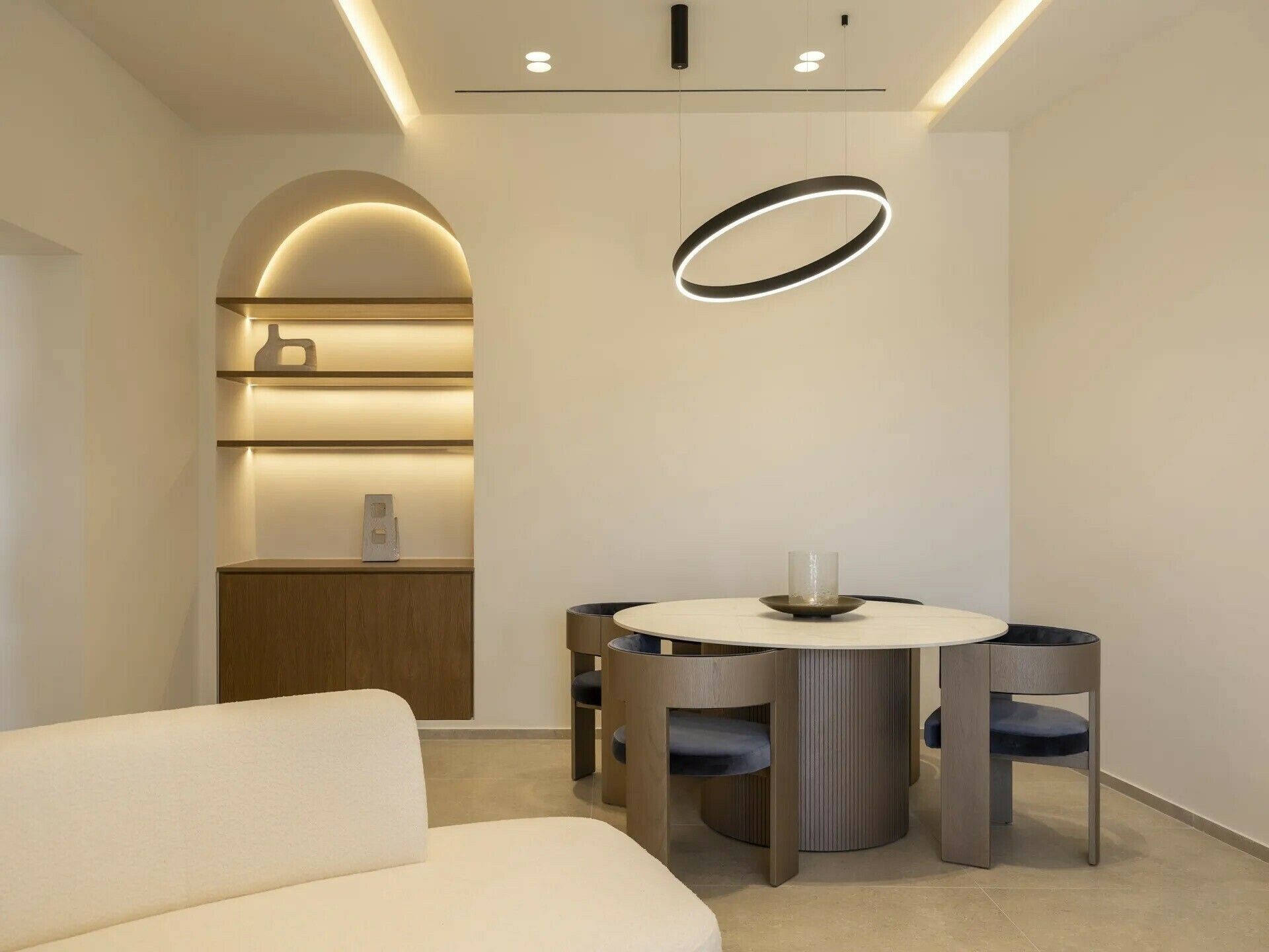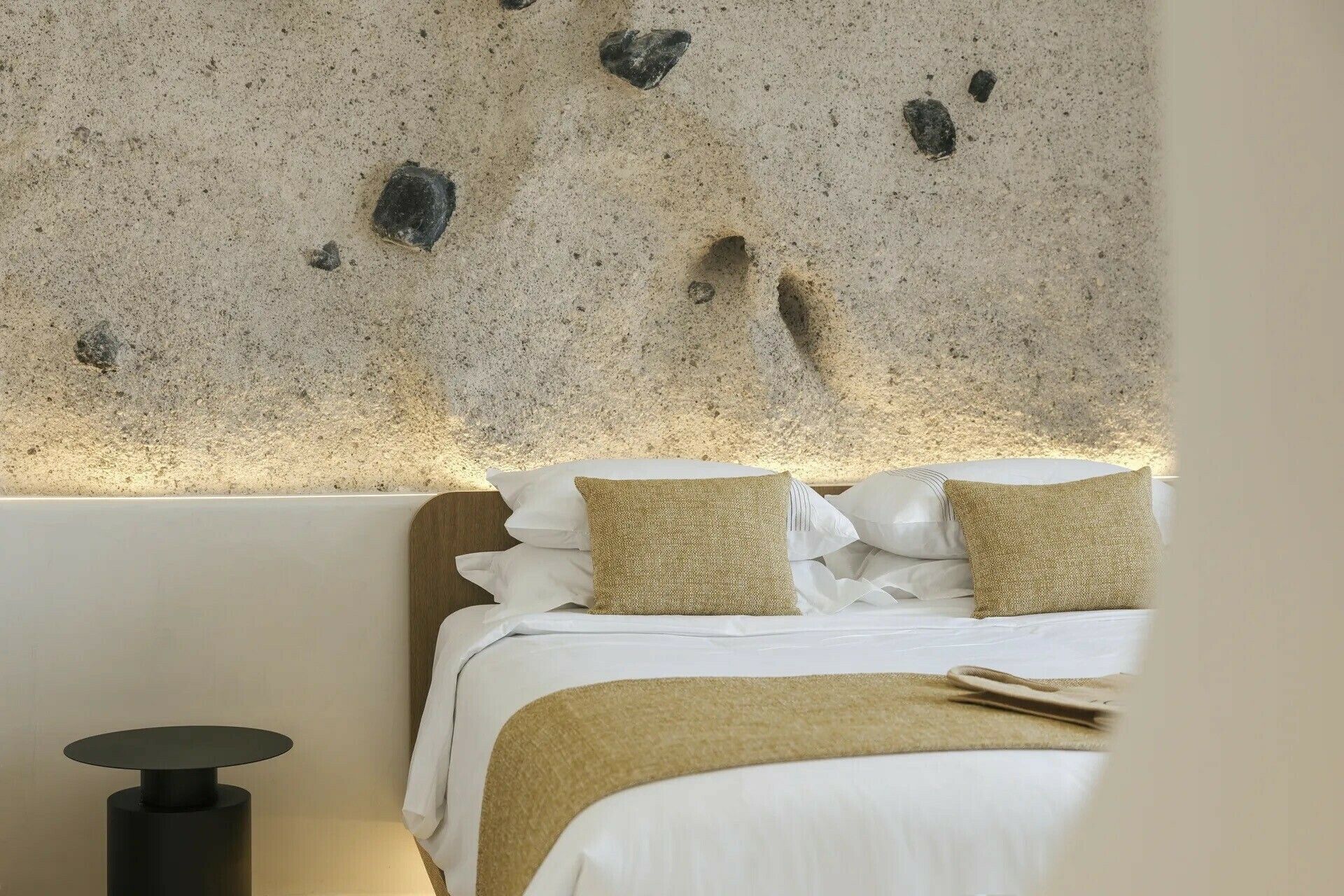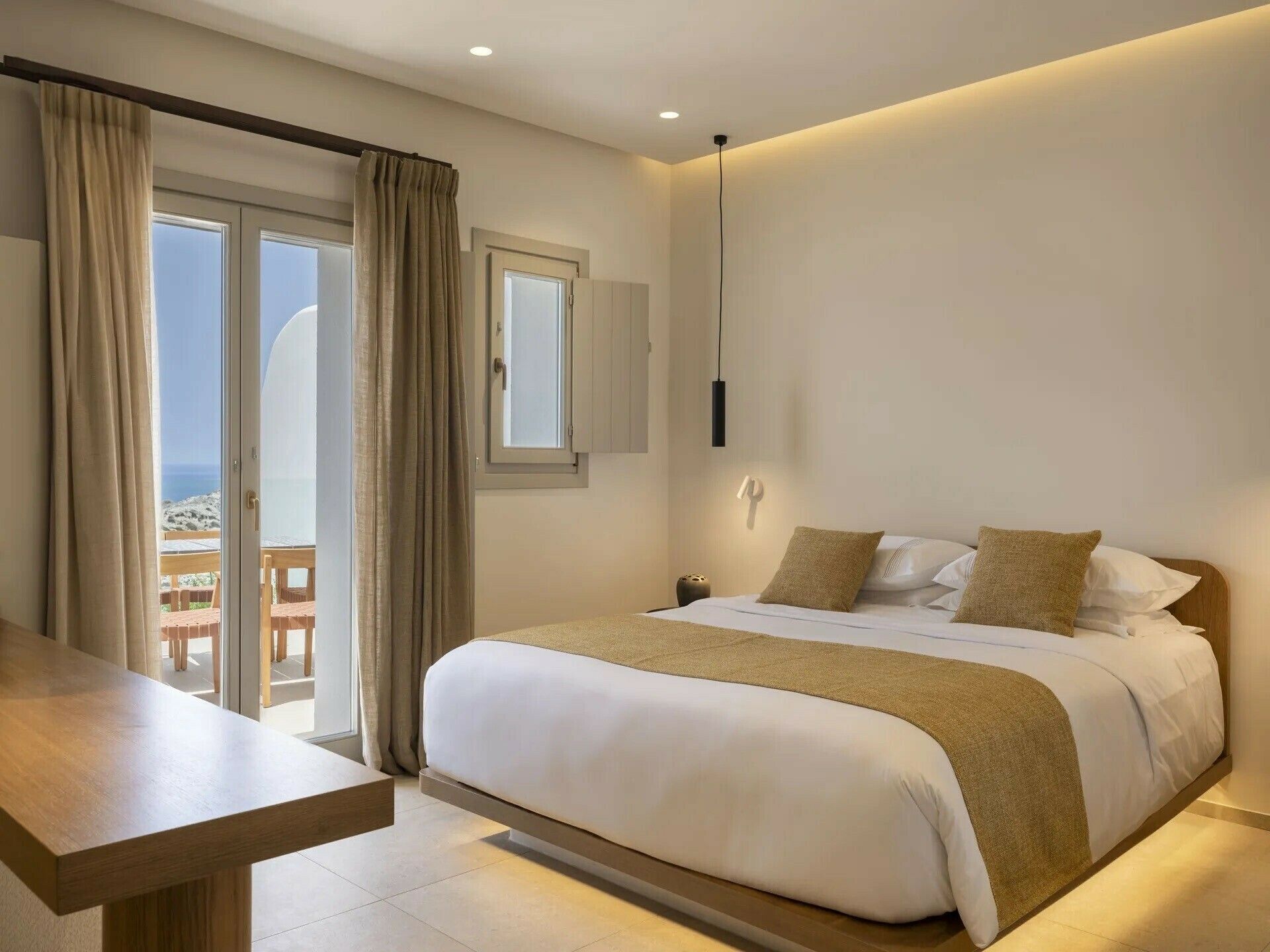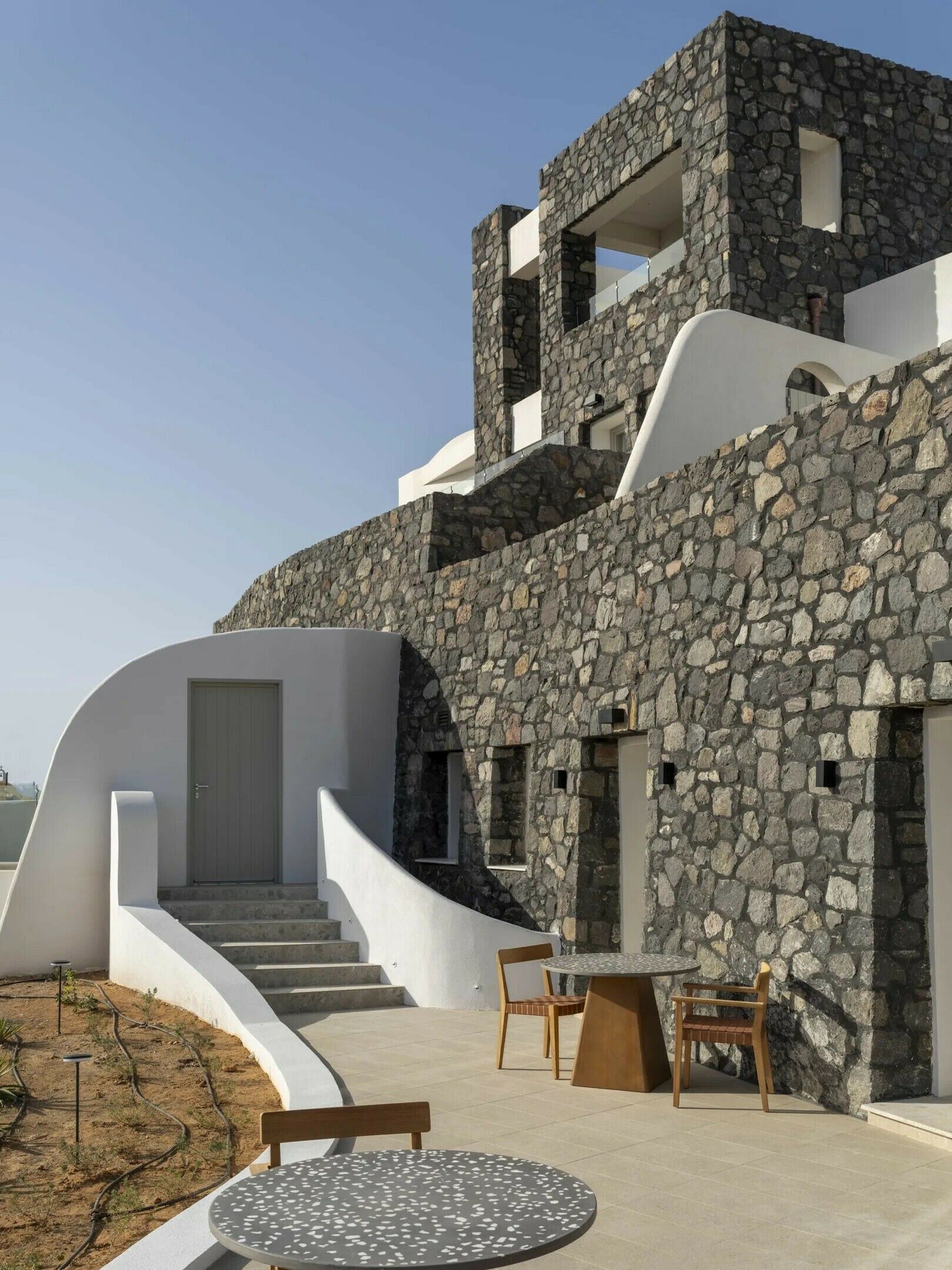 This villa boasts uninterrupted views of the Aegean Sea and Santorini’s glorious sunsets. It’s an elegant, comfortable place to stay, with all the amenities you could ask for, including a gym and sauna. Outside on the terrace, you’ll find a private pool and a Jacuzzi – you can really relax here. The shops and restaurants of Oia are less than a twenty-minute walk, and the clear waters of Paralia Katharos are mere minutes away.