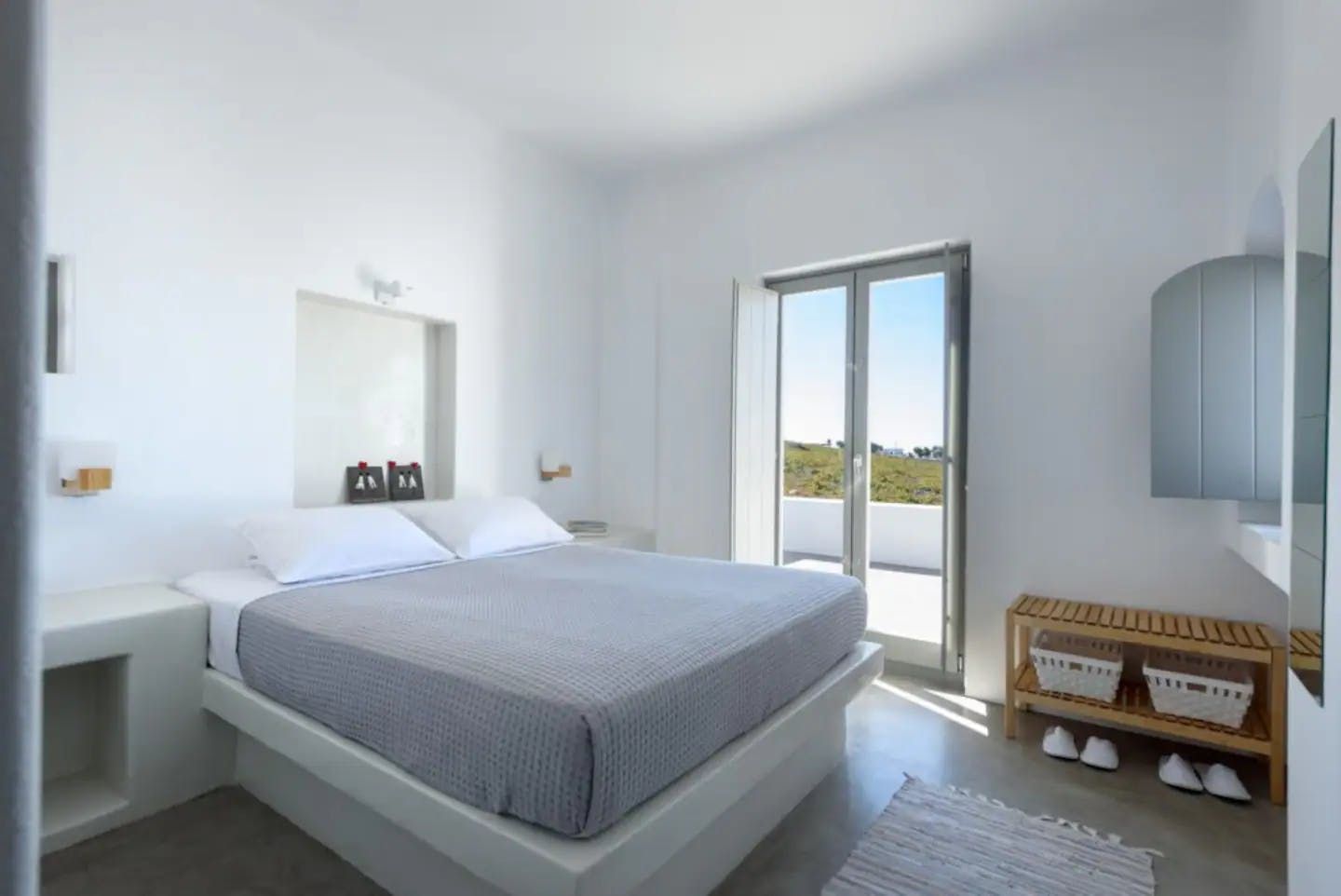 Perched above Santorini's western coast, this Cycladic-inspired home is perfect for sunset lovers who value peace and tranquillity above all else. You'll enjoy stunning views of the Aegean Sea from the pool and terrace, while the calm, minimalist interior is perfect for afternoon naps. With the second bed lacking space, the home best suits couples or those travelling with children. Although there's no kitchen here, a short stroll will bring you to local eateries, and the central location means you're just a short drive from many sandy beaches and beautiful bays.
