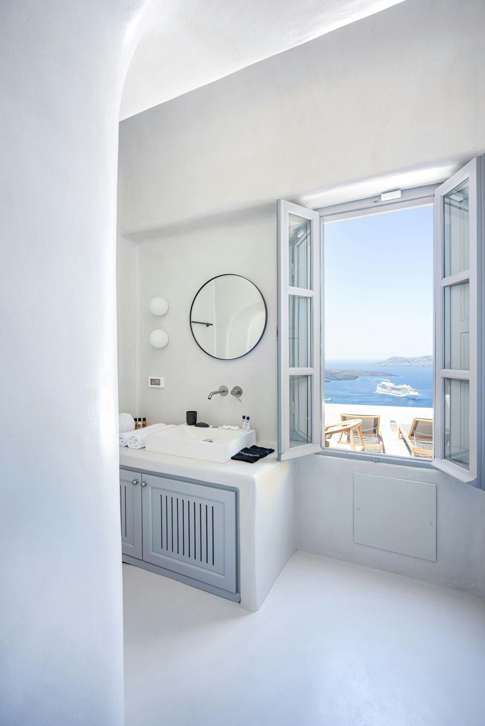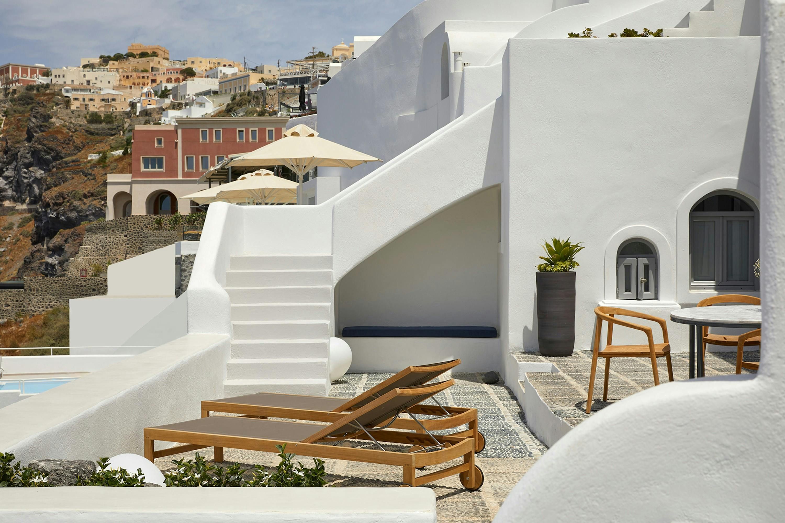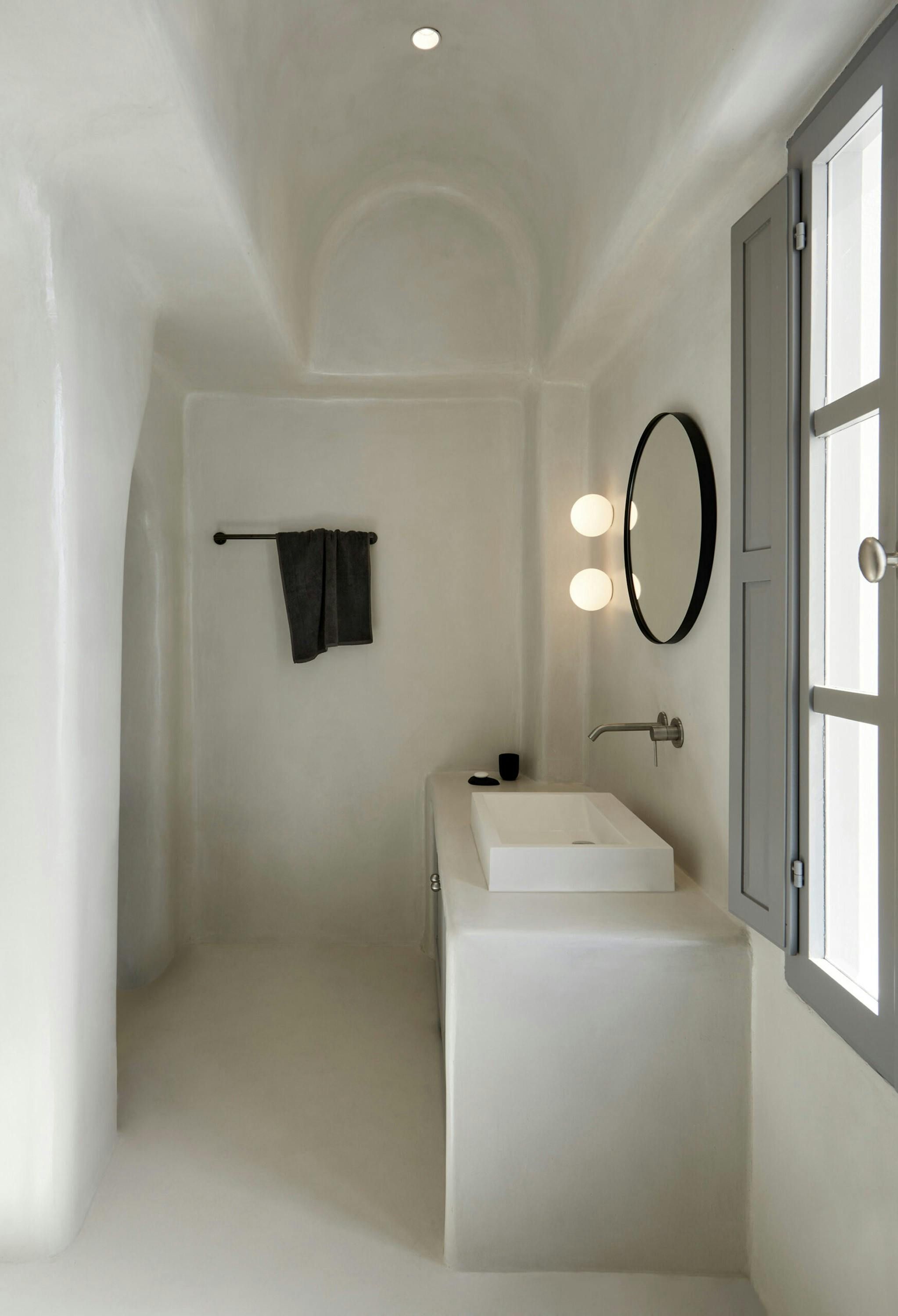 [A 1 bedroom cave house villa, with exclusive caldera and sunset views and all modern amenities.] Exuding elegance, this villa welcomes you with its modern simplicity and stunning island vistas. Awaken to the calming sounds of the sea and step onto your private terrace, where breathtaking sunsets paint the sky. The living room boasts plush couches and a flat-screen TV, while a fully fitted kitchen offers convenience at your fingertips. The bathroom provides a serene space to unwind whilst enjoying spectacular caldera views. Nestled within a private estate of 4 designer homes tumbling along the cliffside, this property offers intimacy and tranquility. Enjoy modern amenities such as air conditioning, beach towels, daily maid service, and Wi-Fi. Immerse yourself in the essence of Santorini at Caldera Serenity.