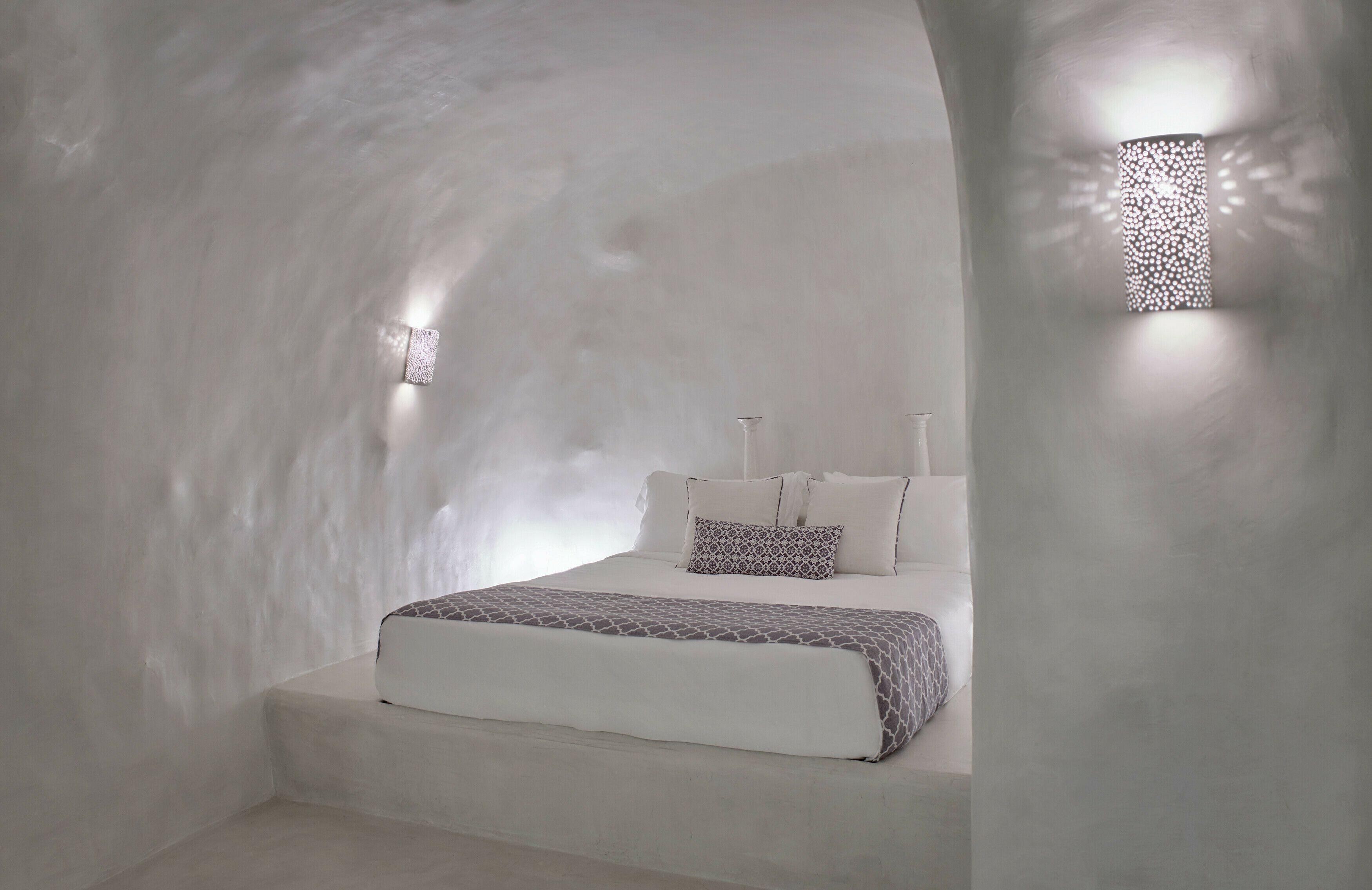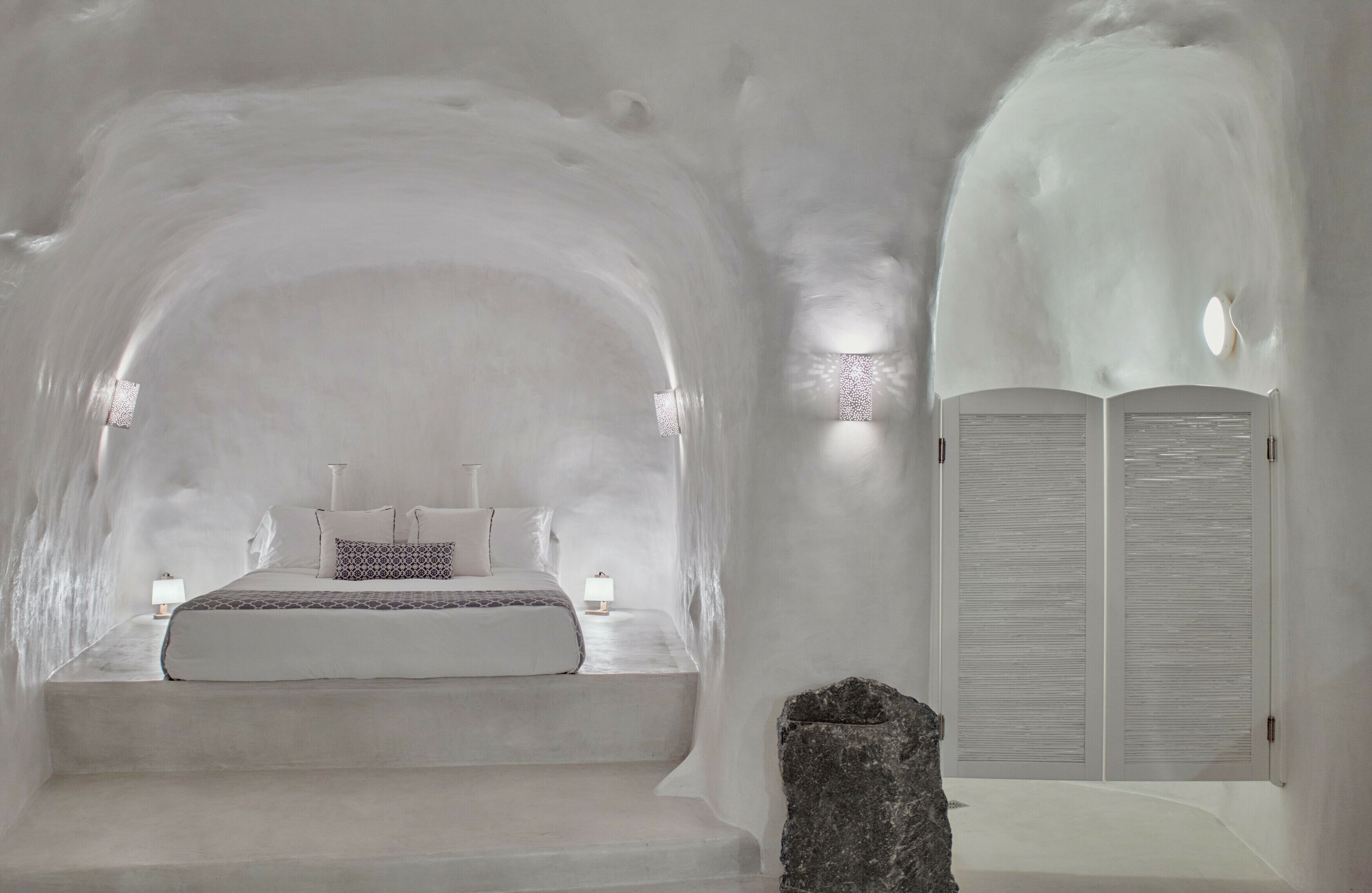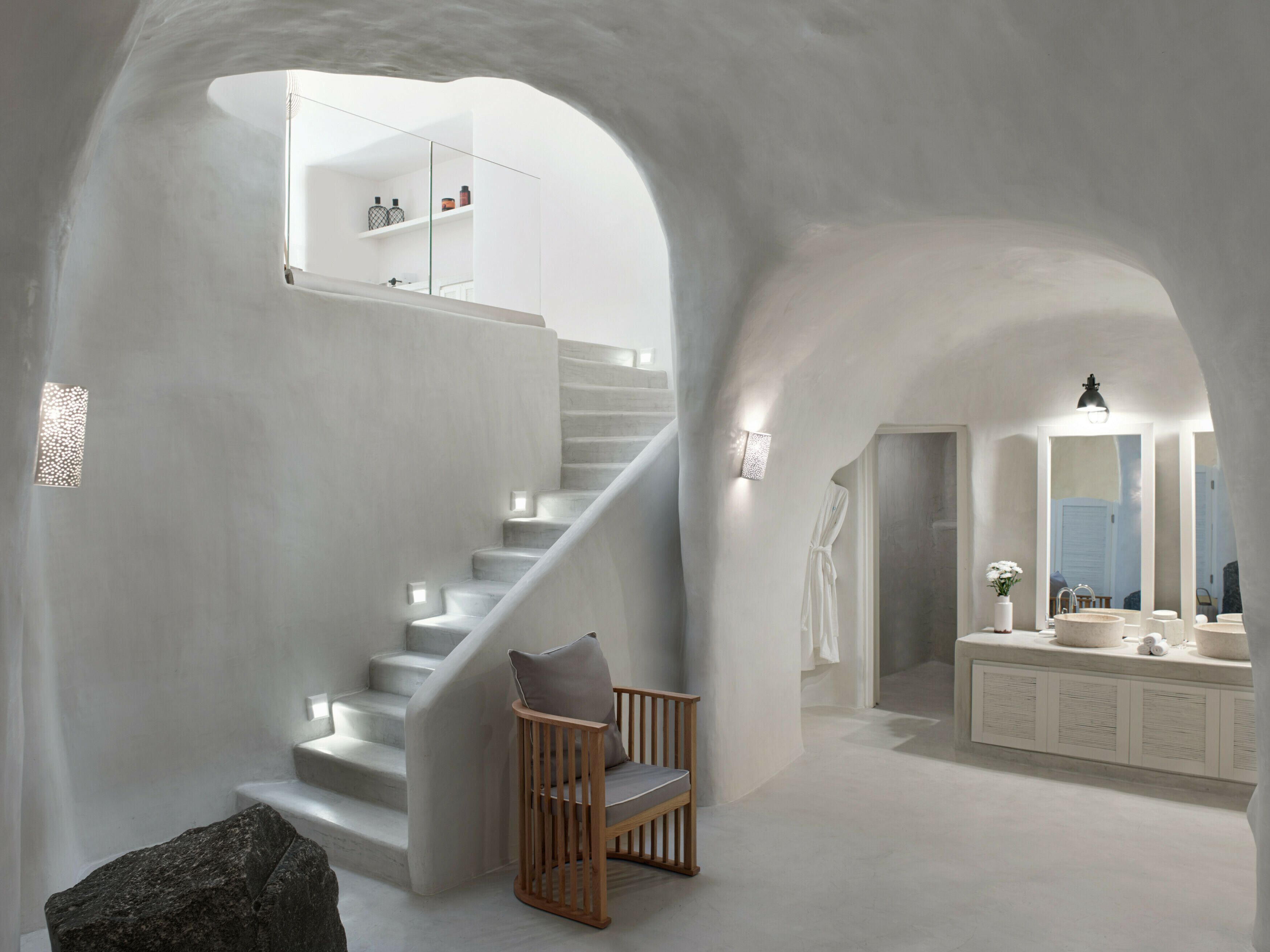 This villa may be compact, but it packs plenty of Santorini charm. This home away from home is a cosy retreat with sweeping views over the Aegean that instantly remind you where you are. The real highlight for us is the cave bedroom downstairs – cool, peaceful and a nod to the island’s iconic architecture. Upstairs, the open-plan living, dining and kitchenette area is bright and practical, though one guest will sleep on the sofa bed here. Teamed with the fact that the only bathroom is the en-suite, it’s probably best suited to a younger family member. Step outside and the shared pool is perfect for a refreshing dip, especially after a day spent exploring the island.