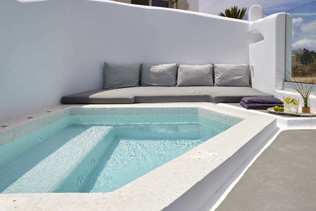 This Cycladic villa is in the perfect spot to explore Santorini’s east and west coasts. We would say a car is a must here – that way you can make the most of the island’s wineries, authentic restaurants and sandy beaches. A stay in Santorini wouldn’t be complete without experiencing the whitewashed cube-shaped architecture, and this small but charming villa combines the traditional features with modern furnishings – the hot tub and outdoor lounge overlooking the sea are our highlights. If you’re seeking a beach day, you'll find Monolithos Beach just a short drive away.