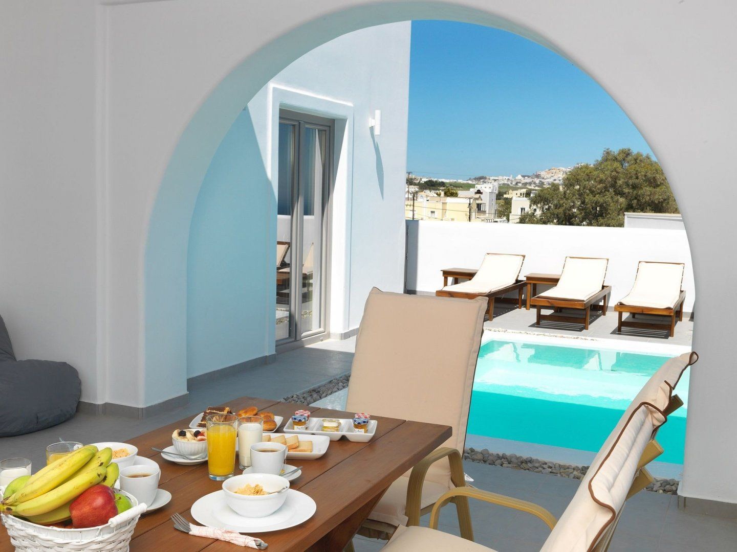 While the villa may be compact, it provides an idyllic base from which to explore the island of Santorini. In an utterly blissful setting, you'll feel the holiday vibes from the moment you arrive out by the private pool. Through the arched wall, serve up delicious breakfasts at the sunny alfresco dining area before setting off for a beach day at Kamari Beach – only a twelve-minute drive away.