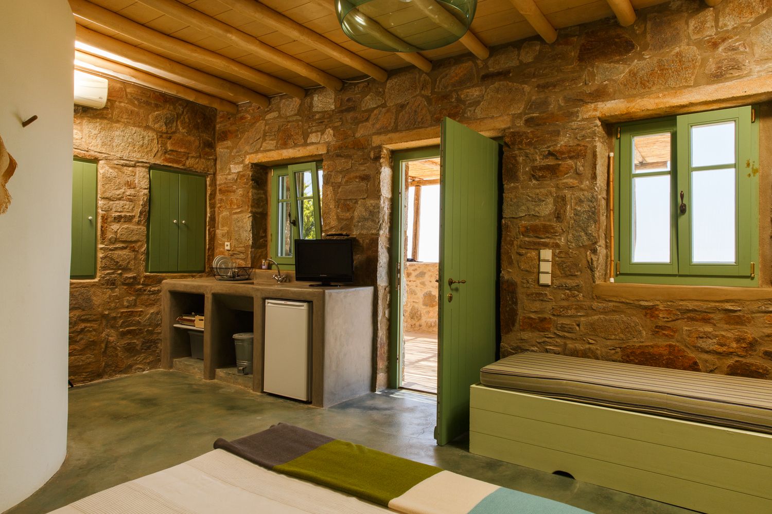 Sitting in perfect harmony with its surroundings, the rustic nature of this setting perfectly embodies the laid-back spirit of Cycladic living. From here, days can be spent listening to the soothing sound of the sea whilst swaying in the hammock, taking impromptu dips in the pool and gathering for idyllic sunset drinks on the terrace. You’ll also find a wood-fired oven, while the kitchen is fully equipped with everything you could need to prepare Greek-inspired feasts.