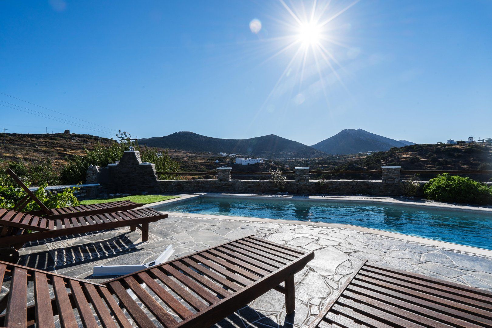 This beautiful villa showcases everything we love about a Grecian getaway. Curved white Cycladic walls, wooden beams and beautiful exterior stonework all combine to make this home a truly special place to stay.
