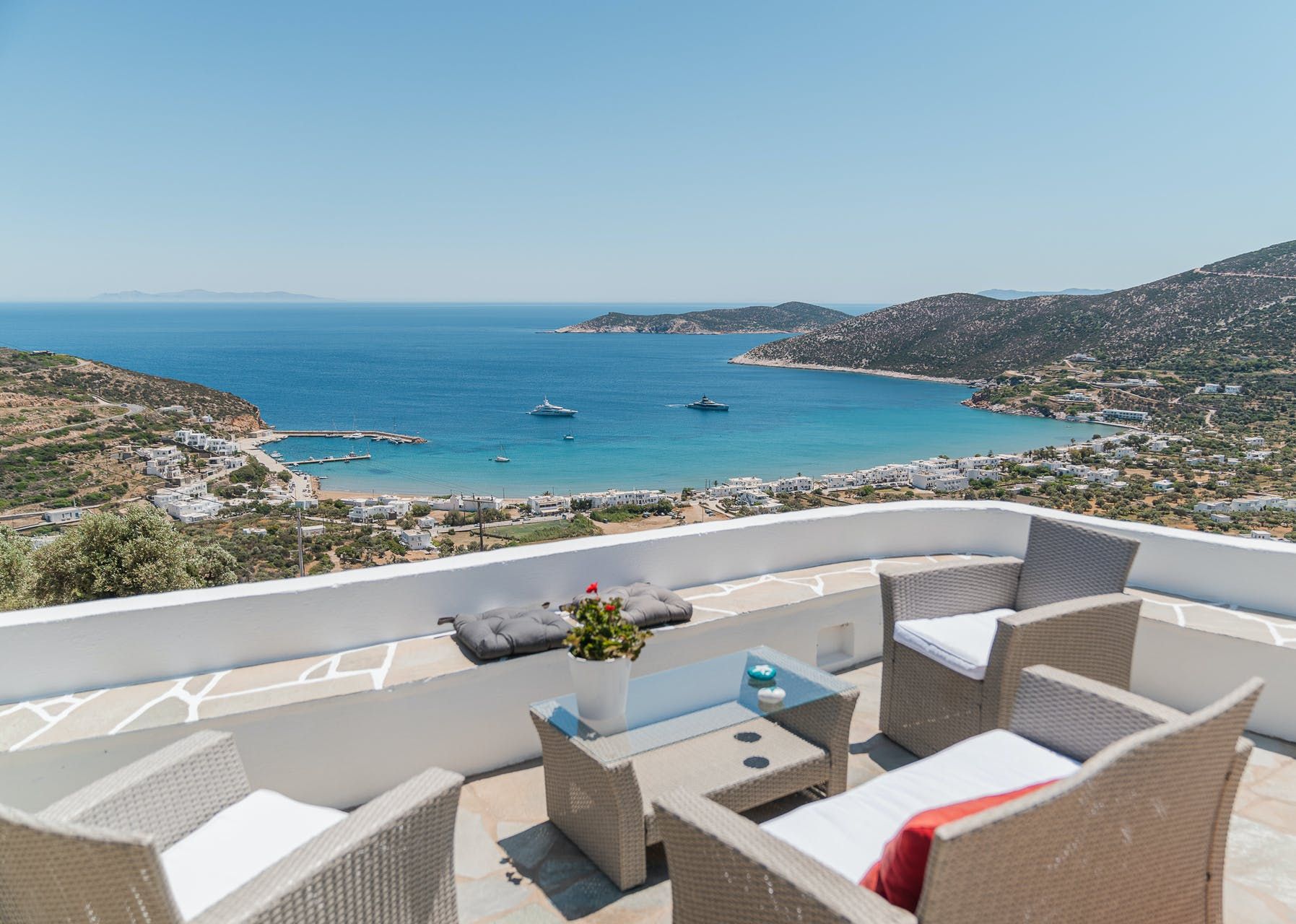 This Cycladic villa caught our eye with its sweeping views and fabulous outdoor space. It overlooks Platis Gialos bay, and while it might not be within walking distance of the nearest beach – you'll need to hire a car – Platis Yialos is just 4km away. Other highlights include the large heated Jacuzzi and the host's concierge service – they're happy to organise massage treatments, private island tours and other extras on request. The interior is a tad dated, but breakfast is included here – it's best enjoyed on the terrace as the sun rises, of course.