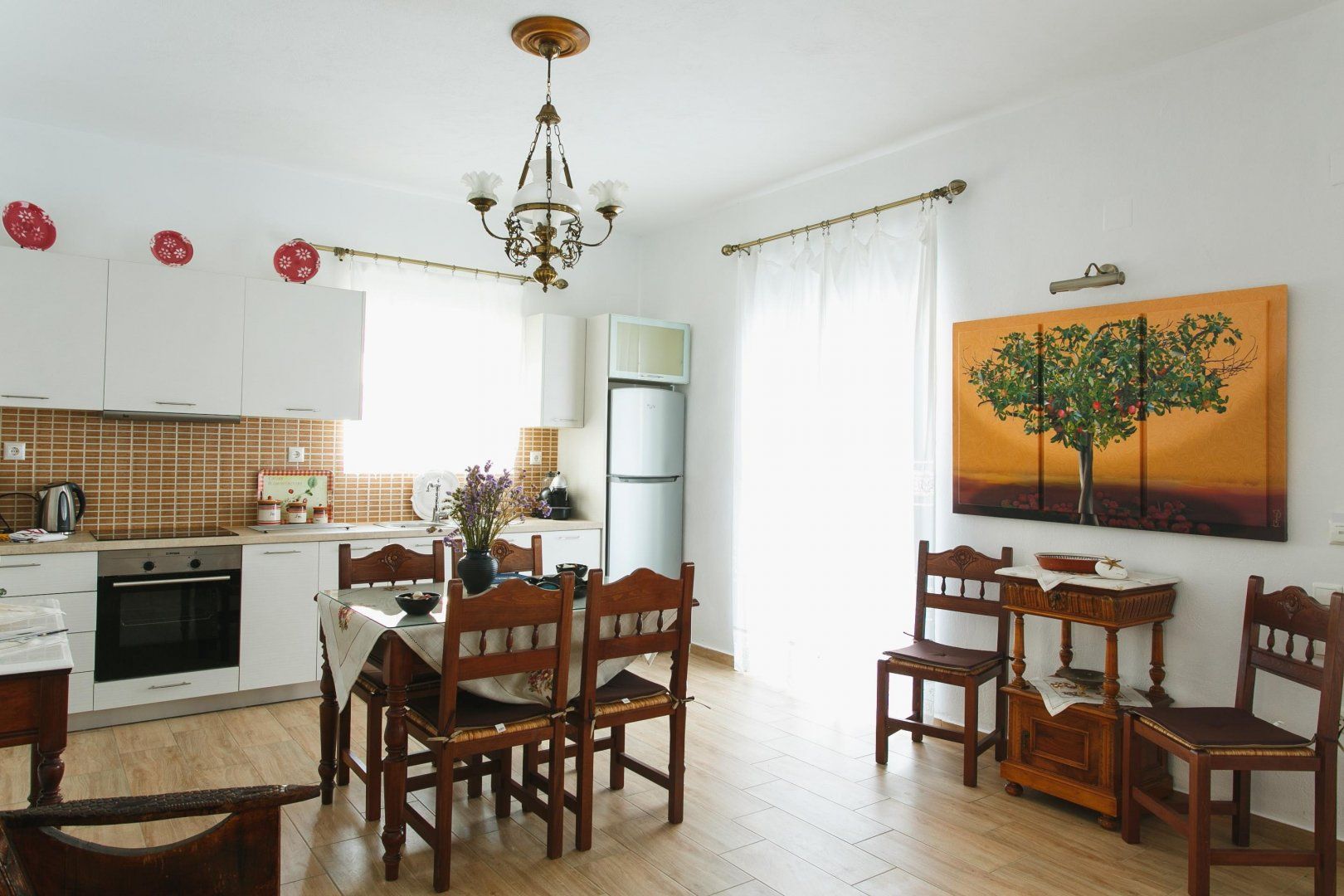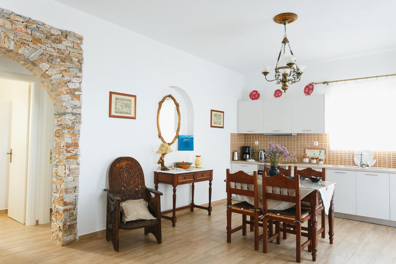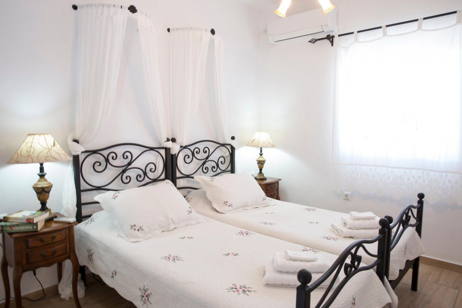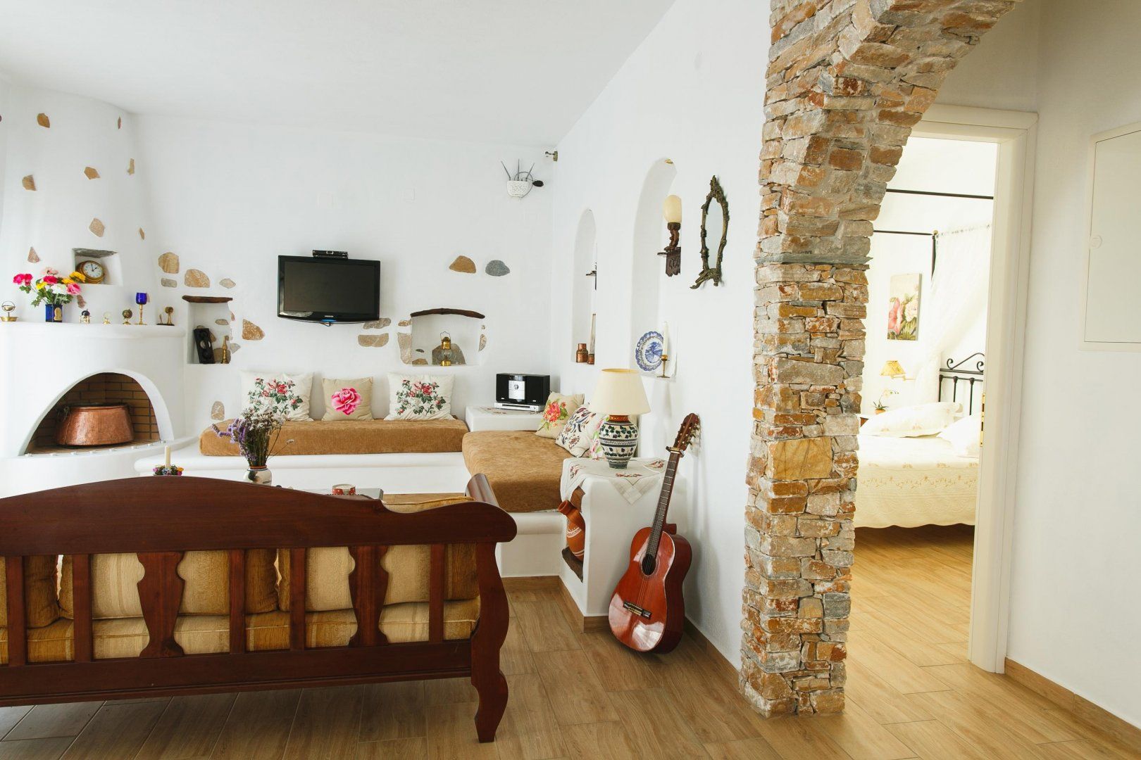 You'll spend most of your time on the veranda, where the cool blue pool beckons on hot afternoons. Fire up the barbecue and outdoor oven when you're feeling peckish – we suggest souvlaki with a side of homemade pita bread – then tuck into your meal underneath the shade of the pergola, watching as the boats bob in the harbour. After lunch, sprawl out for a catnap in the sunshine or retreat inside to the breezy living room and take a breather on the built-in sofas. We love the eclectic mix of antiques – when paired with the white-wash walls, the whole house feels modern yet traditional. Come evening, sip cocktails or share a bottle of local Grecian wine as the sun sets over the Aegean Sea.