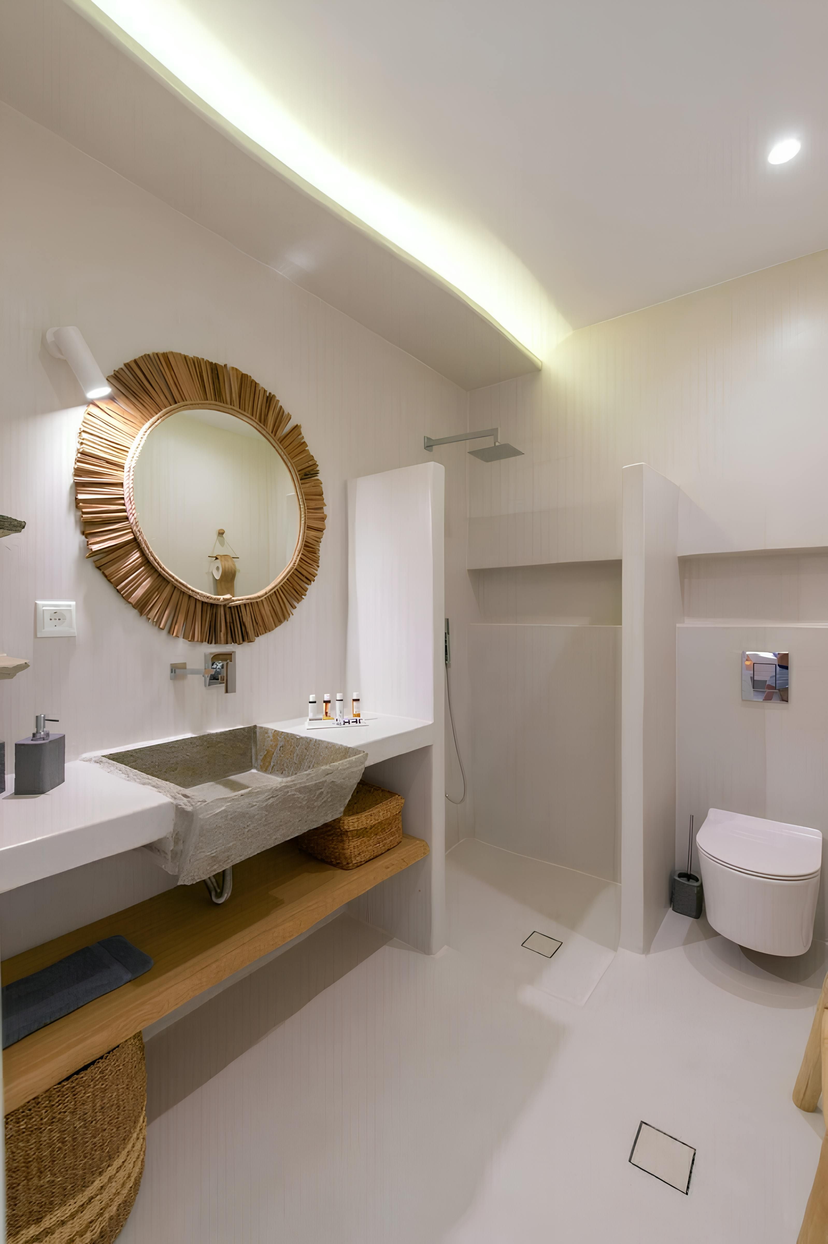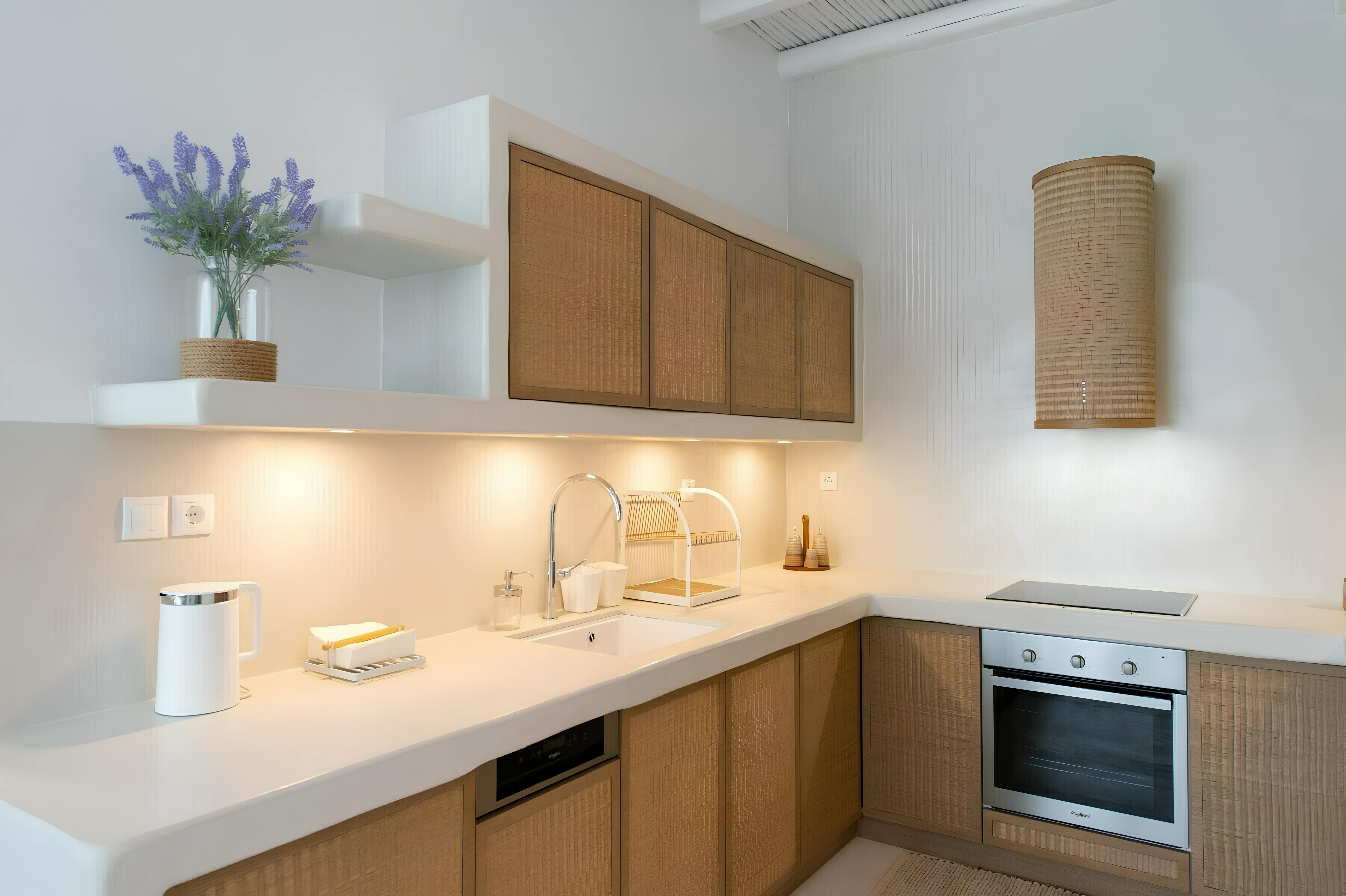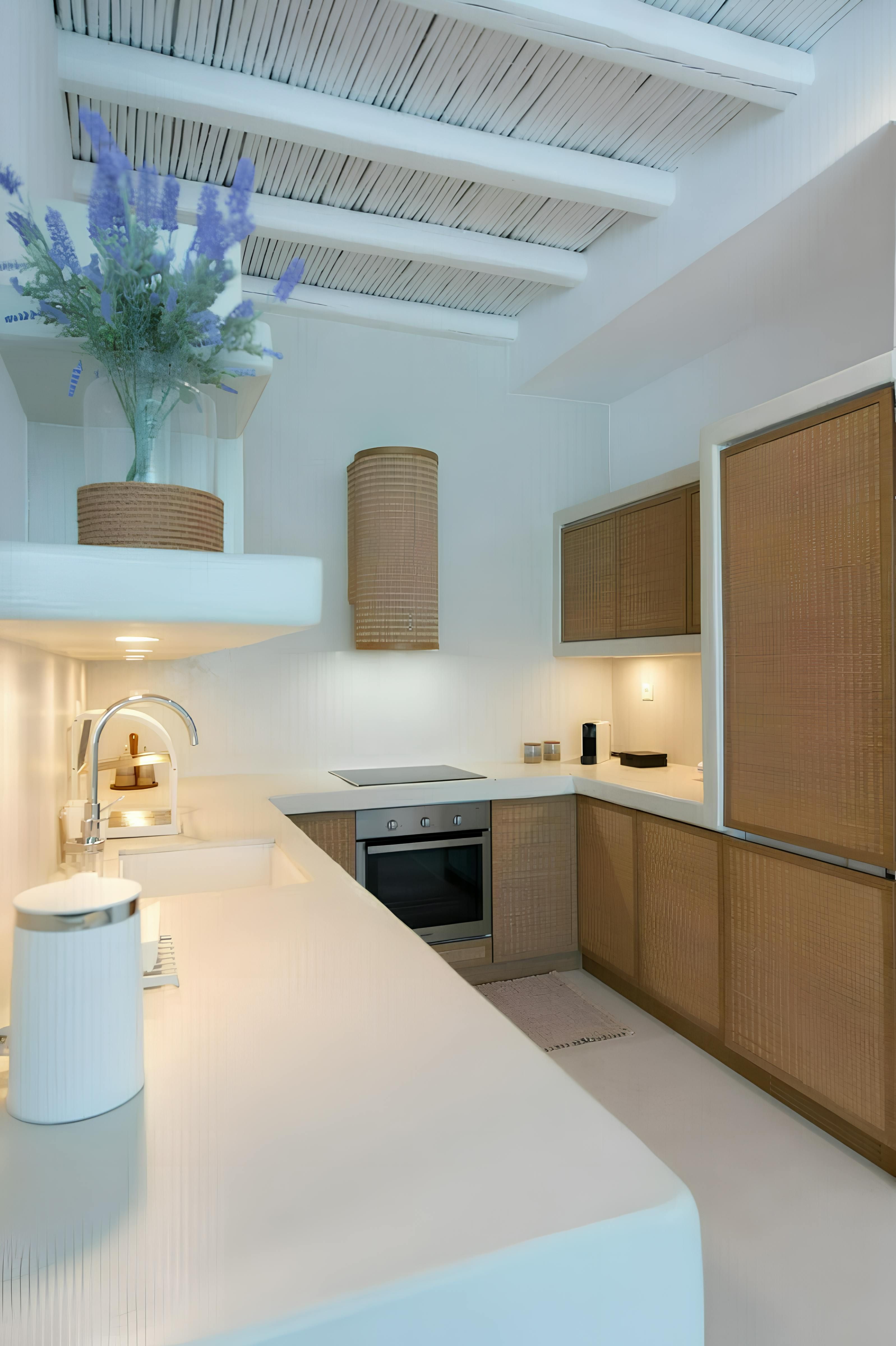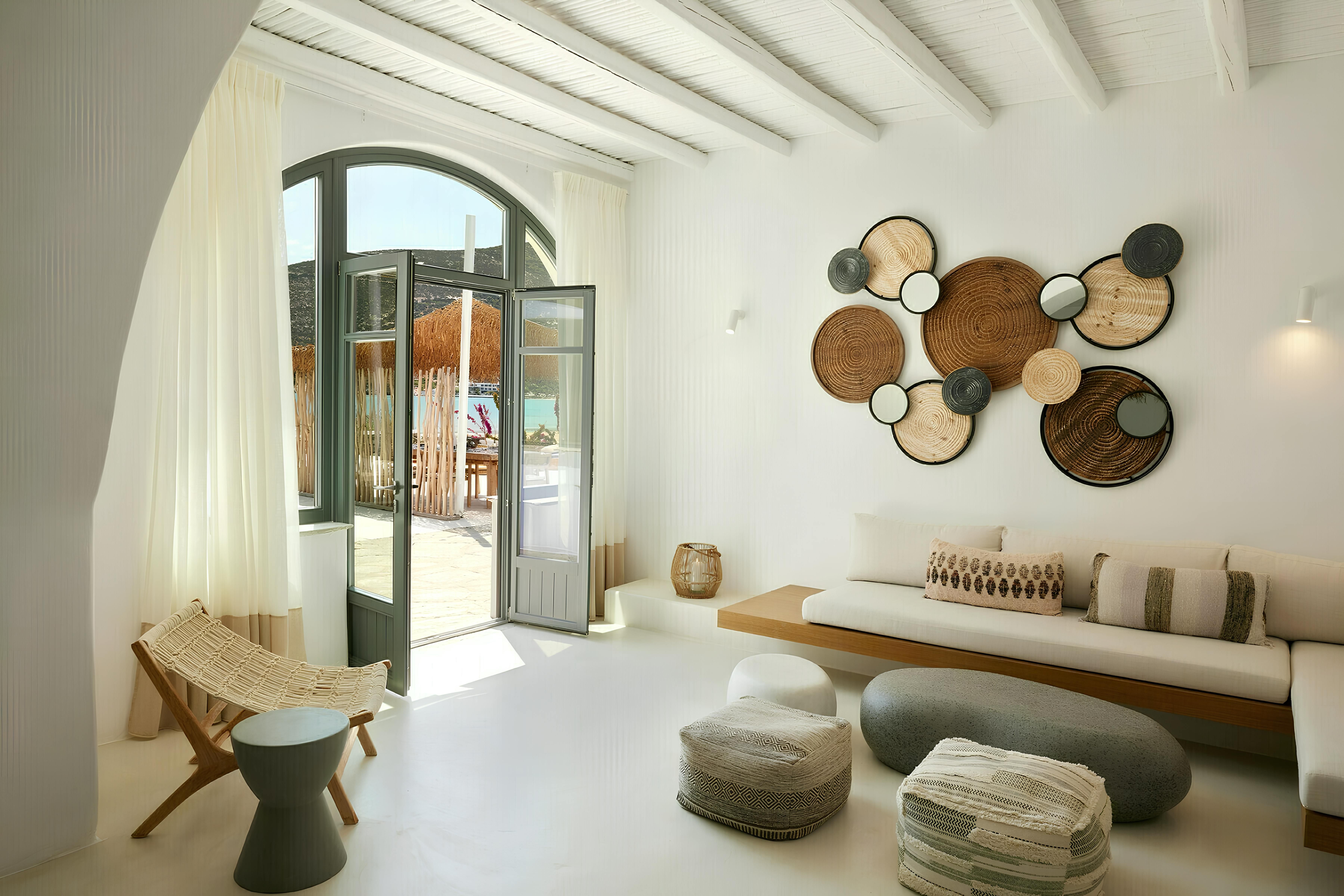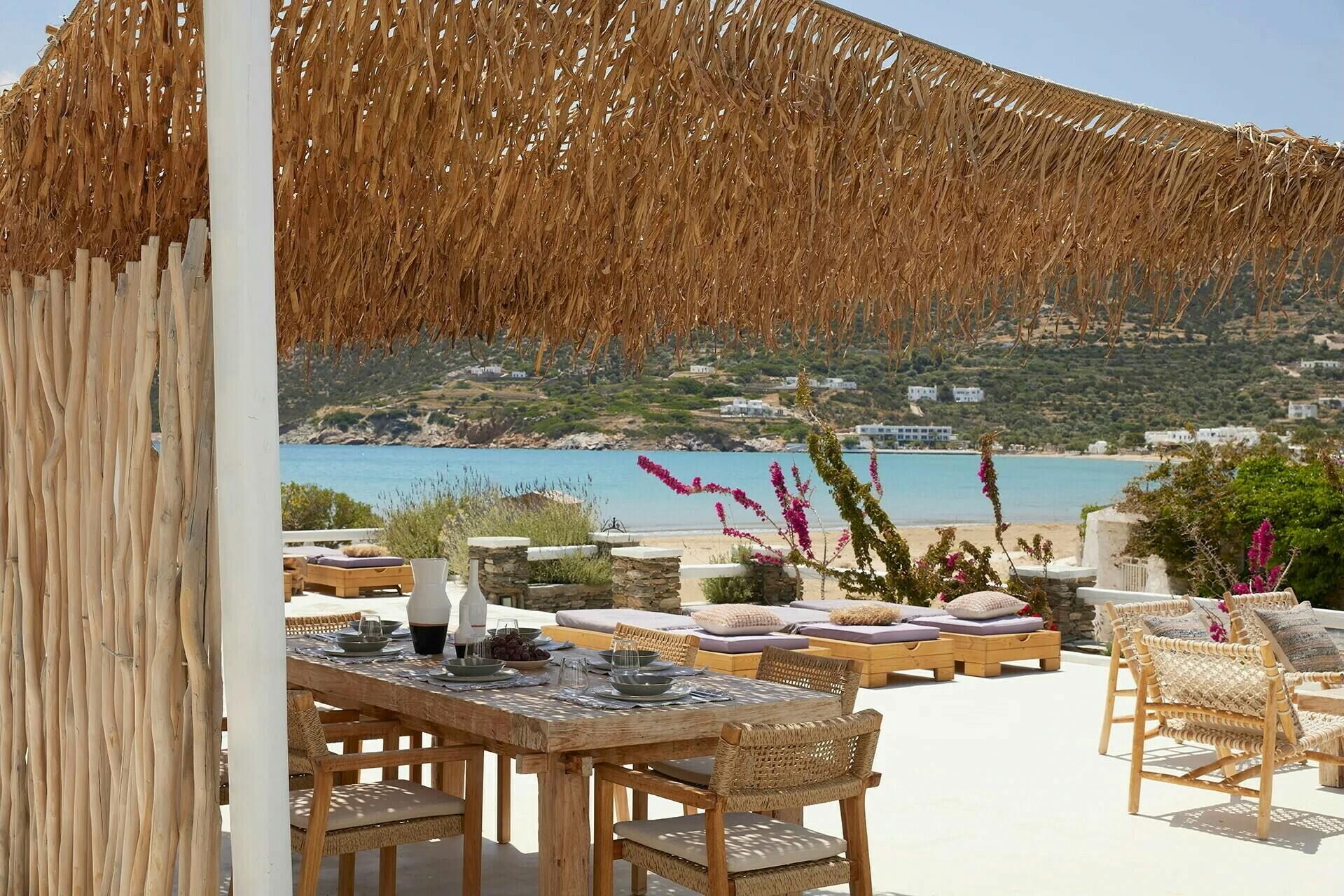 Granted, this Sifnos villa may not have a pool. But with the crystal-clear waters of Platy Gialos shore just twenty metres from your door, it’s a trade-off we're happy to make. Days are best spent hopping between the sandy beach and the expansive sun terraces, shared with just two other villas in this exclusive complex. When you’re ready for a little more privacy, the apartment offers plenty of space to unwind, with a free-flowing living area. Better still, daily housekeeping keeps everything effortlessly in check, so you can fully switch off.