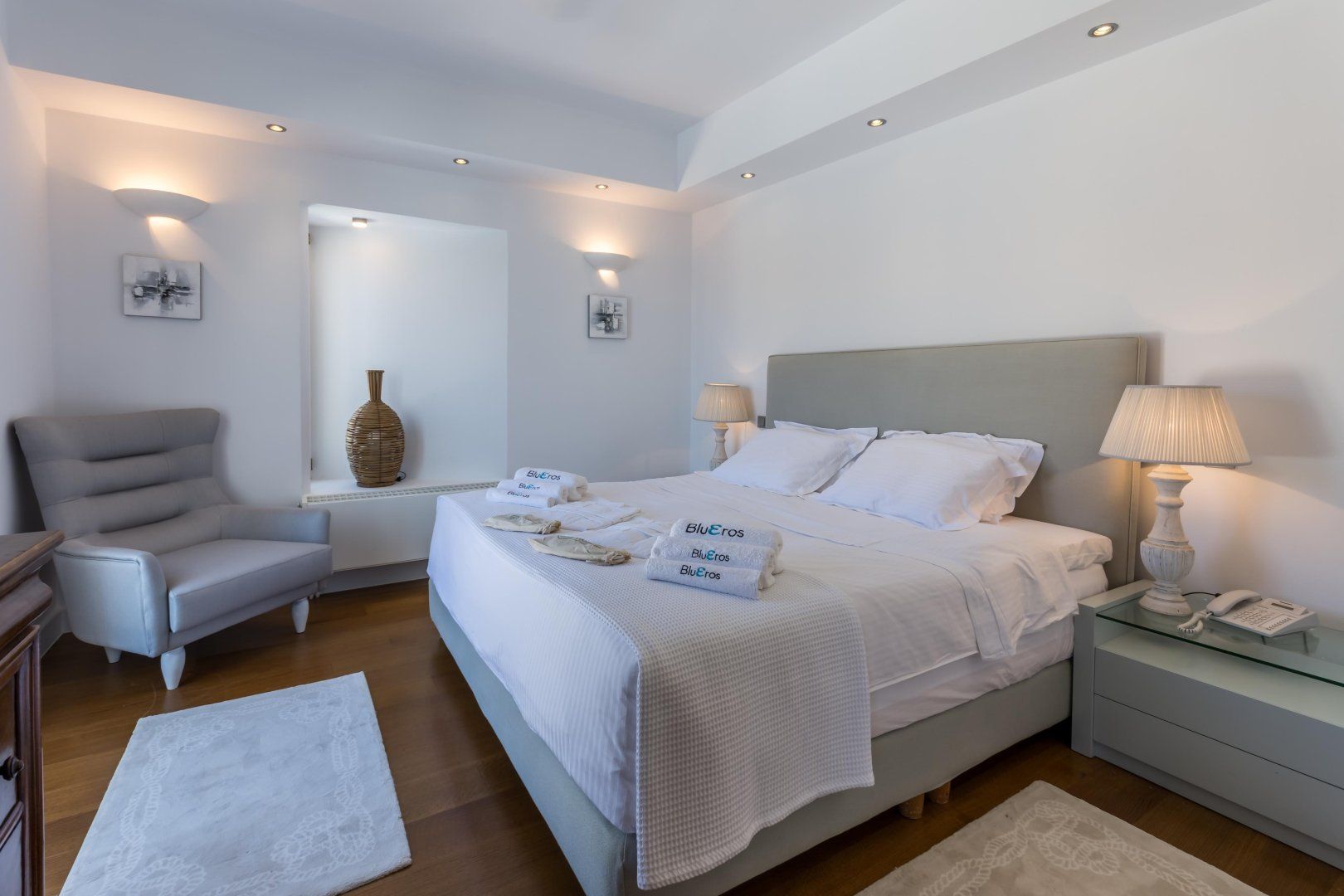 An added perk is the fact that there's direct access to your private beach a short walk from the home and there are larger public seaside spots nearby too, including Ampela only five minutes' walk away.