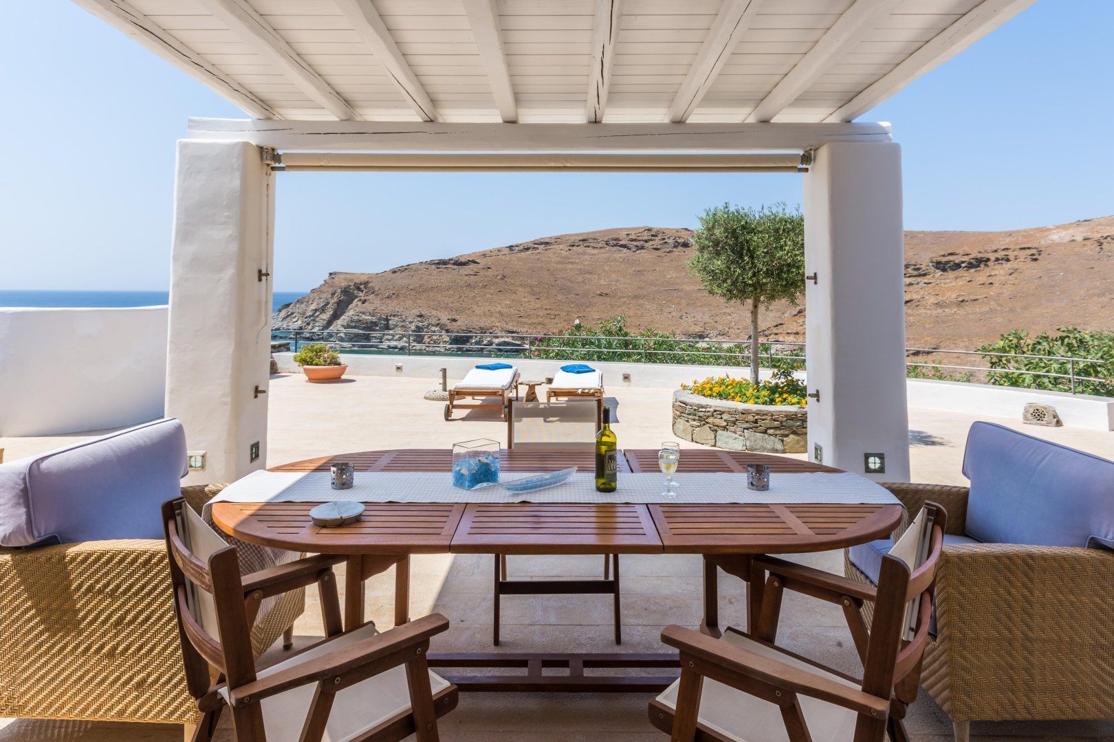 Blessed with an incredible location on the south coastline of Syros, this villa offers a huge range of spots to enjoy this mesmerising landscape. As well as the infinity pool and Jacuzzi, there are a total of ten alfresco lounges or dining areas spread across terraces and verandahs, so you can change things up every night if you so wish.