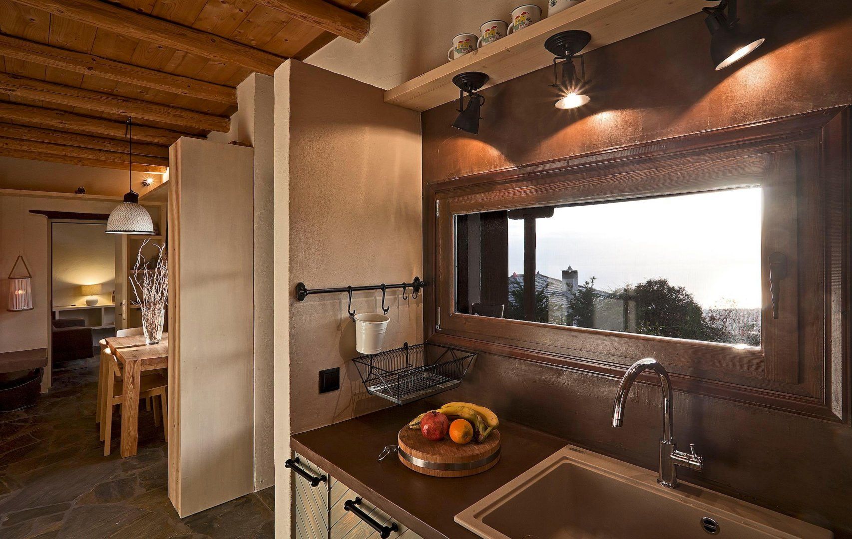 Inside, while this home may not be the most luxurious in our portfolio, it brings all the rustic charm that you'd hope from a sleepy mountain village abode. Beneath the villa's exposed wooden rafters, bespoke carpentry and statement lighting fuse together for a refreshing touch of modernity. And there's everything you need to rustle up a bite to eat in the compact but well-equipped, modern kitchen.