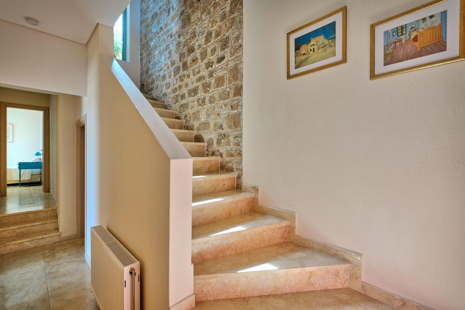 Surrounded by olive trees with uninterrupted views of the Aegean Sea, this low-slung villa is a soothing sanctuary. Inside, it’s rustic and laidback with lofty timber ceilings, exposed stone walls and a neutral colour scheme. Throw open the glass doors to let a gentle salt-tinged breeze float through the home as you put together a traditional breakfast in the uncluttered kitchen.