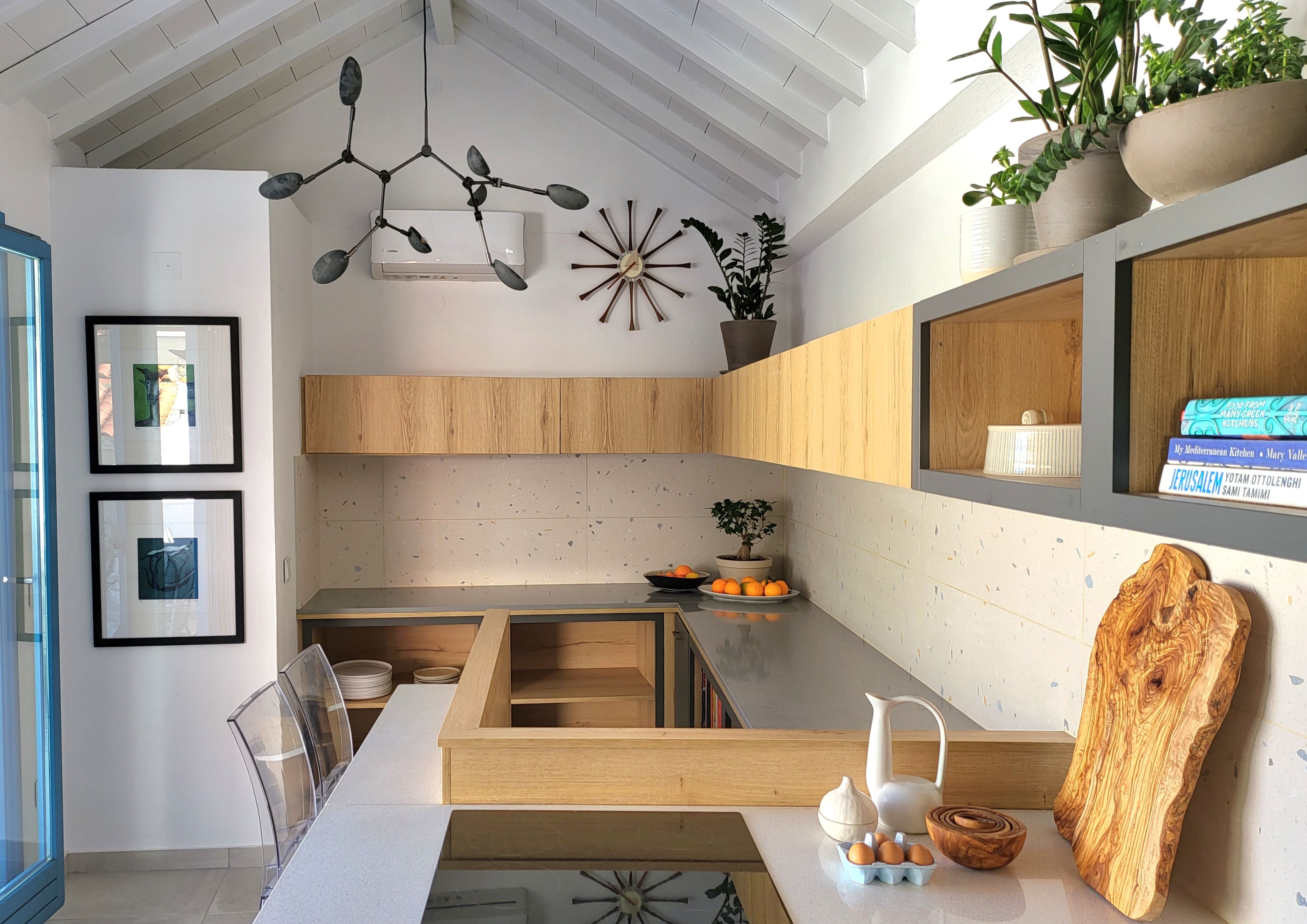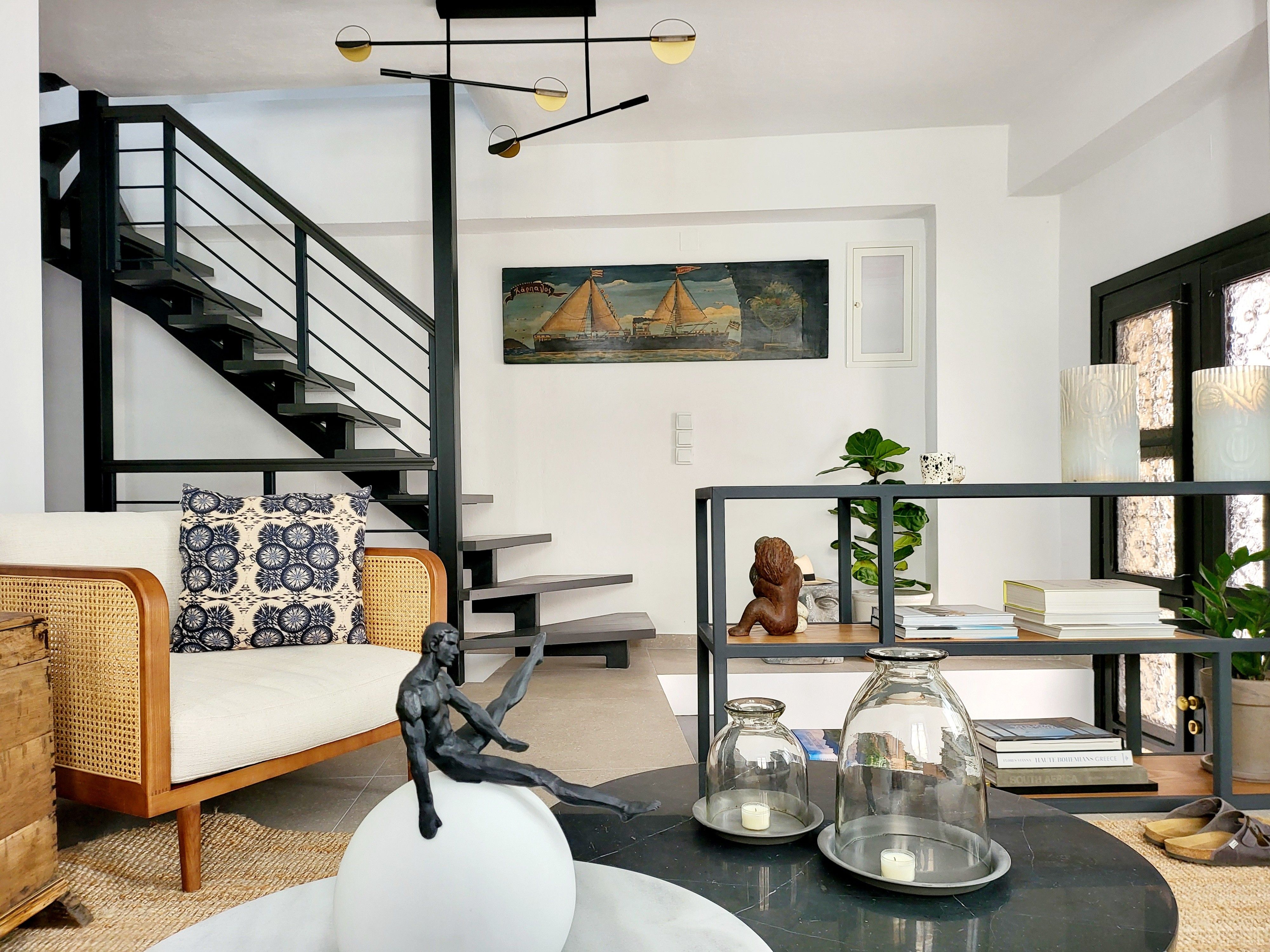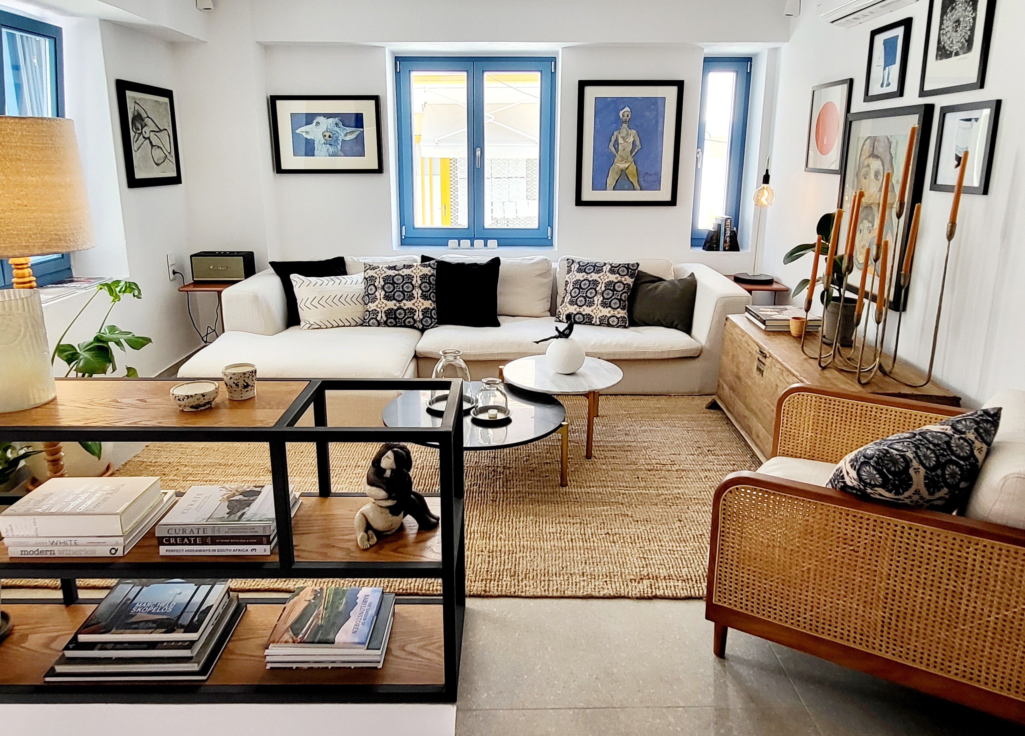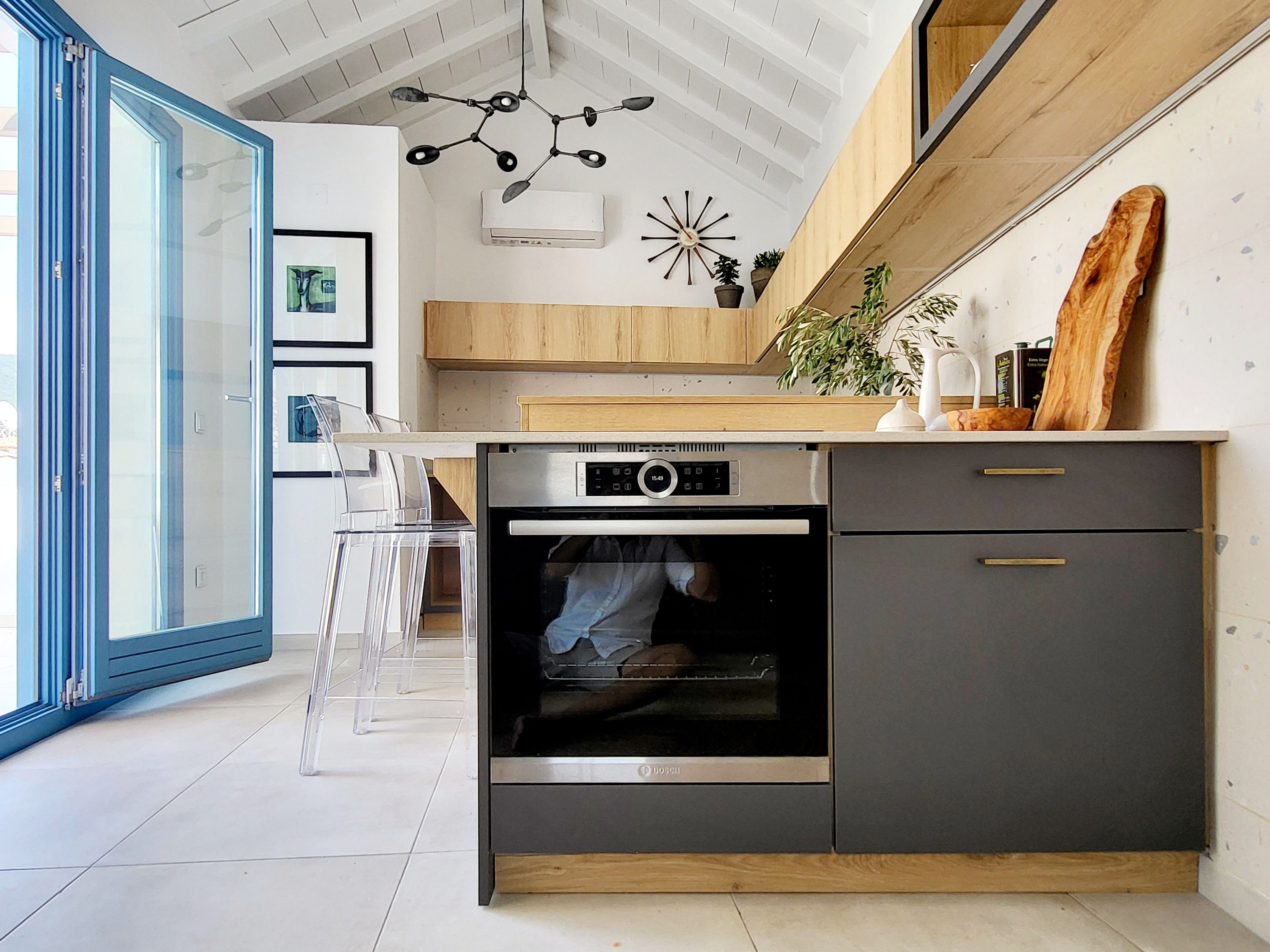 Situated in the heart of Skopelos Town, this multi-level home has panoramic views of Mount Palouki, the port and the island of Alonnissos from its spacious roof terrace. There’s also a balcony off the main bedroom with an orange tree and a bistro table overlooking a square. Inside this beautifully curated home, there’s a modern kitchen for cooking some Greek cuisine. But if you prefer to eat out, the meandering alleys around this house are dotted with restaurants and cafés, as well as bars, bakeries and shops.