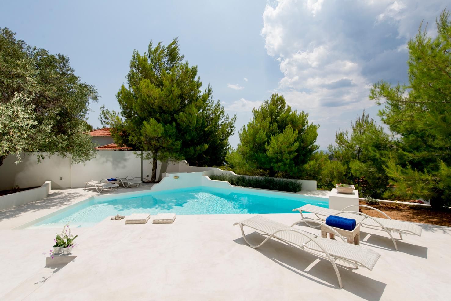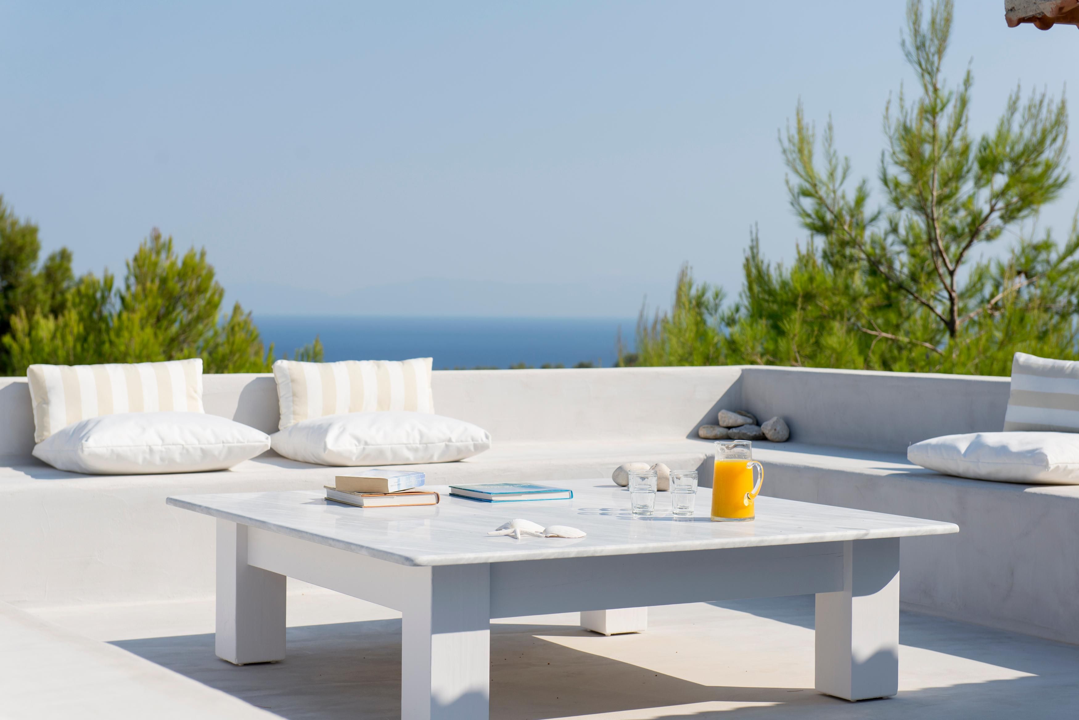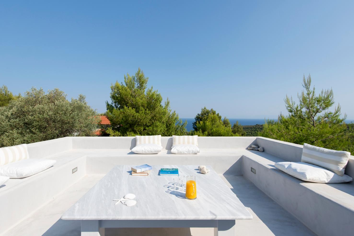 In the warm waters of the Aegean sea, Alonissos plays host to gorgeous beaches, ancient historical sites, and the vibrant port town of Patitiri. From here, you could board a catamaran to start an island-hopping tour of the Aegean, or you could take an eleven-minute drive to this utterly blissful villa.