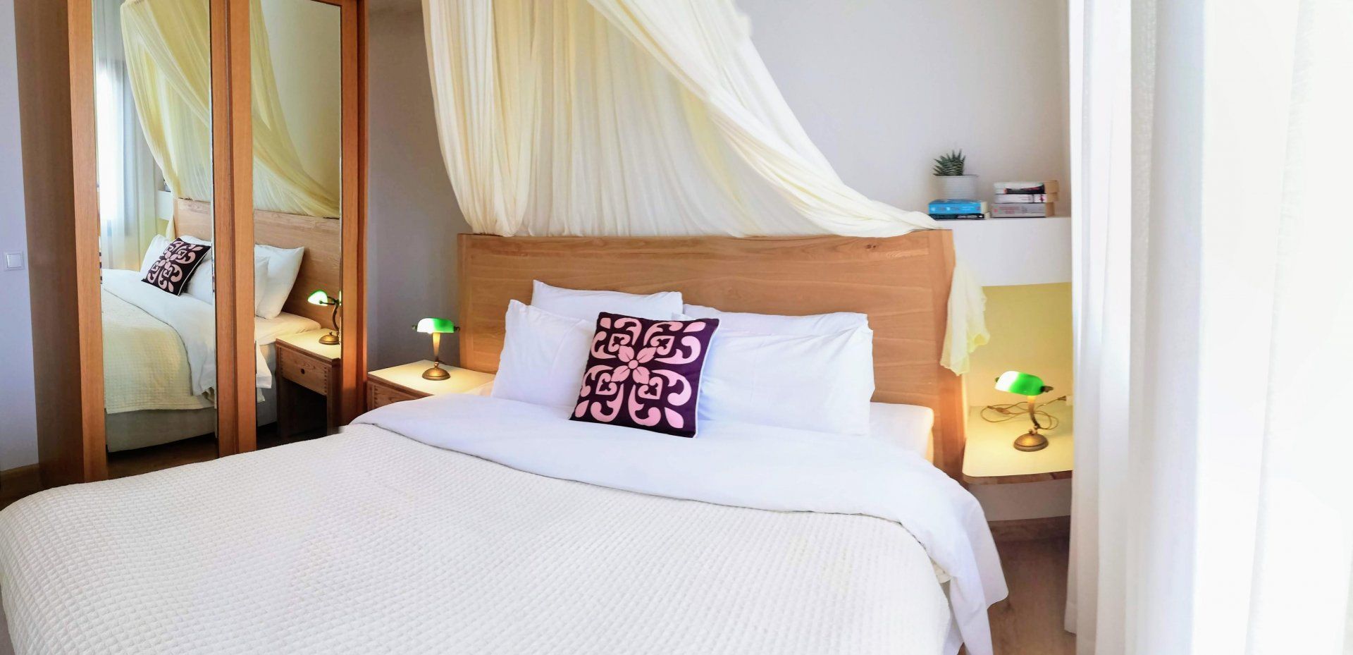 Mornings begin with a leisurely swim in the pool before reclining in the chill-out area with an iced coffee. When the temperature starts to rise, grab your beach essentials and stroll for 600 metres to Paralia Vasilias and watch the day slip away from a lounger. If you’re keen to do a little exploring, jump in the car and take the ten-minute drive into the heart of Skiathos town for a wander through the atmospheric streets and a bite to eat by the windless bay.
