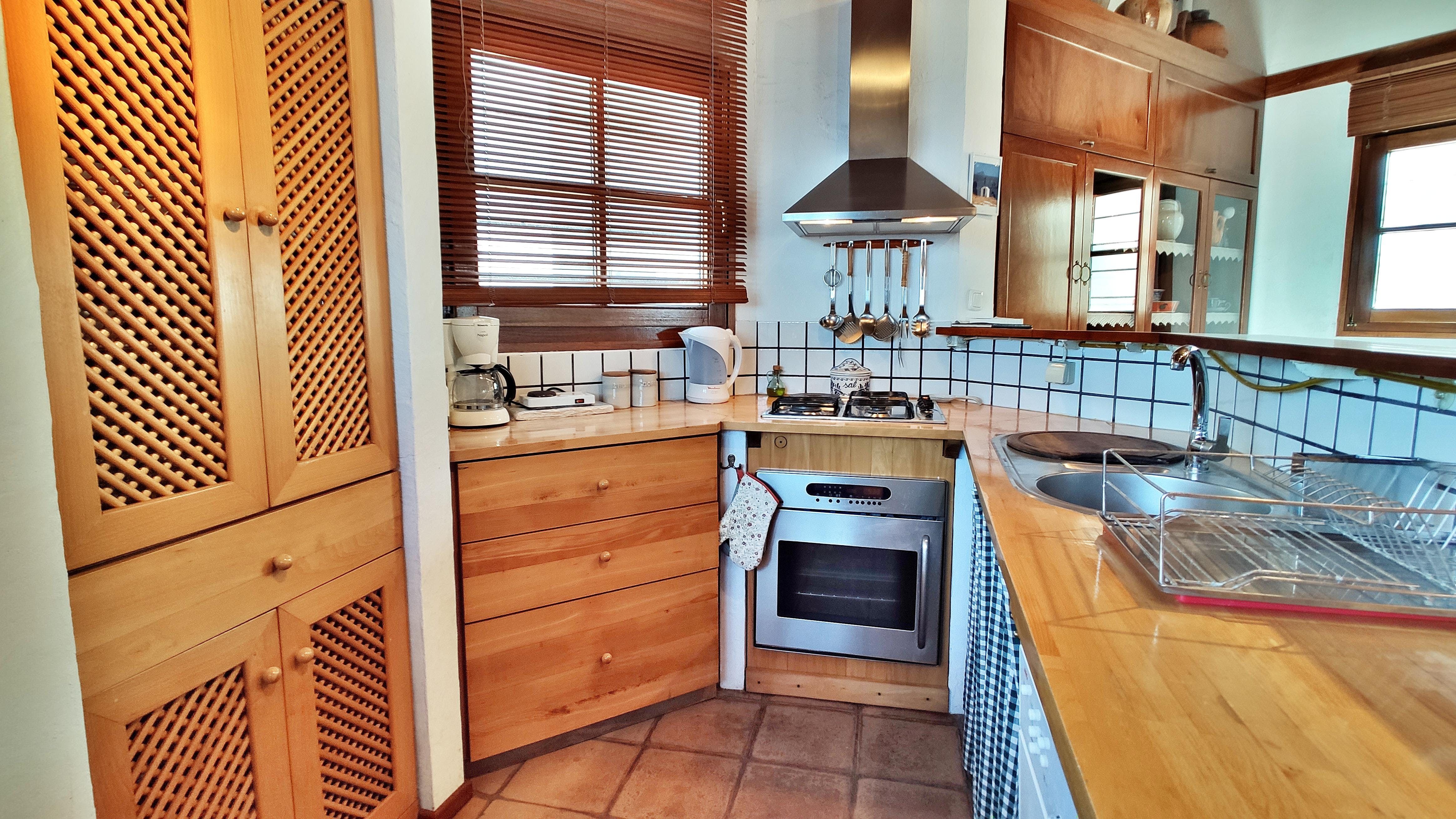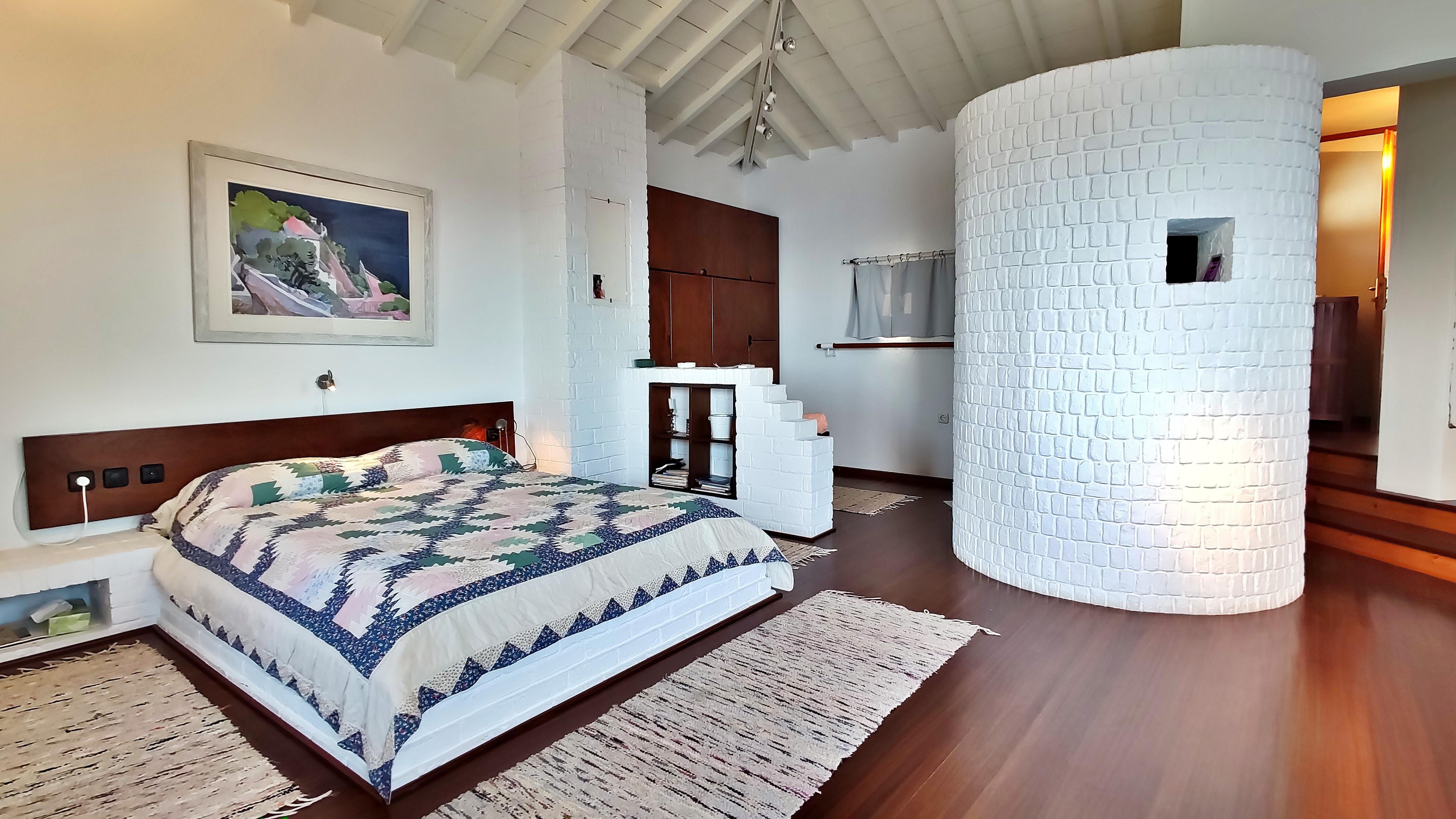 After a day of sunbathing and splashing in the water, the charming villa is decorated in gorgeous seating areas. Taste the delicious bites of souvlaki, bread and hummus whilst you soak in the breathtaking views. Once sun sets on the sea, grab a bottle of wine to share as the sky turns from deep blue into a warm, dusty red.