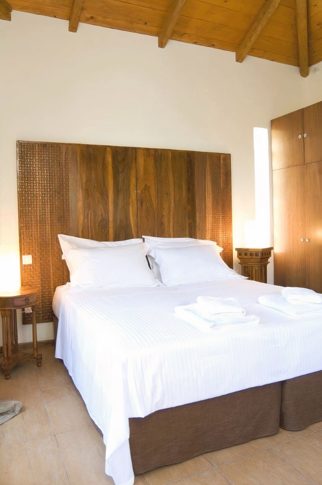 One of a collection of four villas in the middle of the island of Alonissos, this home's surroundings couldn't be more Mediterranean if they tried – olive trees, herb bushes and rocky terrain fill the garden, while the dazzling blue Aegean Sea stretches out to the distant horizon.