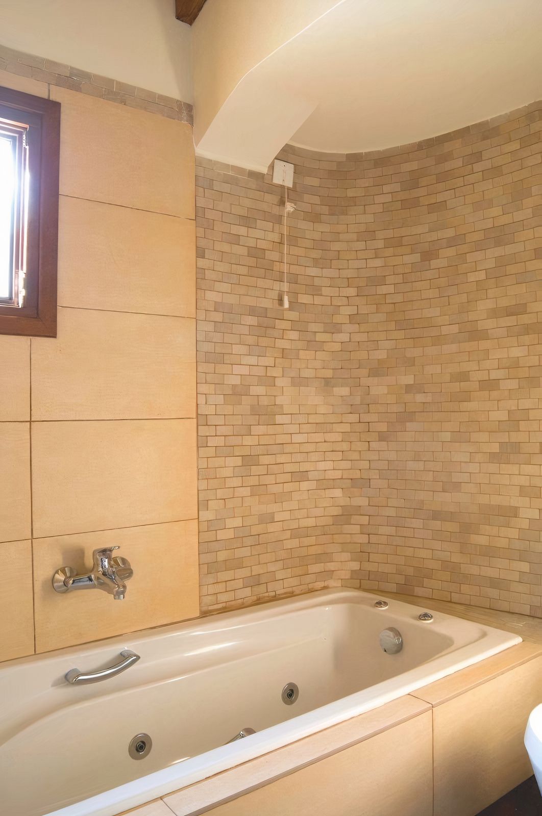 That's quite enough about views, though. Behind the villa's yellow walls, you'll find an interior that combines rustic features and earthy colours with enough contemporary flourishes, like the flowery armchair and abstract artworks, to stop it from feeling dated. One of our favourite features is the pair of Jacuzzi tubs in the bathrooms that makes it easier than ever to completely switch off and relax.