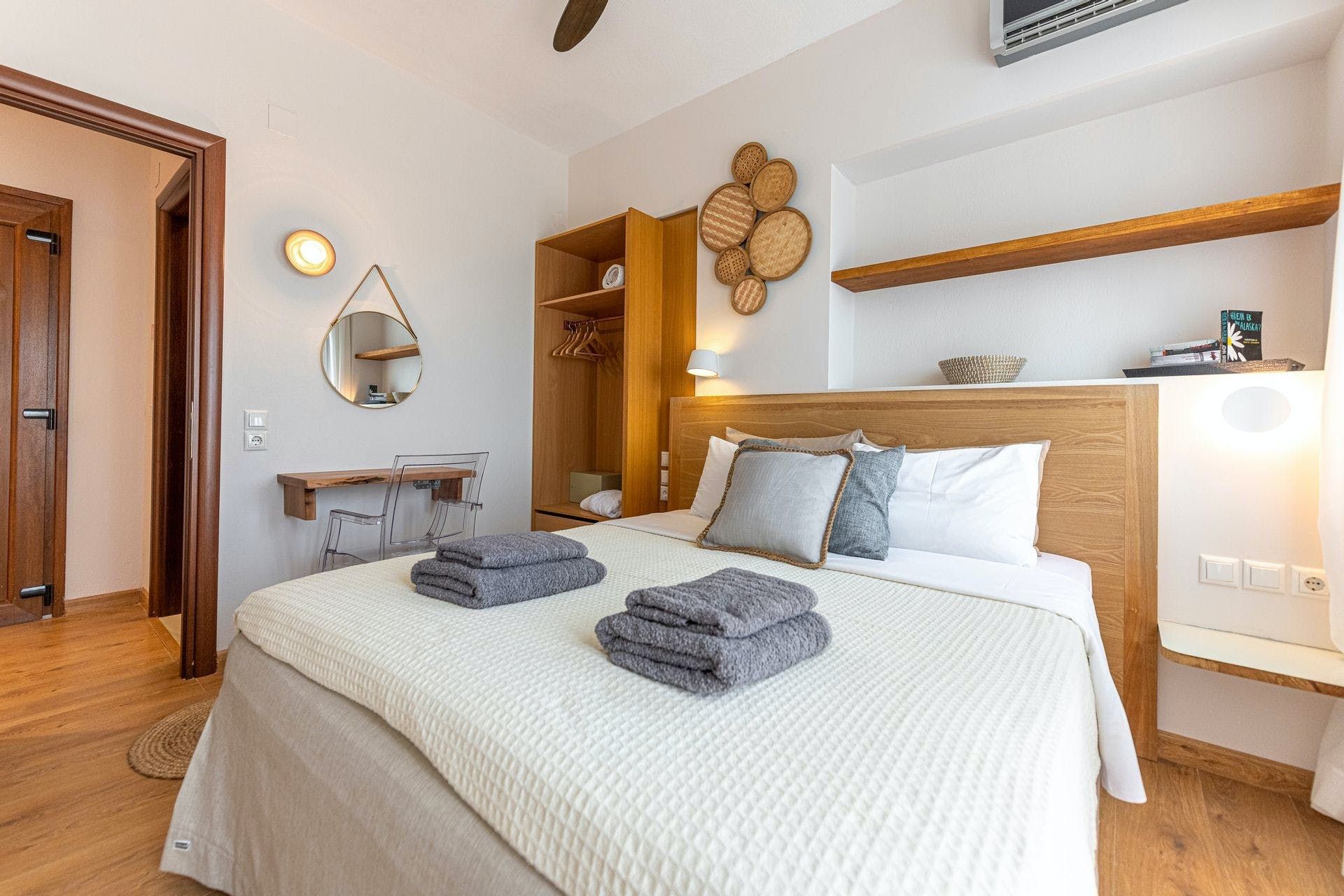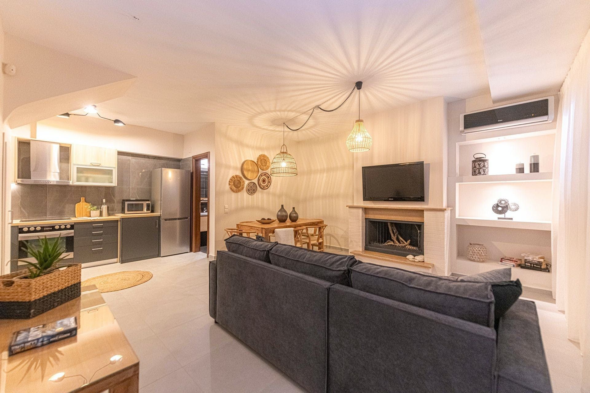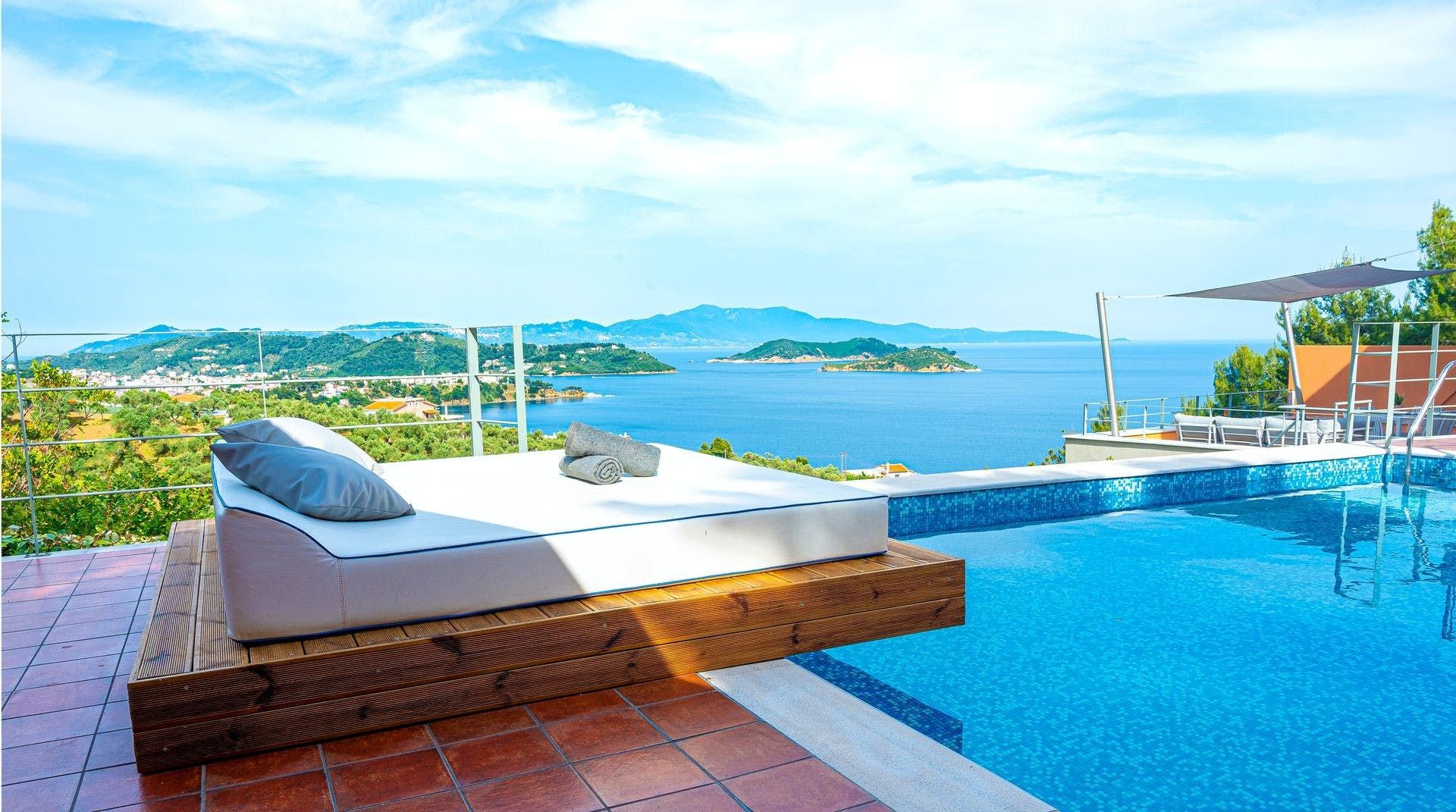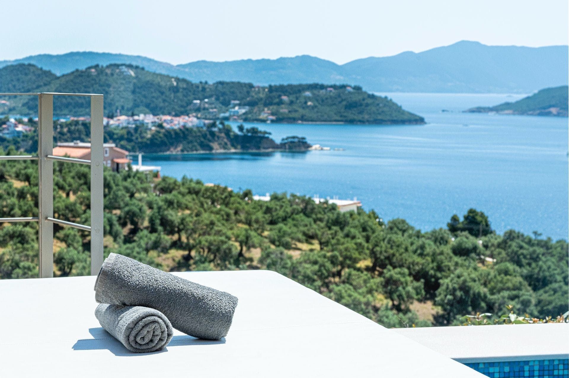 Escape to the luxurious Villa Io in Skiathos, where you can indulge in the comfort of two double bedrooms, two bathrooms, and a spacious ground floor living area that includes a fully equipped kitchen, dining and lounge area. The villa can accommodate up to seven guests with the provision of one double and one single sofa bed. Step out onto the sea-facing balcony to enjoy breathtaking views while reading or relaxing. The ground floor opens to a veranda with exceptional sea views, complete with outdoor furniture. As a guest of Villa Io, you'll have exclusive access to a private swimming pool (7x5x1.5m) nestled in a 100sqm private area that also offers stunning sea views. A built-in BBQ is also at your disposal, making it perfect for outdoor cooking.