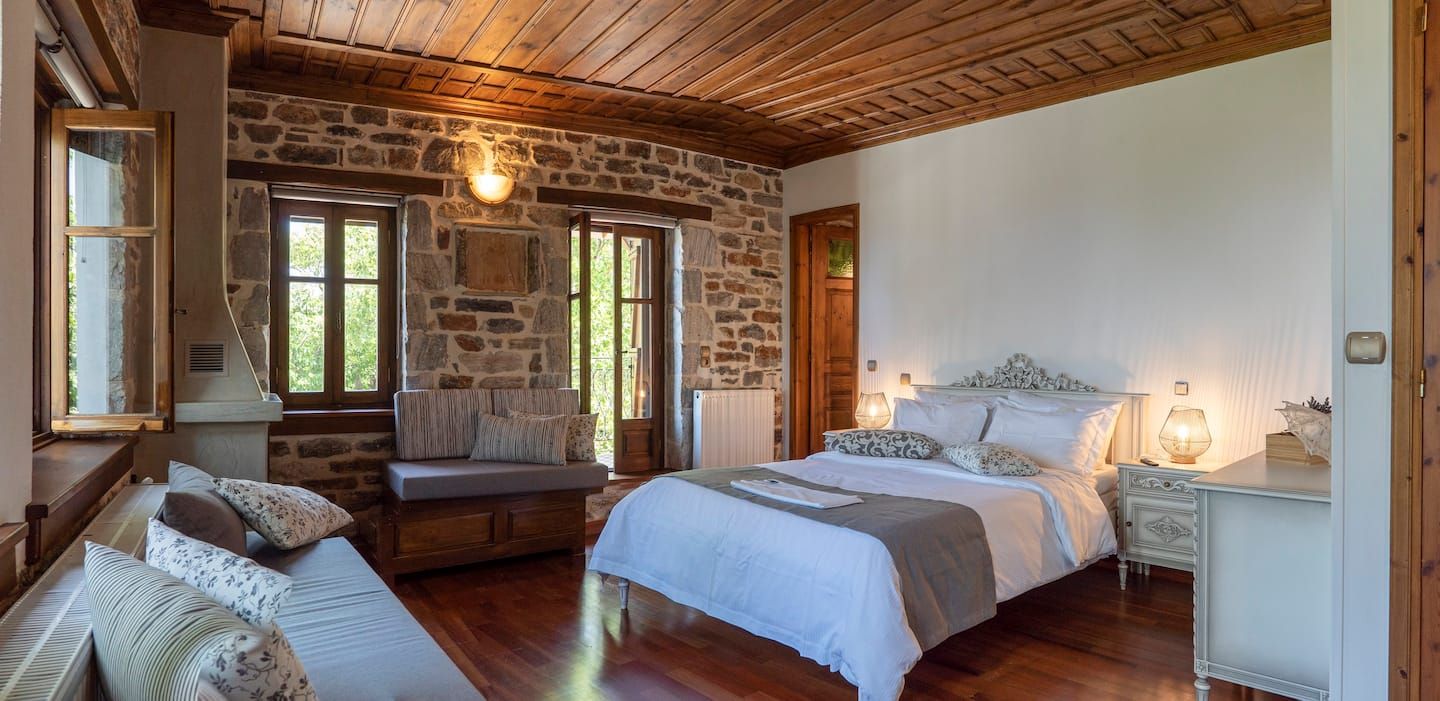 Wake up to the calls of songbirds each morning at this character home in the hills of Tsagkarada – the gem of Pelion. With stunning sea views and luxury interiors, you'll feel as though you're the kings of the castle. Nestled in a natural setting, it's been lovingly modernised with a great deal of attention paid to its eco-credentials. It's far from rustic, despite its stone walls and shutters, with spacious rooms, comfortable bedrooms and stylish bathrooms. Cosy, organic bedding and locally-produced natural bathroom essentials mean you needn't worry too much about your carbon footprint. Cook your meals in the kitchen, where everything you could need has already been thought of, and choose between eating at the pretty dining table in the open-plan living room, or outside on the terrace. This home's most impressive feature, it's a private and beautifully furnished outside space with incredible sea views to the front – and a tucked-away spot where you'll find the hot tub. By day, explore the local villages and beaches – Fakistra is a ten-minute drive away and not far away you'll find Damouchari, where some of the film Mama Mia was shot.
