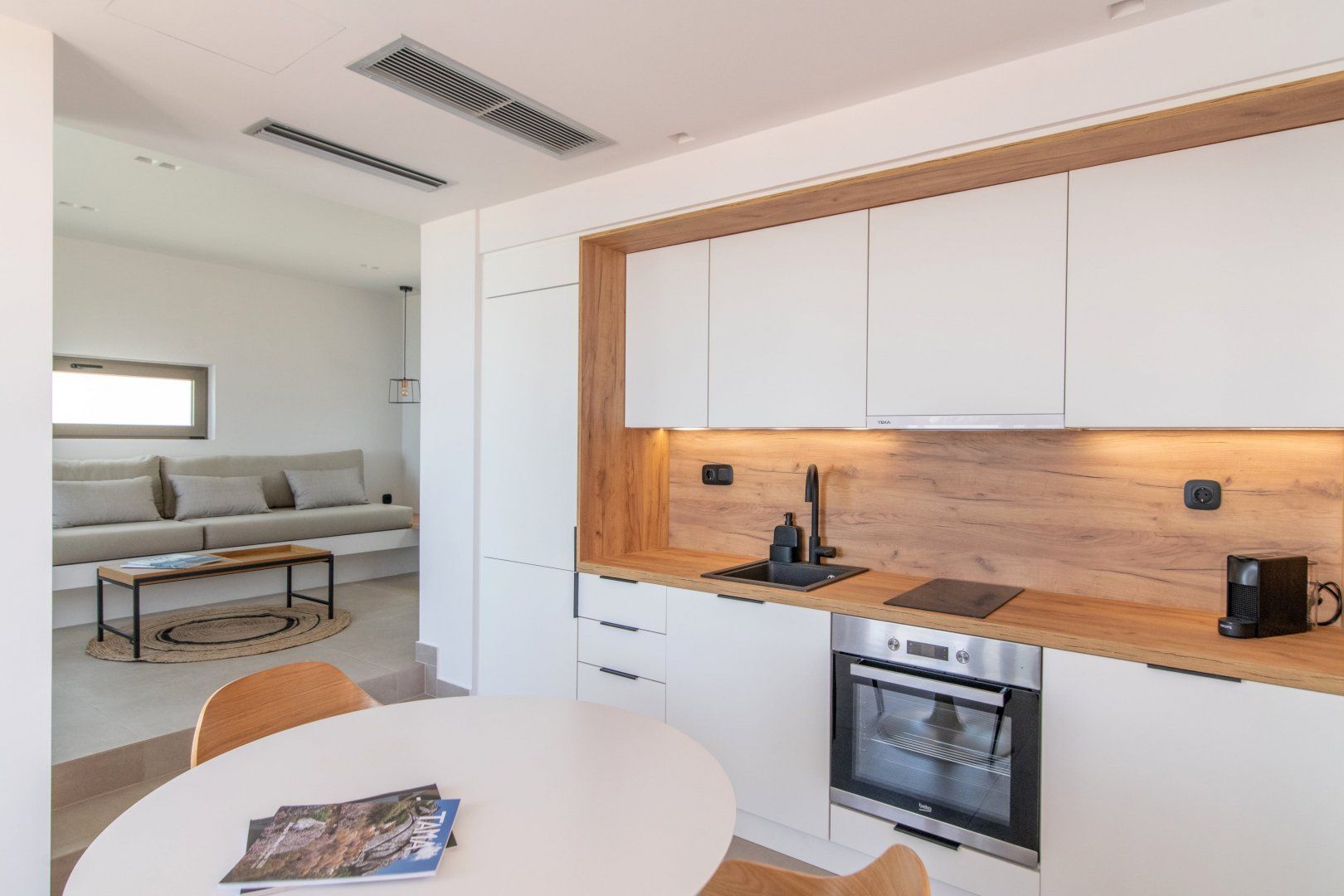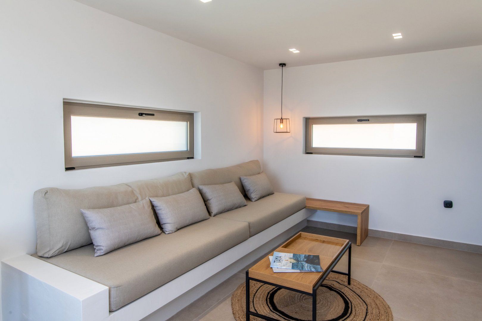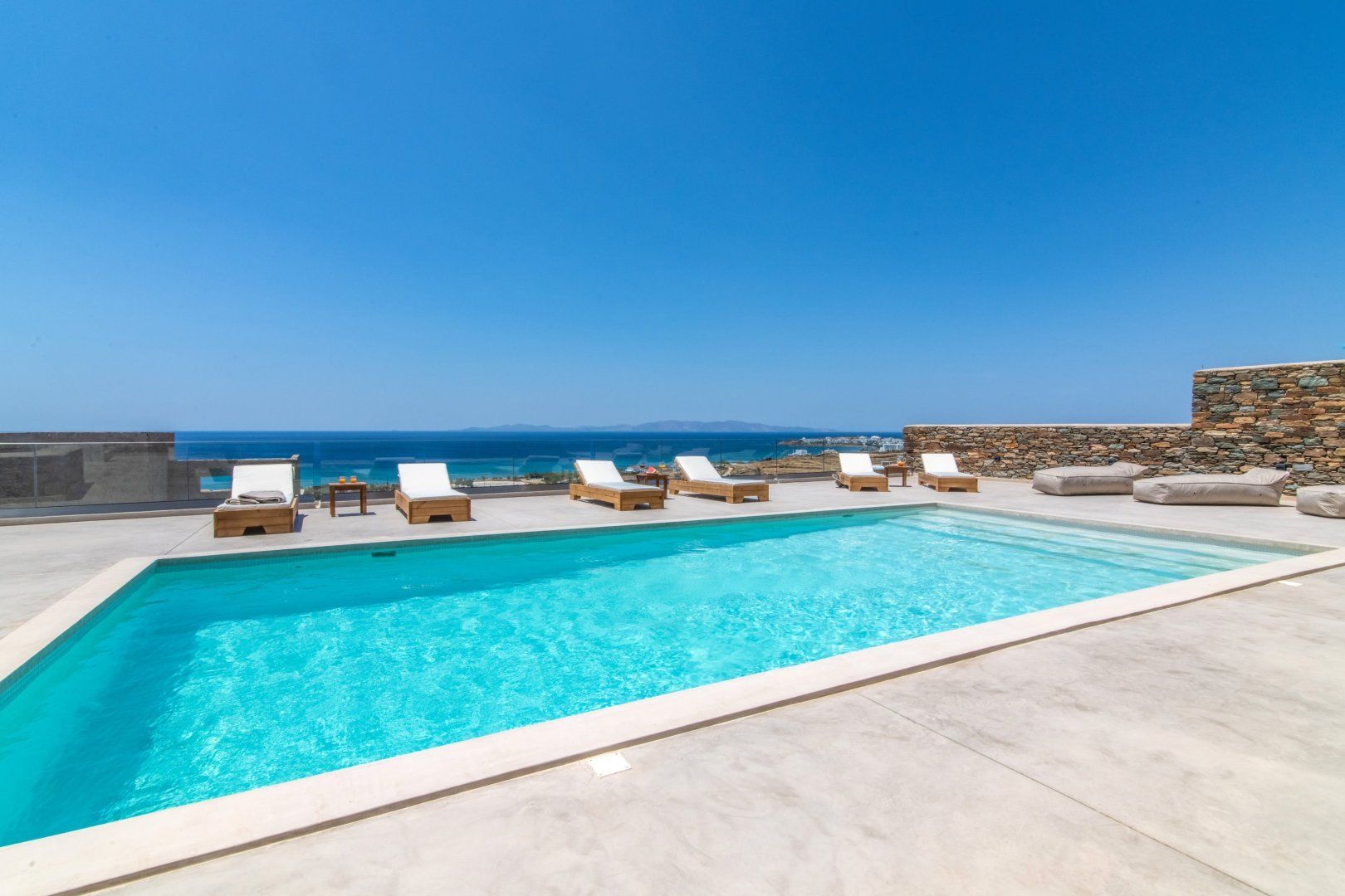 Boasting coastal views, this apartment is great for romantic getaways. Aside from its intimate balcony, we love the unconventional steps out of the window into a private hot tub. The communal pool terrace serves as a potential social spot for solo adventurers, though it's a sunny place for everyone to unwind. Agios Fokas Beach and its cafe-dotted promenade sit within walking distance. But a short drive away is the island's namesake town of Tinos, which holds a working port, hiking trails, and an archeology museum.