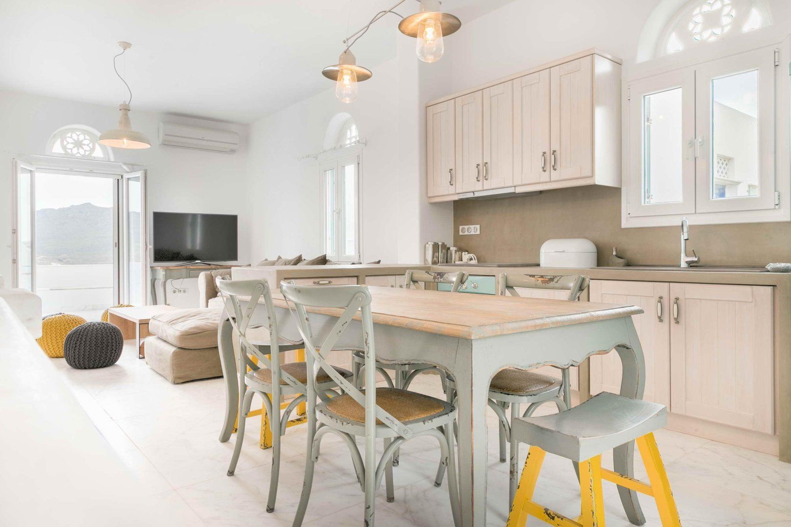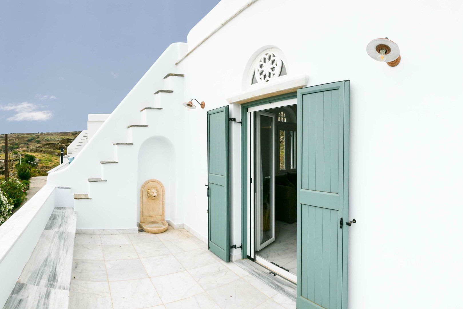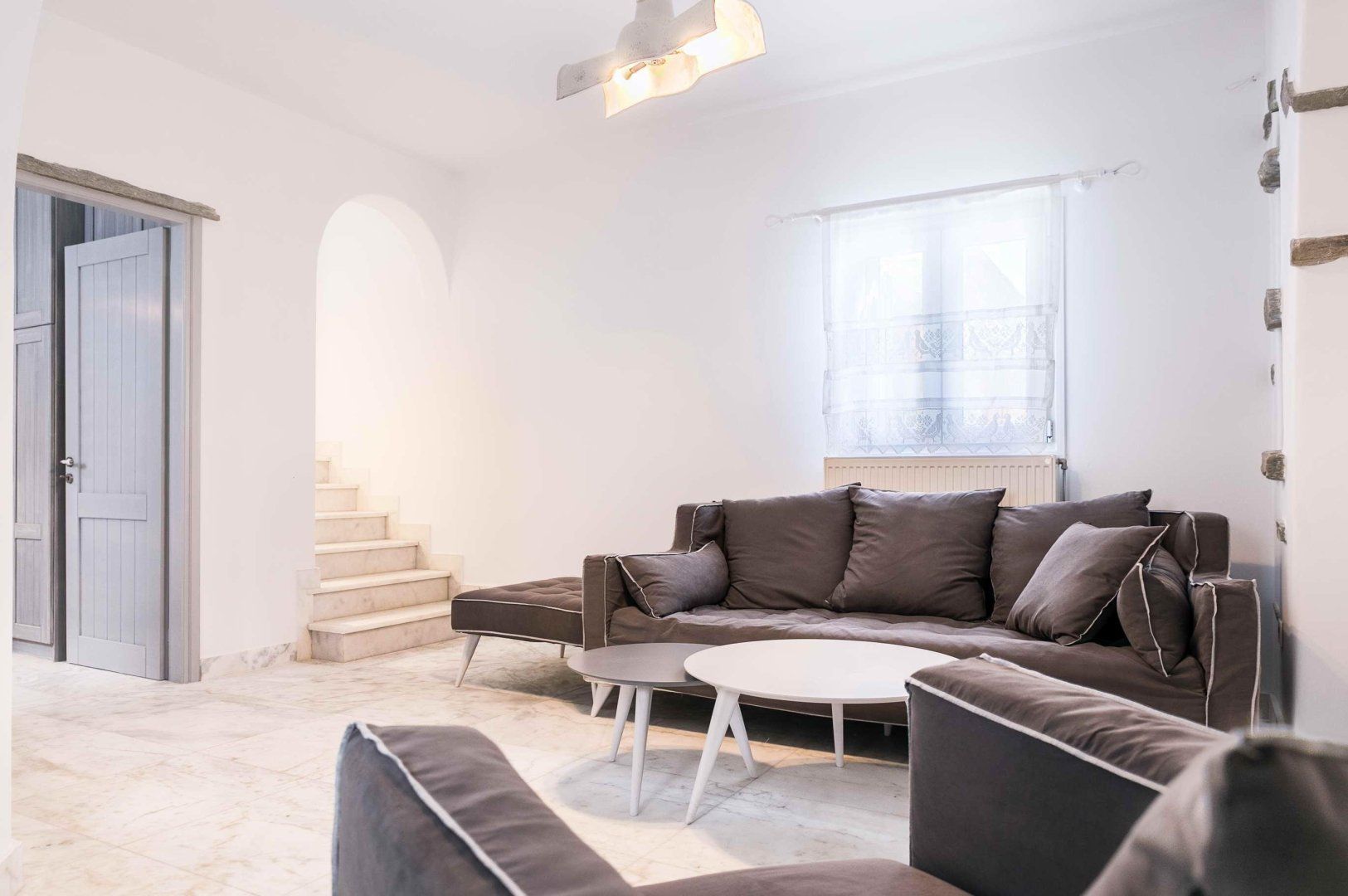 The two main villas both benefit from stark white walls, homely wooden furnishings and stylish lighting, while there's also a balcony from which you can survey Cycladic countryside. By contrast, the guesthouse has a darker, more intimate atmosphere thanks to the exposed brickwork and stone tiles.
