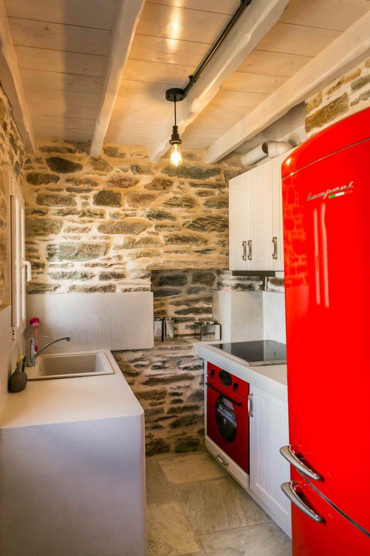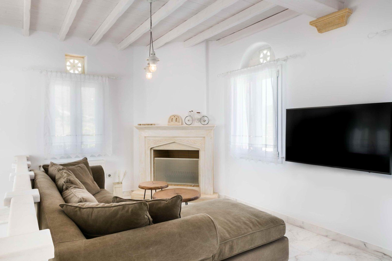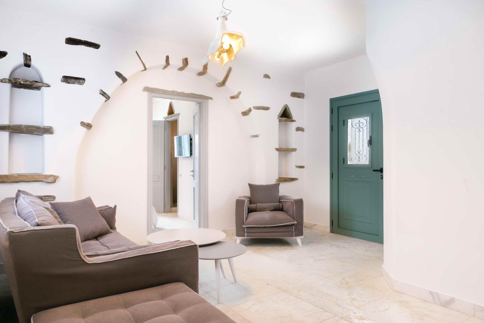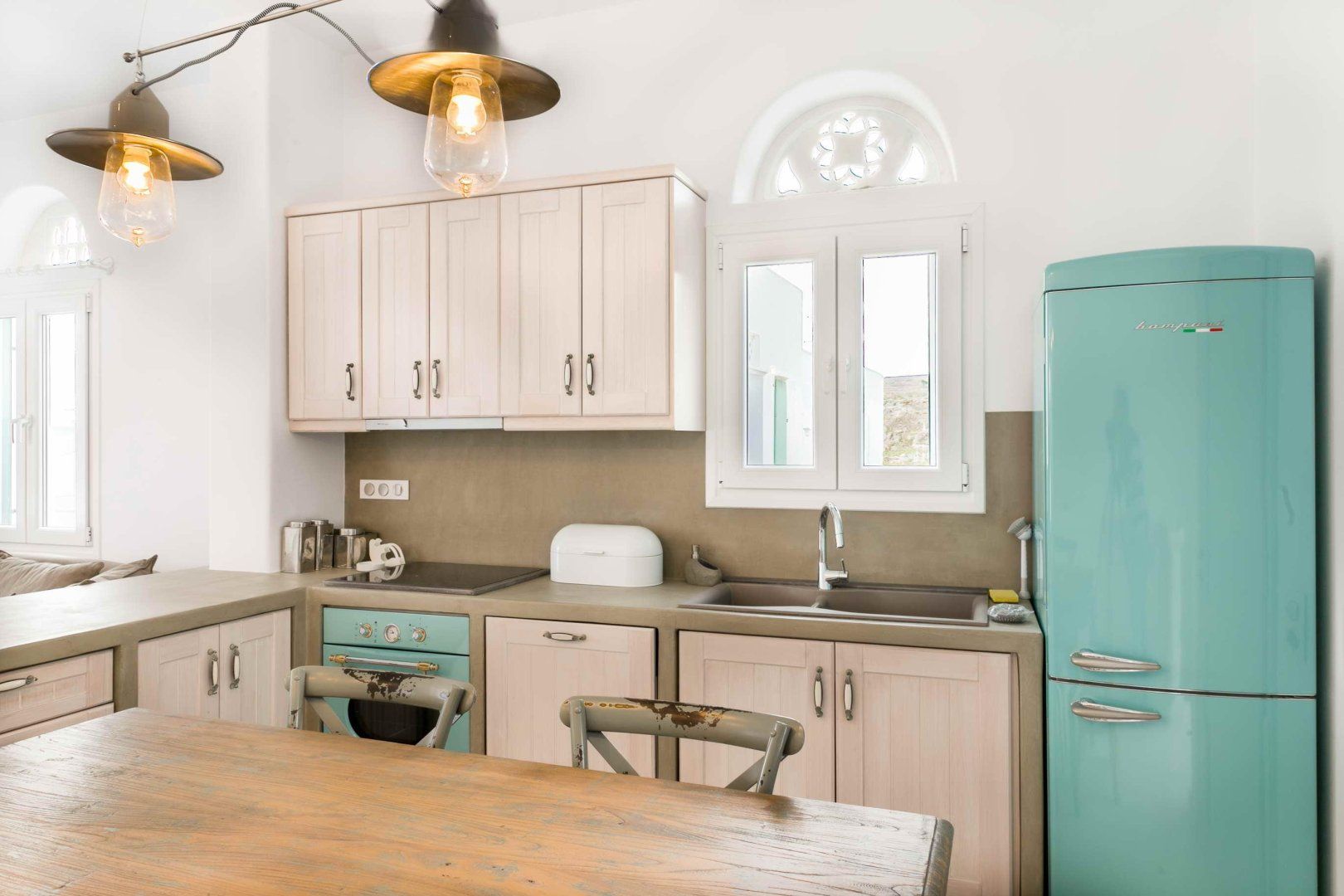 The two main villas both benefit from stark white walls, homely wooden furnishings and stylish lighting, while there's also a balcony from which you can survey Cycladic countryside. By contrast, the guesthouse has a darker, more intimate atmosphere thanks to the exposed brickwork and stone tiles.