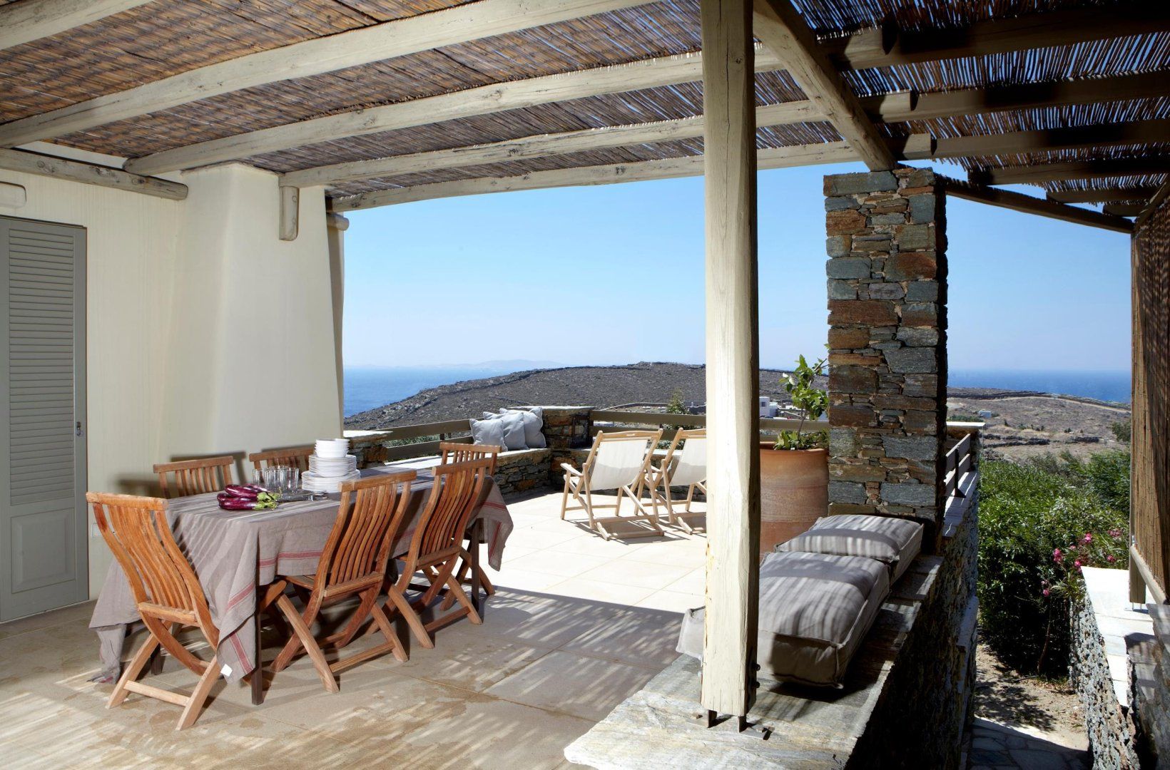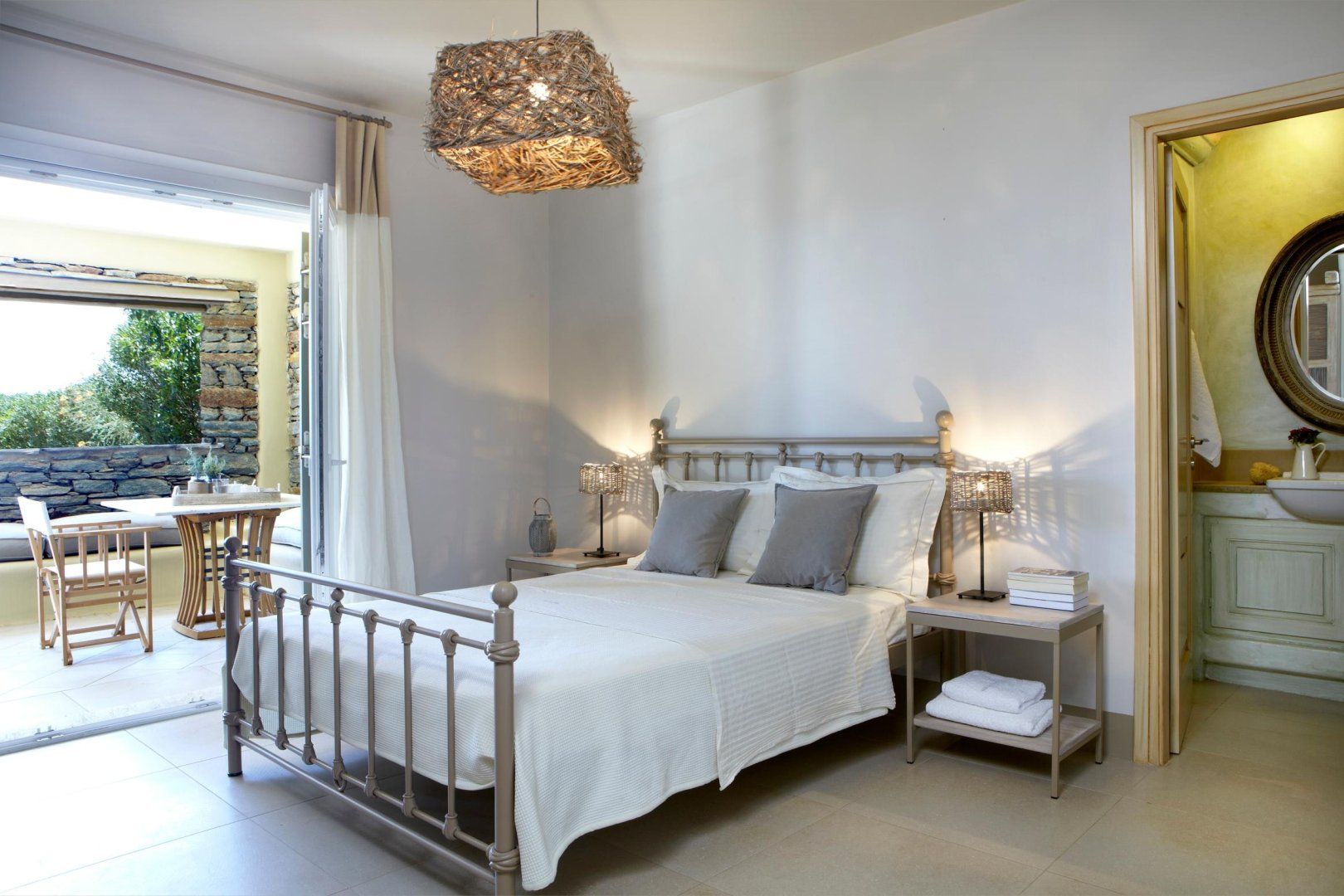 When you fancy exploring, Tinos' array of restaurants, markets and bars is a ten-minute drive away. Ferries depart from the port for the other isles in the Cyclades if you're in the mood for island-hopping, or just sprawl out on the sands at Paralia Agios Fokas – a five-minute drive or fifteen on foot.