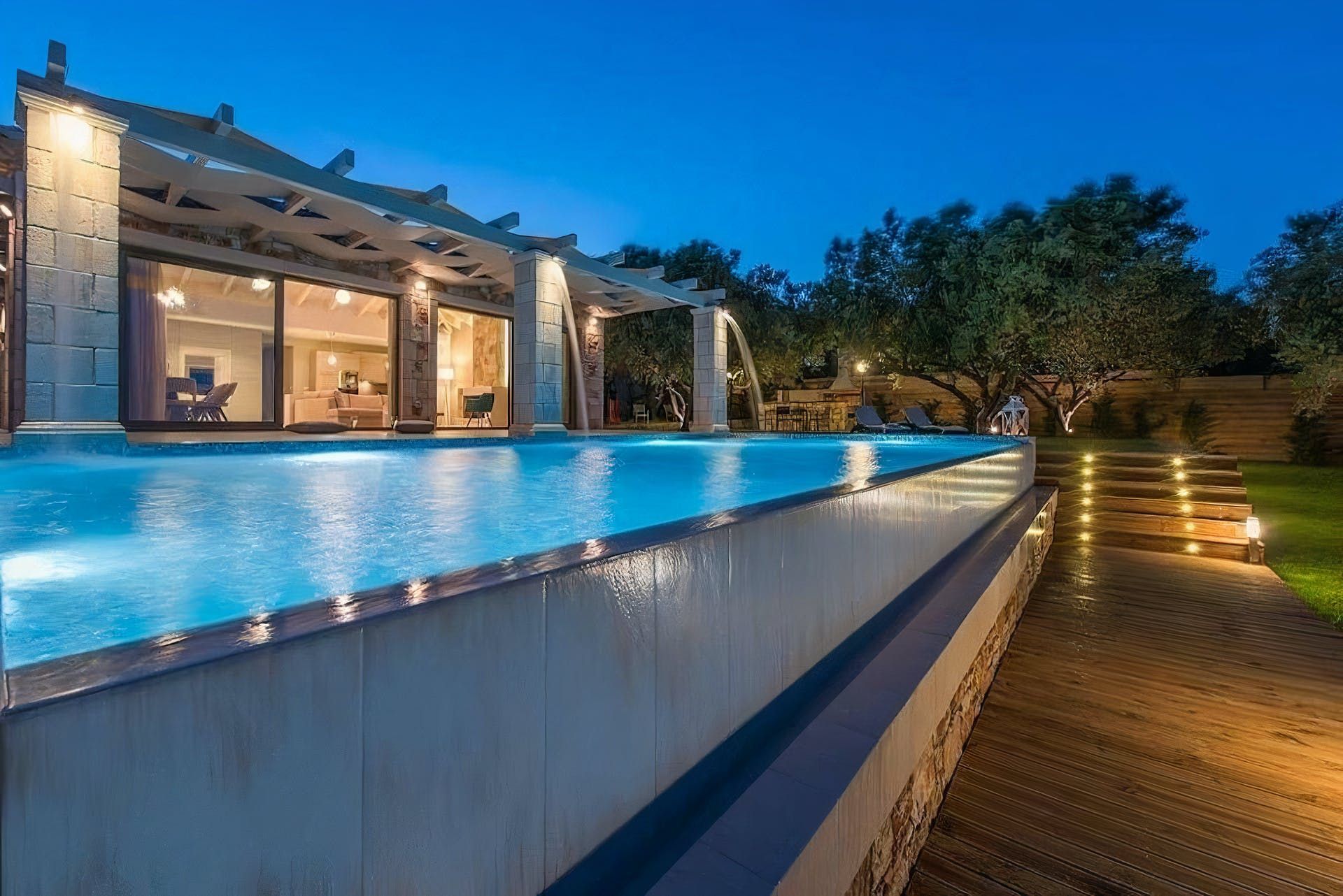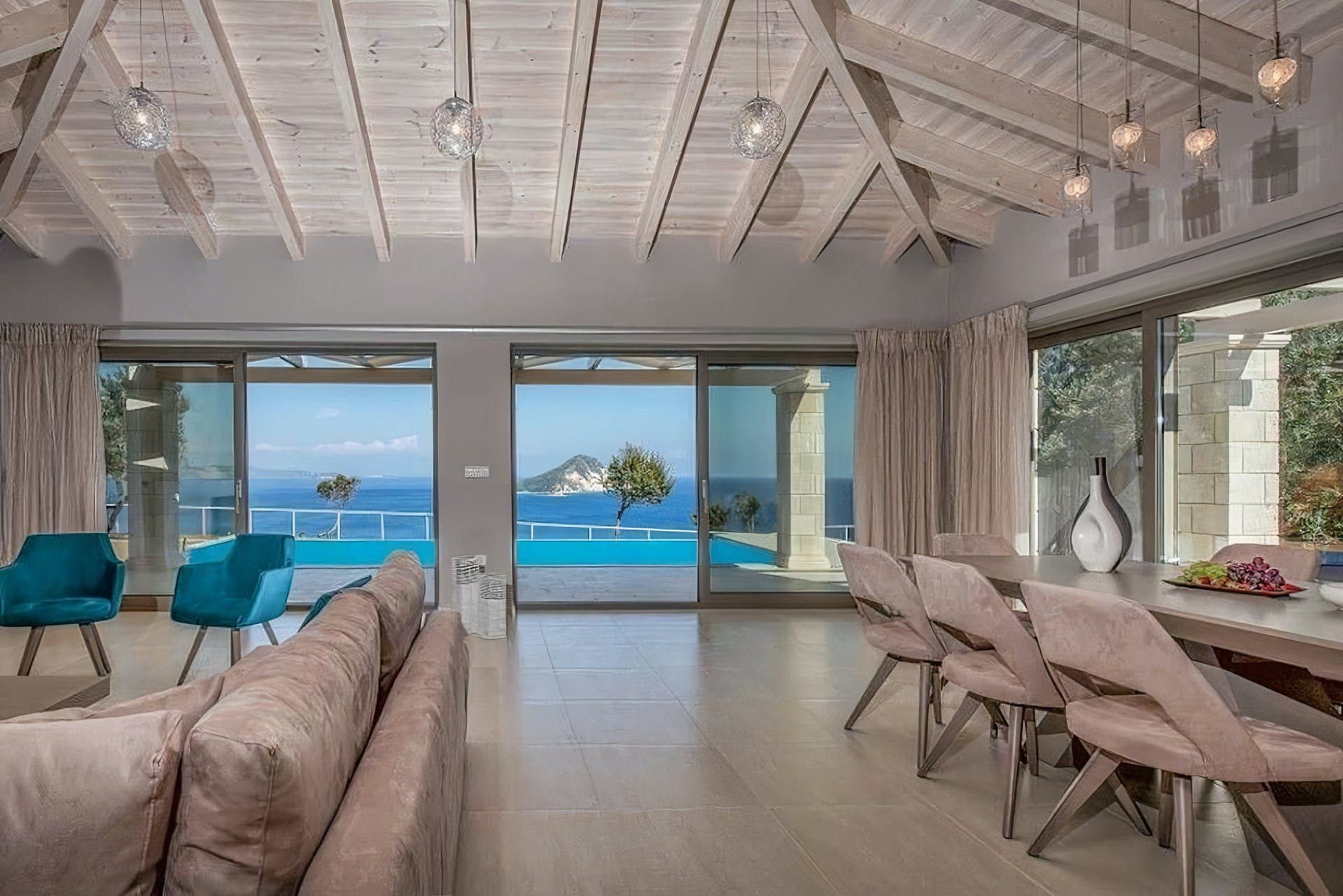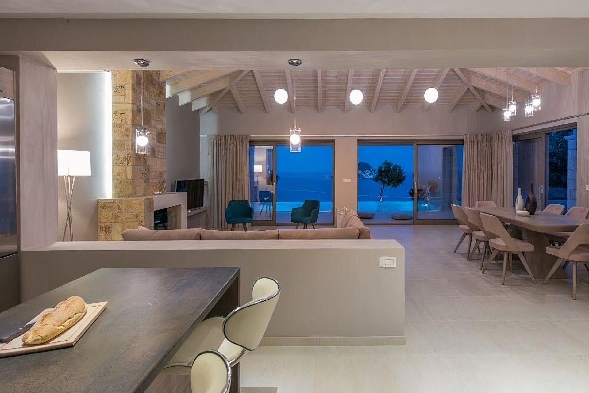 Located at the top of a hill, this newly built stone villa is on well-kept grounds where you can spend relaxing moments all to yourself. Take a walk in the scenic olive groves and swim in the infinity pool whilst looking out to a magnificent view of the Ionian Sea and the isle of Marathonisi. Exclusive style and traditional Zakynthian architecture may make it challenging for you to leave your comfortable and idyllic surroundings to discover all the island of Zakynthos has to offer.