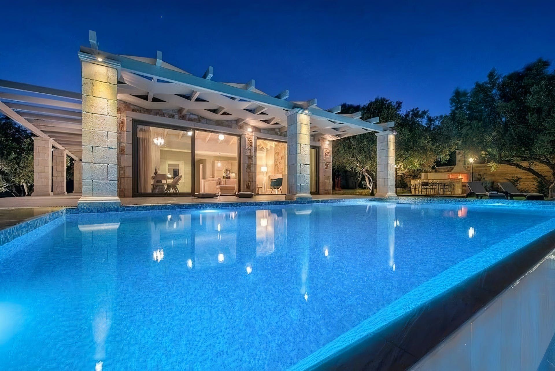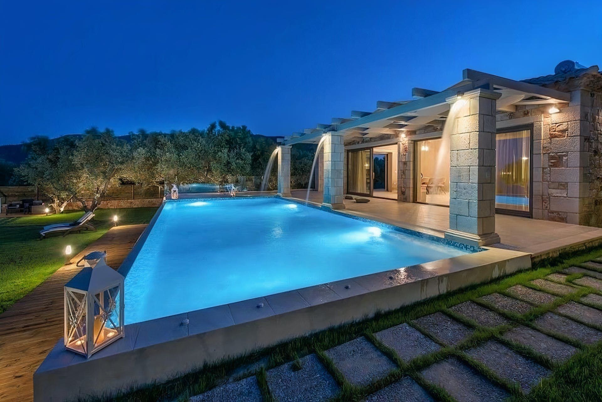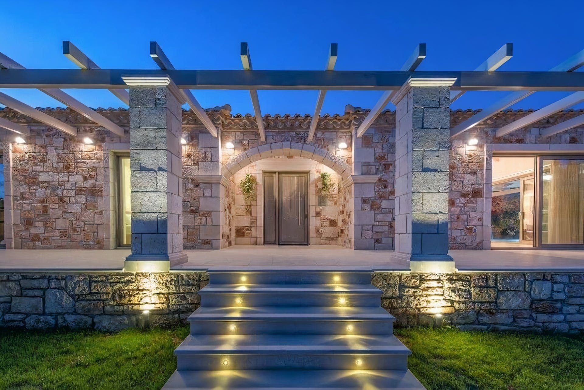 Located at the top of a hill, this newly built stone villa is on well-kept grounds where you can spend relaxing moments all to yourself. Take a walk in the scenic olive groves and swim in the infinity pool whilst looking out to a magnificent view of the Ionian Sea and the isle of Marathonisi. Exclusive style and traditional Zakynthian architecture may make it challenging for you to leave your comfortable and idyllic surroundings to discover all the island of Zakynthos has to offer.